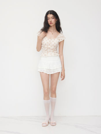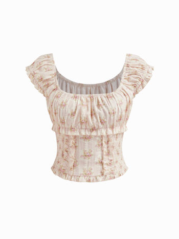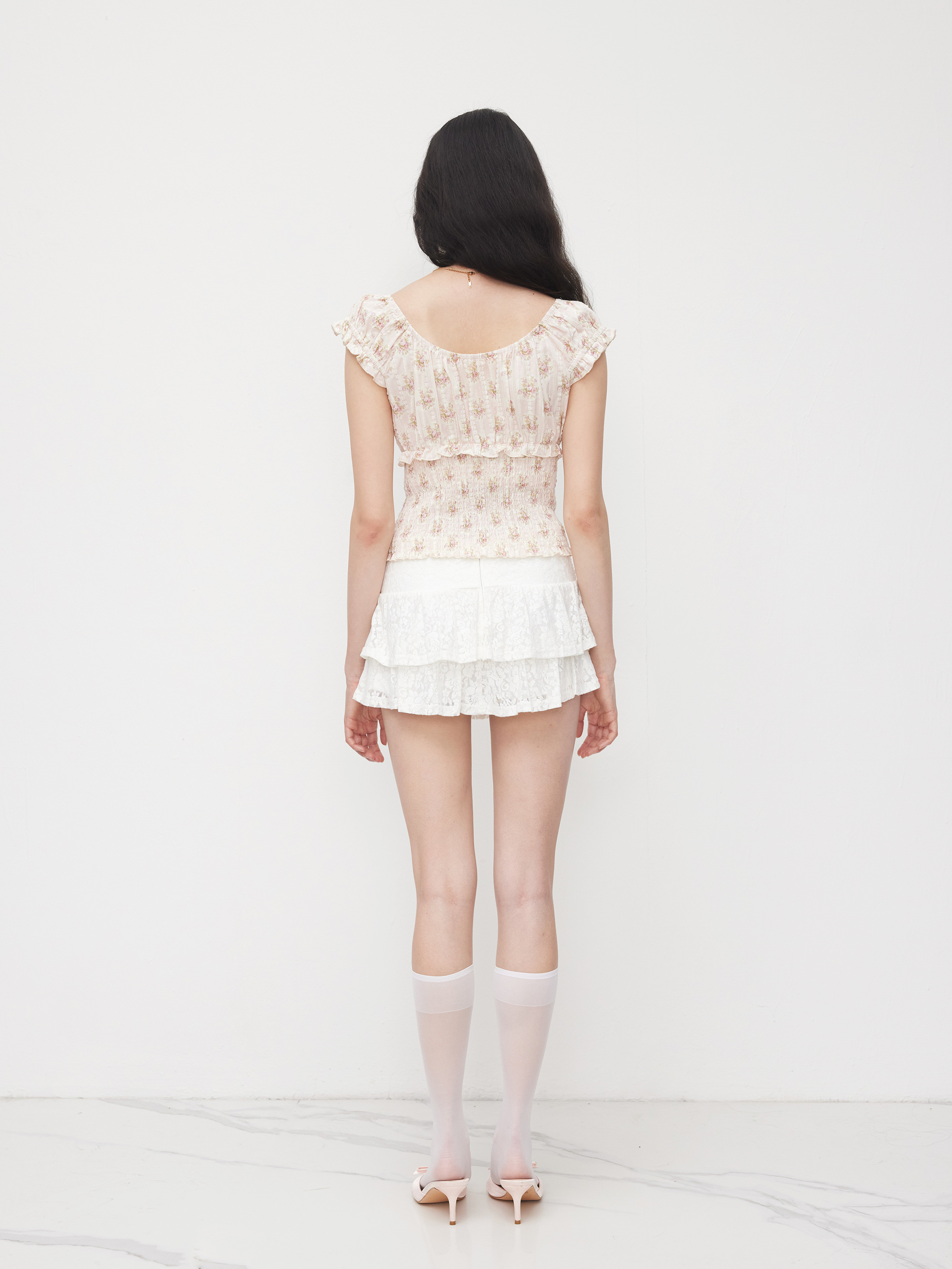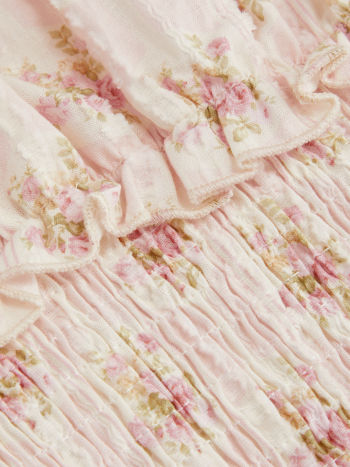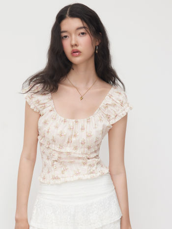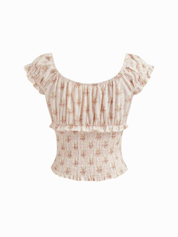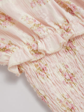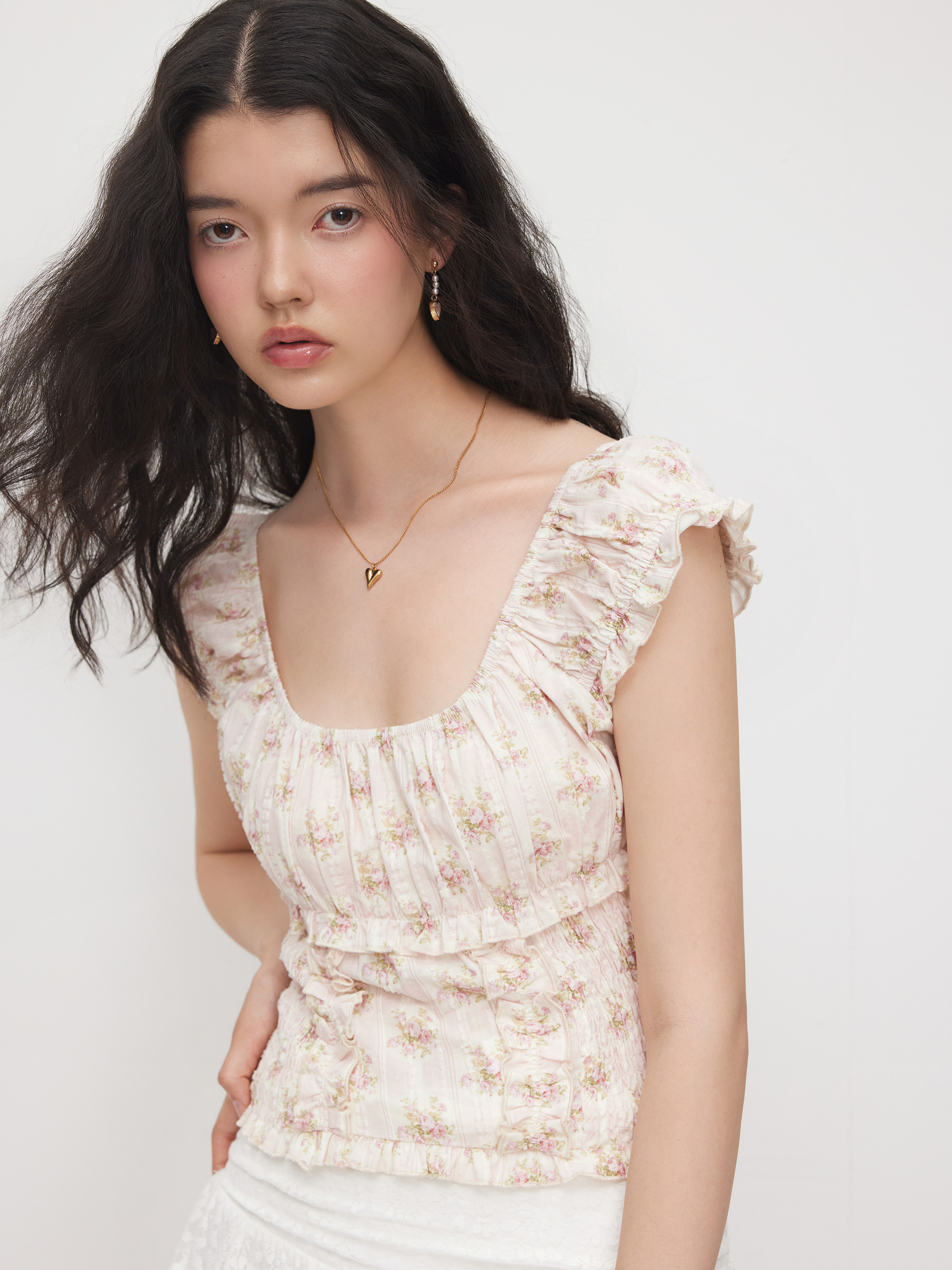 100% Cotton Floral Lettuce Trim Shirred Tank Top