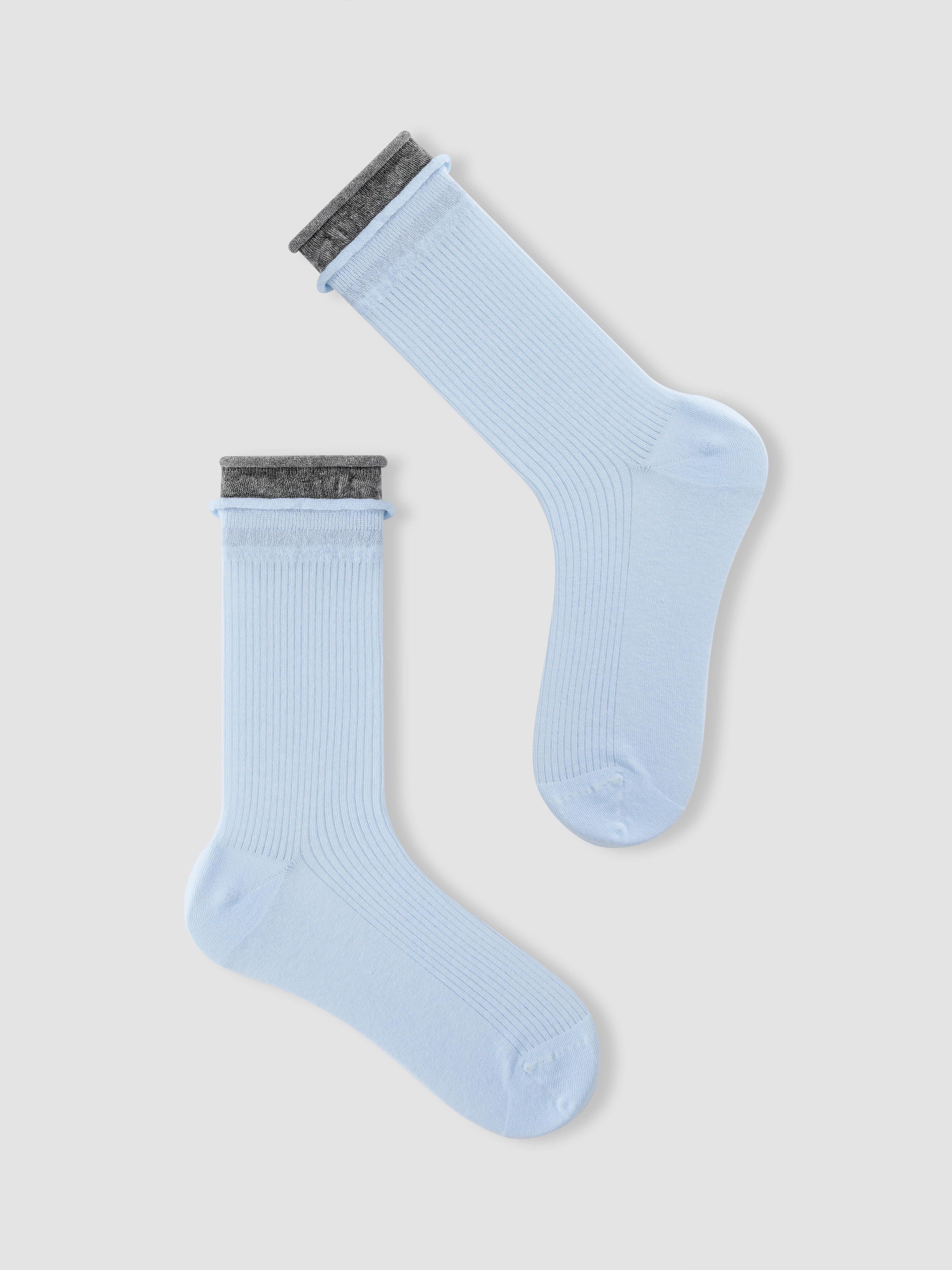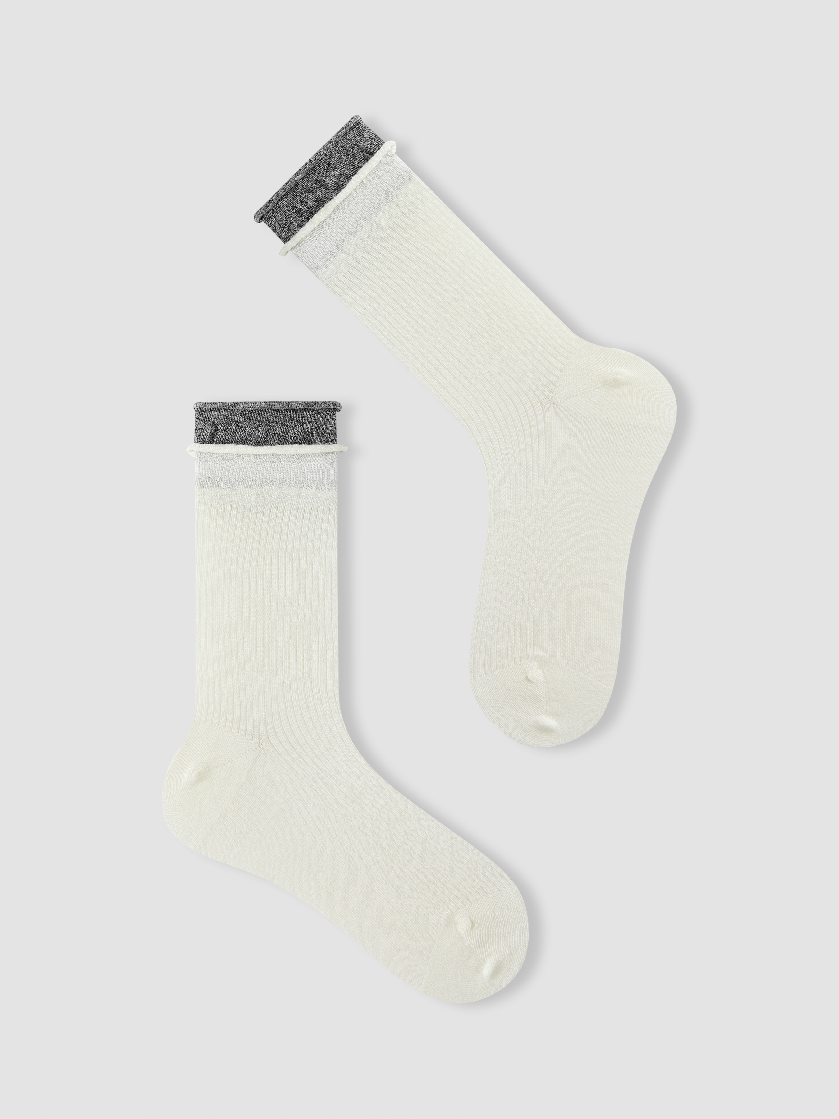3 PAIRS TWO-TONE CRIMPED LOOSE SOCKS
