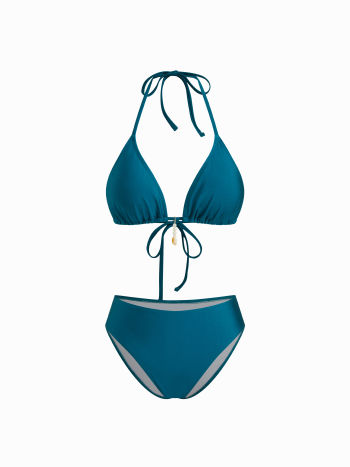 Adjustable Straps Pearl Halter Cheeky Bikini Set