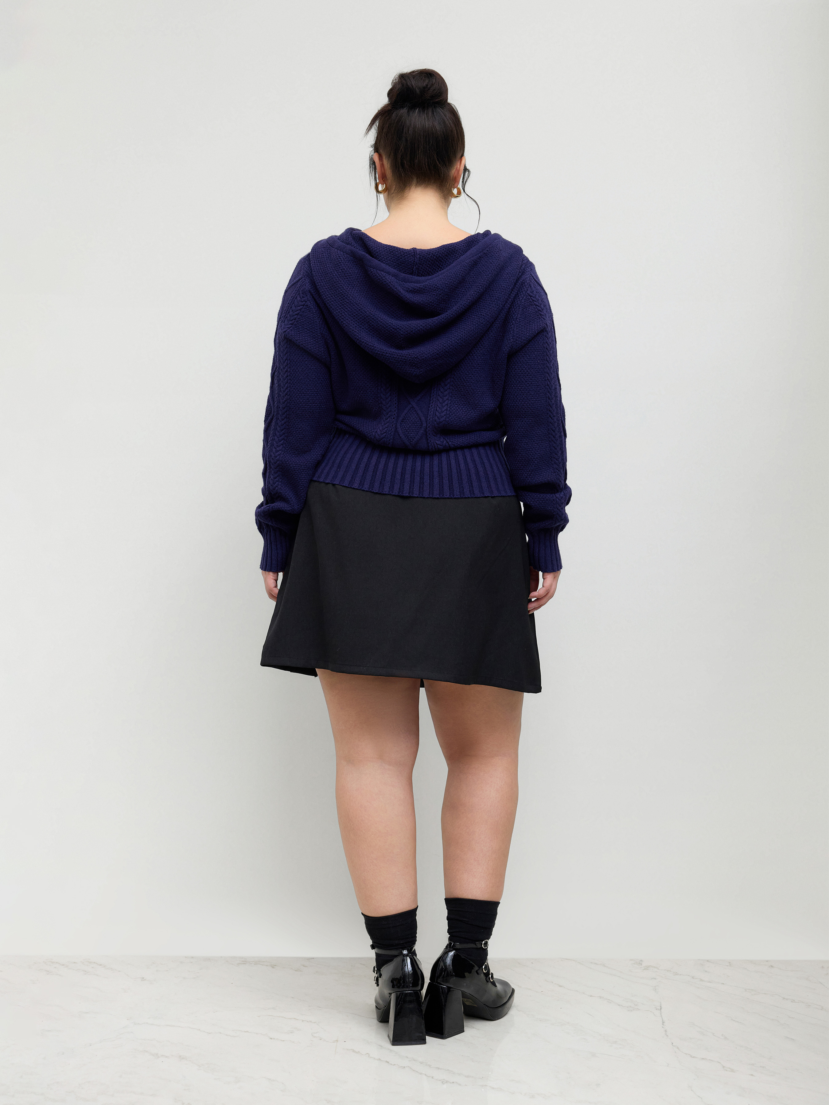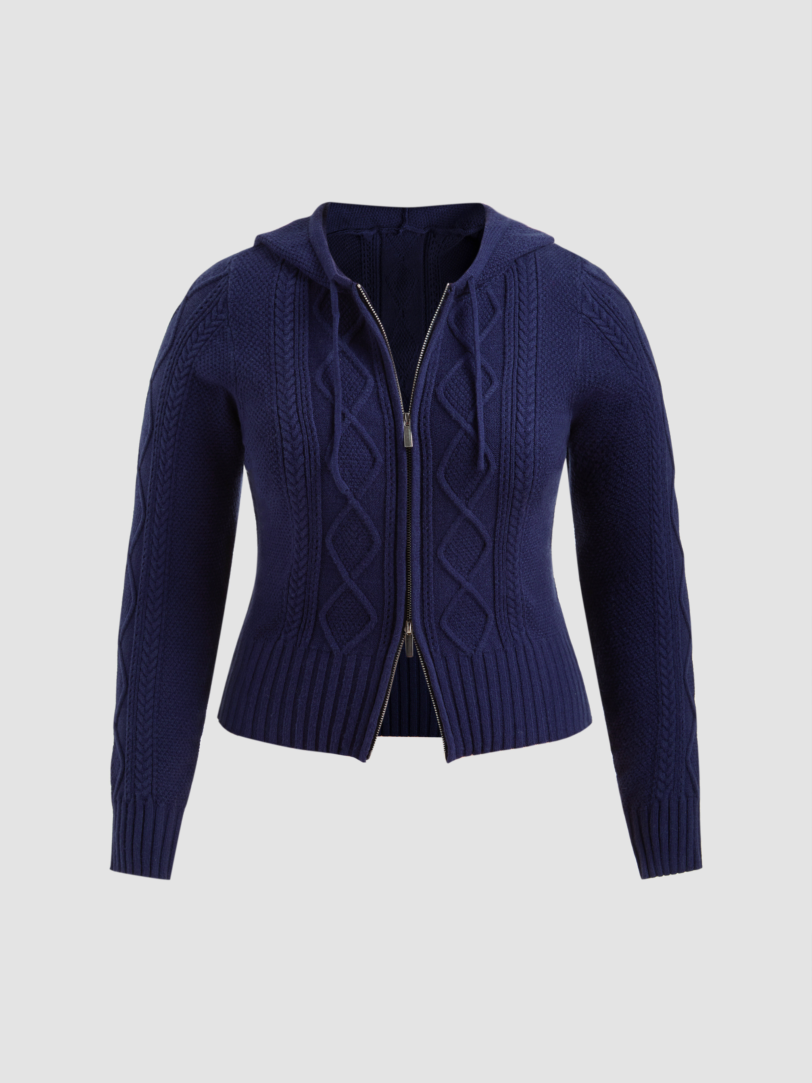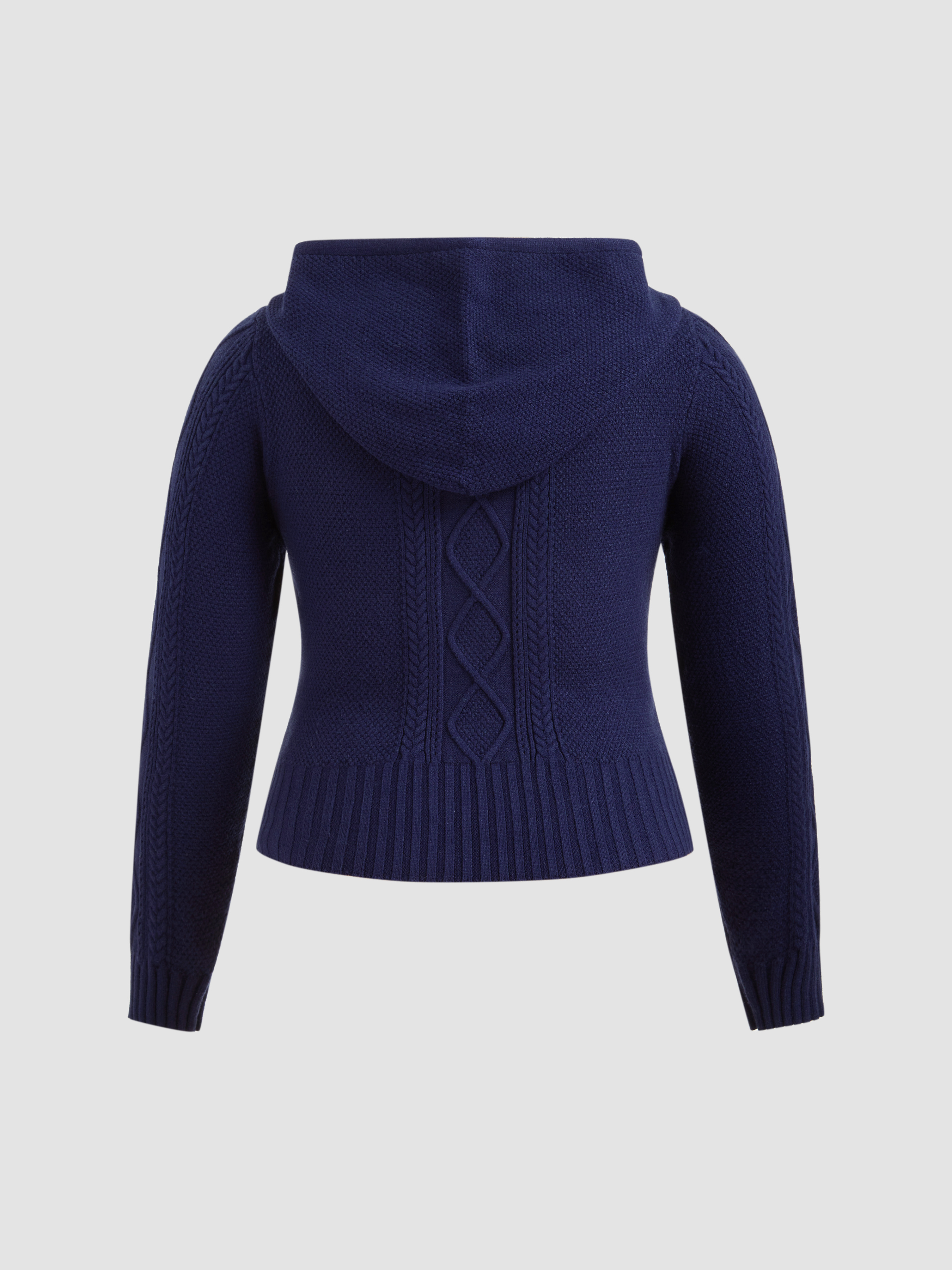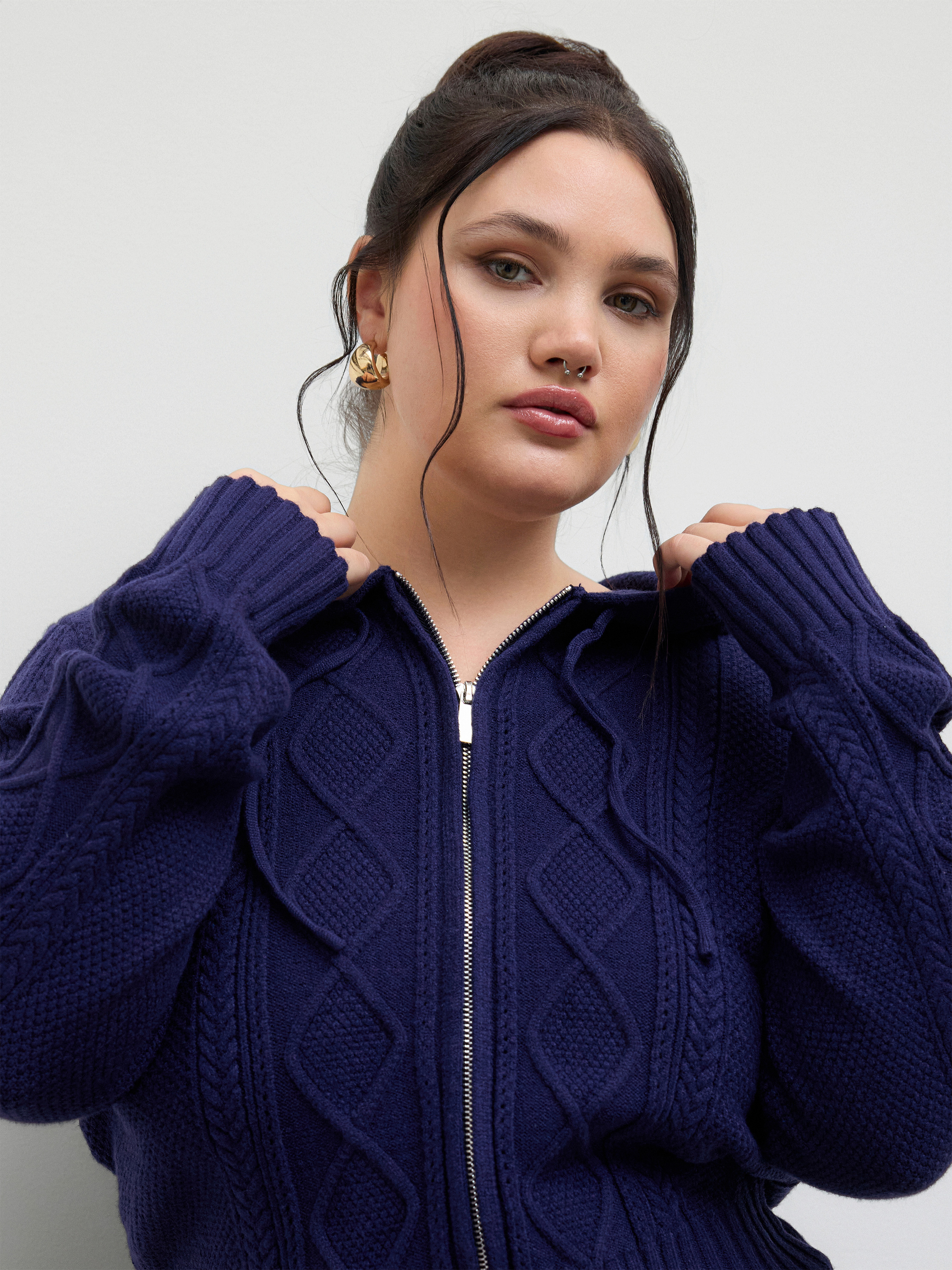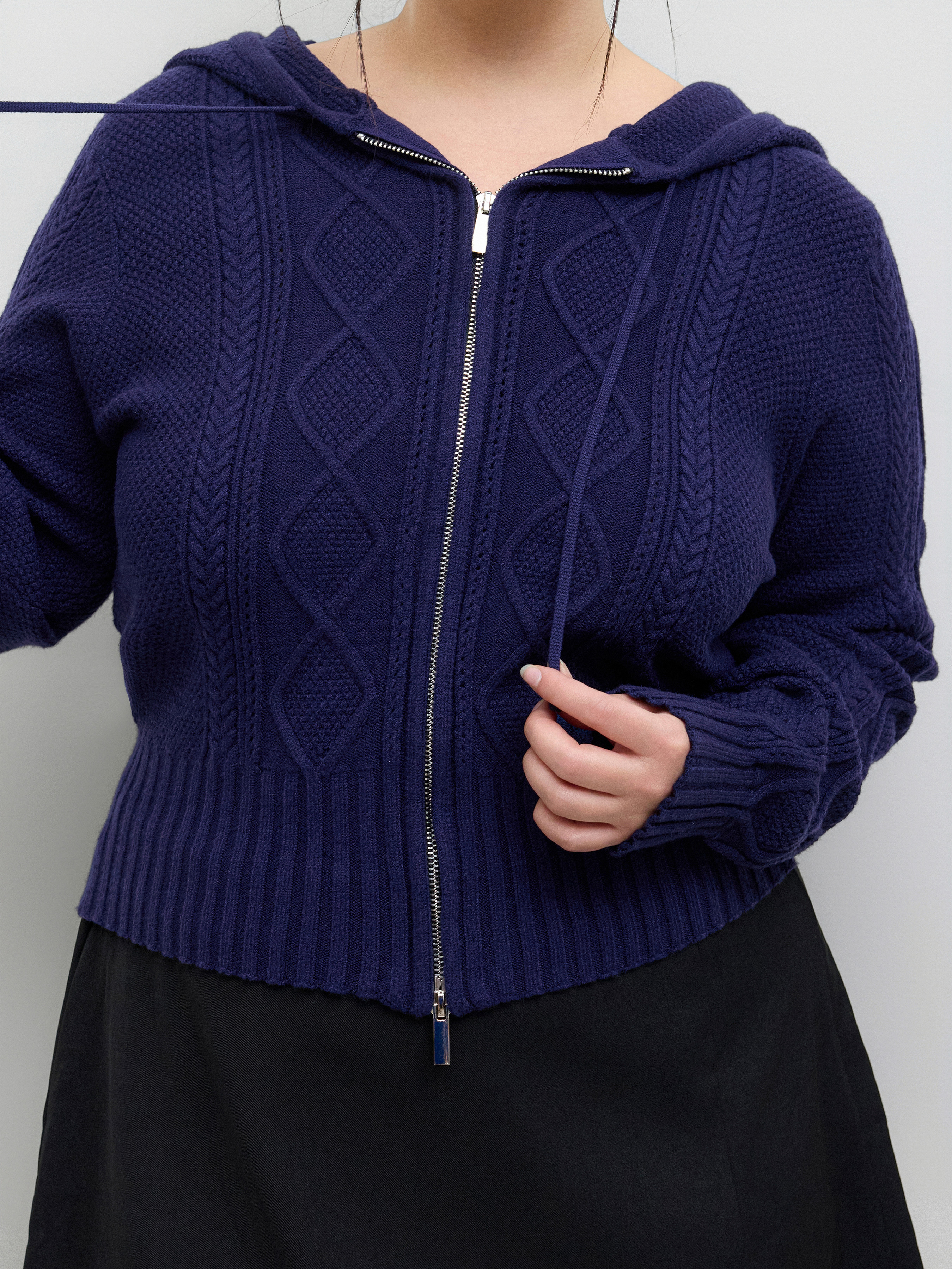 Cable Knit Zip Through Hoodie Cardigan Curve & Plus