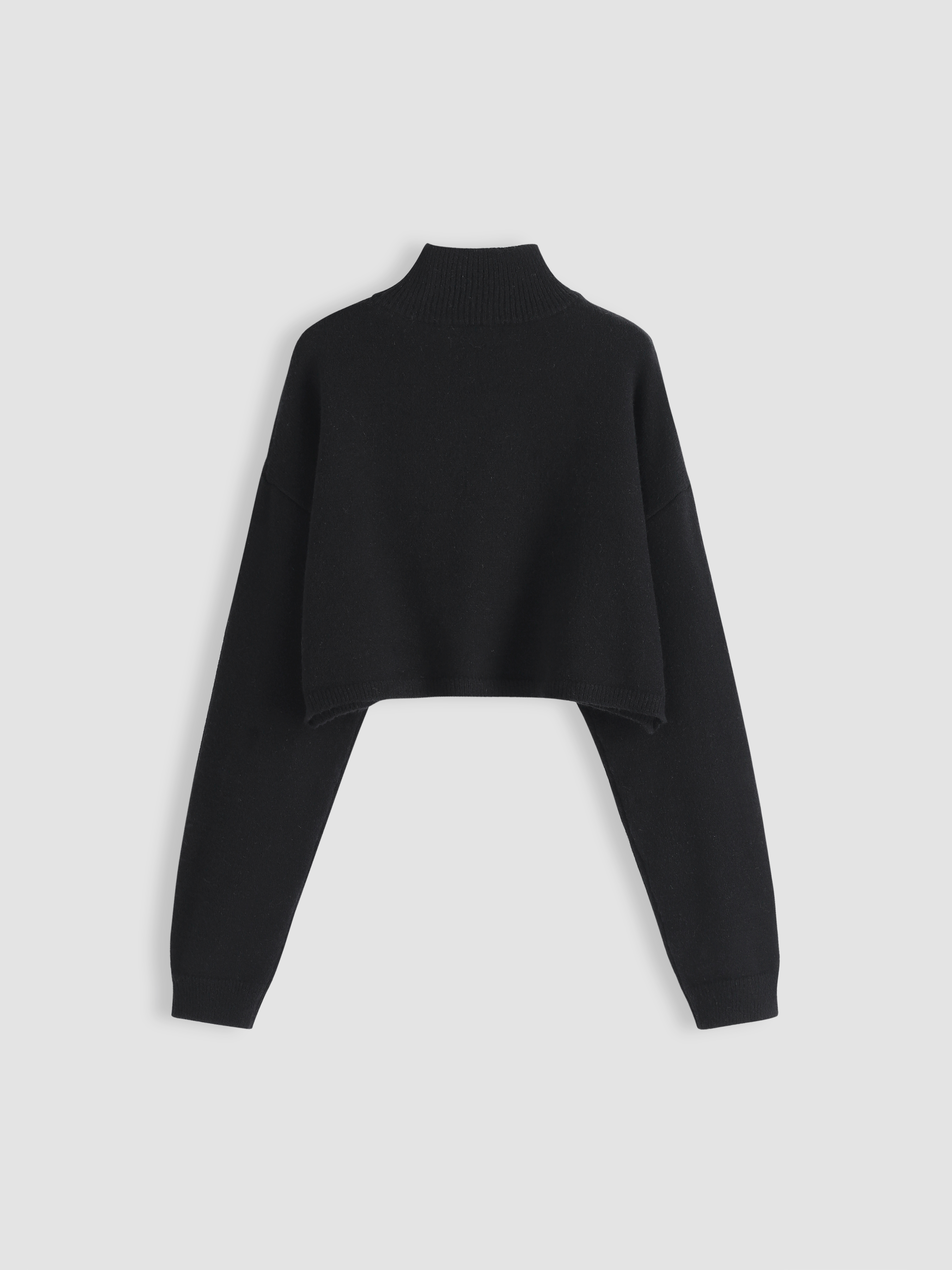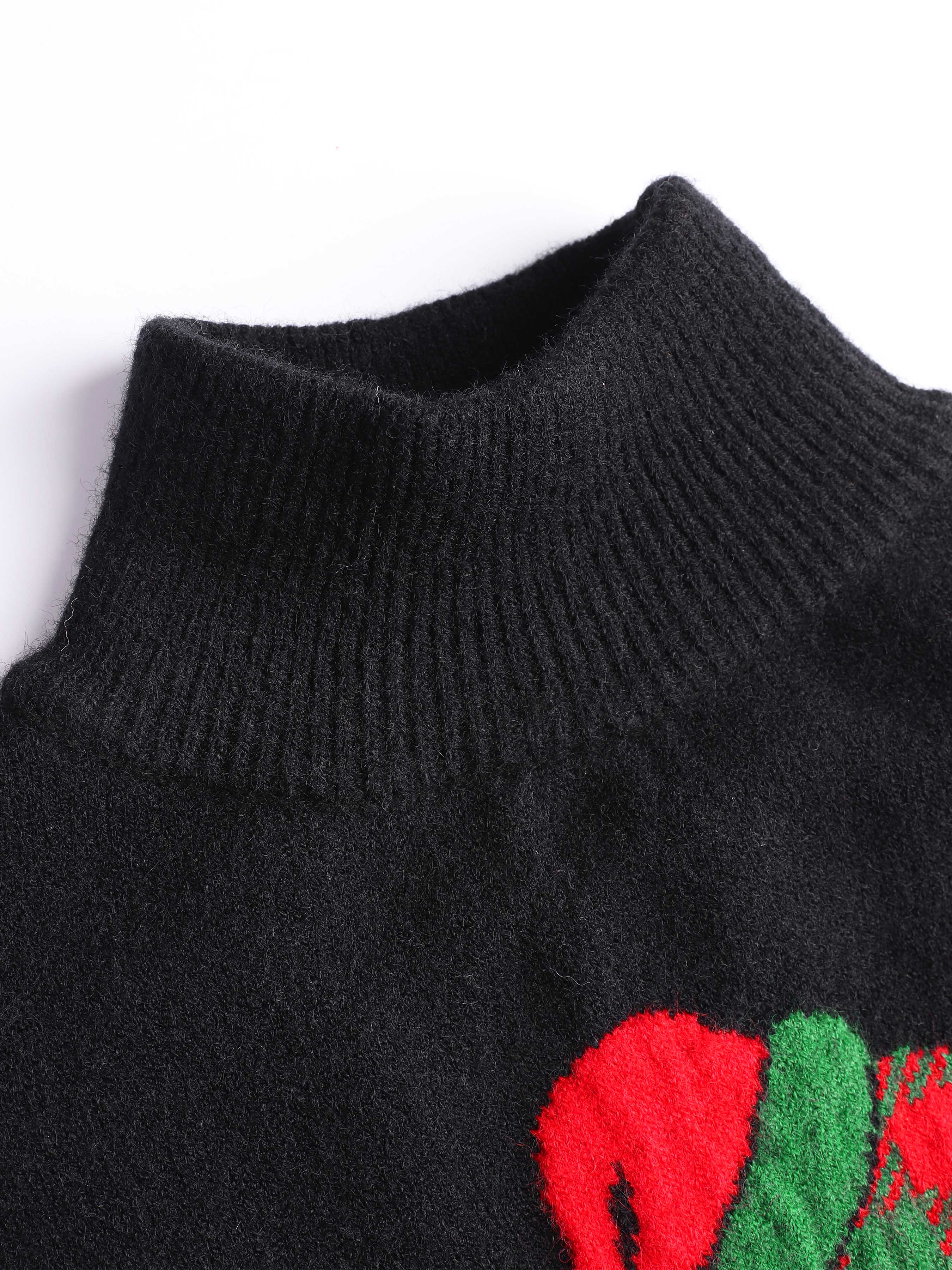 Christmas Graphic Turtleneck Knitted Crop Sweater