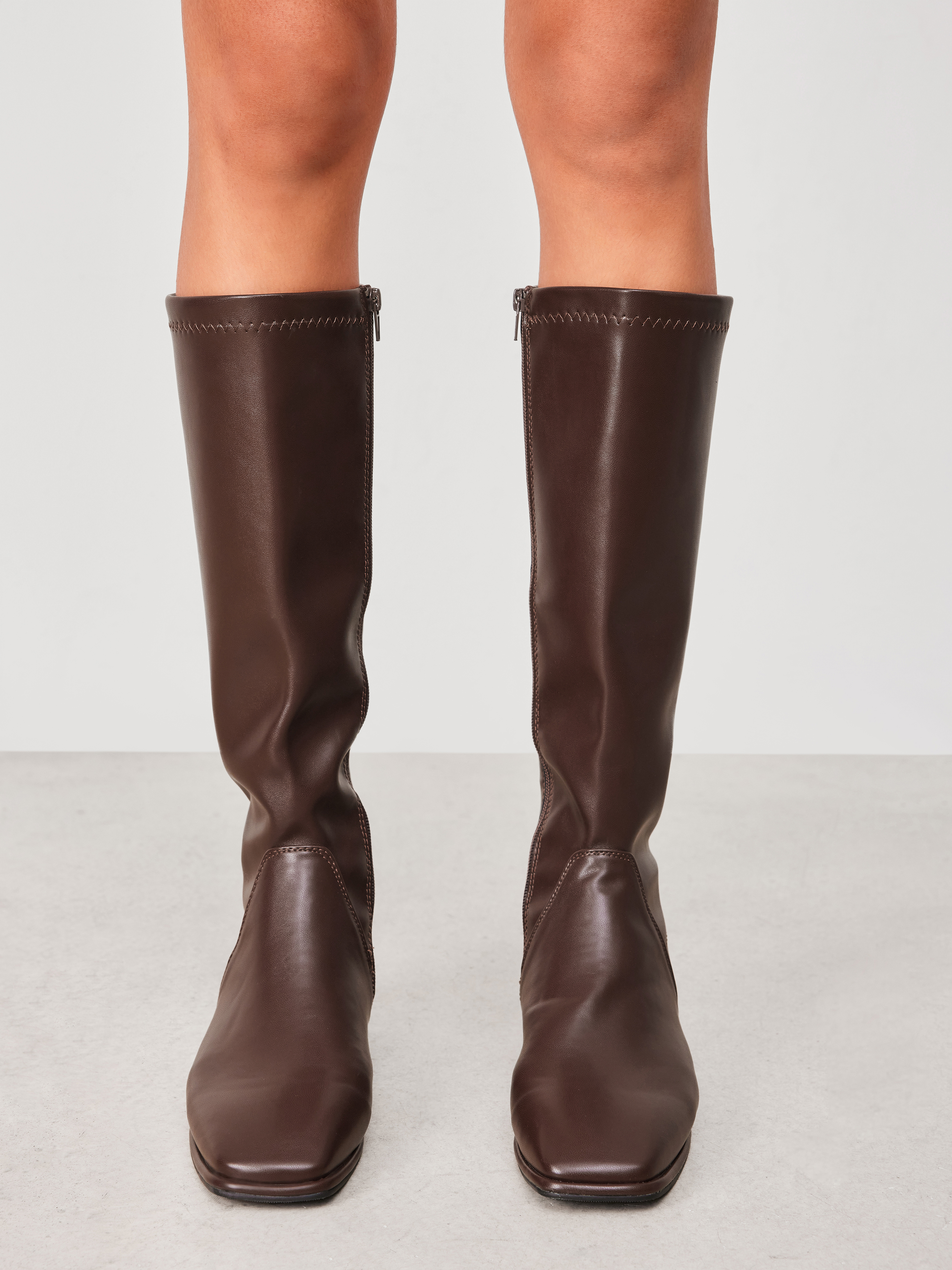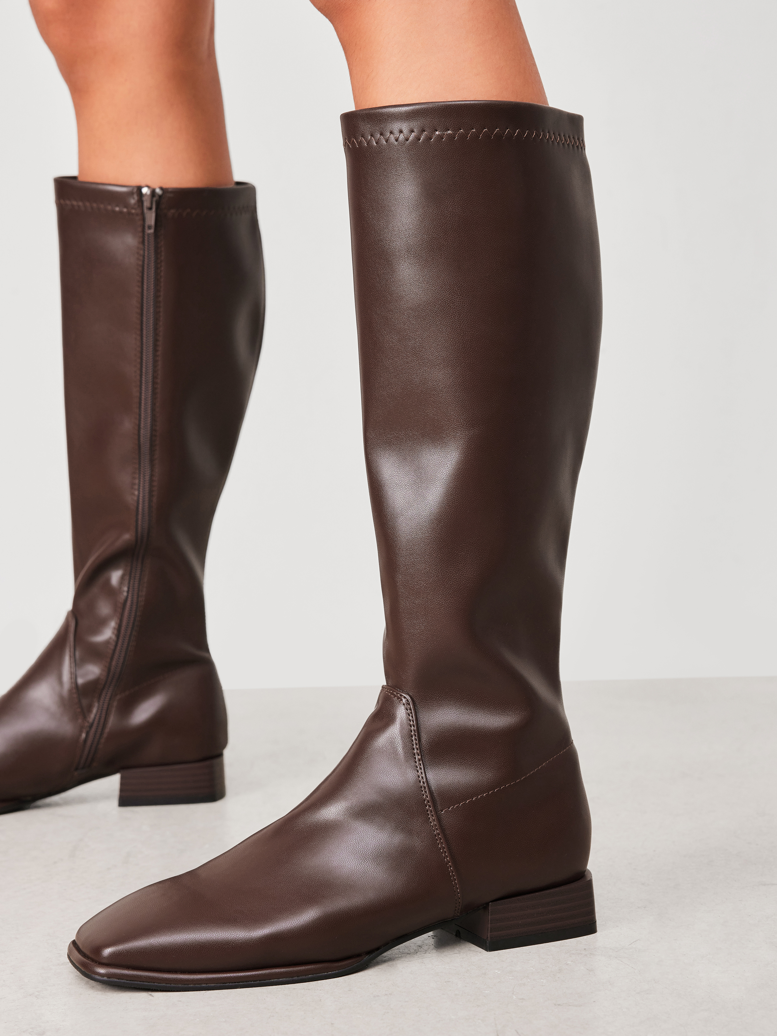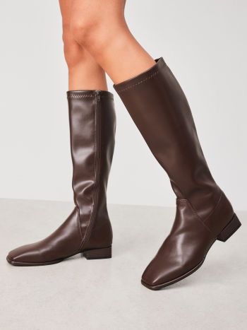 ELASTIC LOW HEEL KNEE HIGH BOOTS
