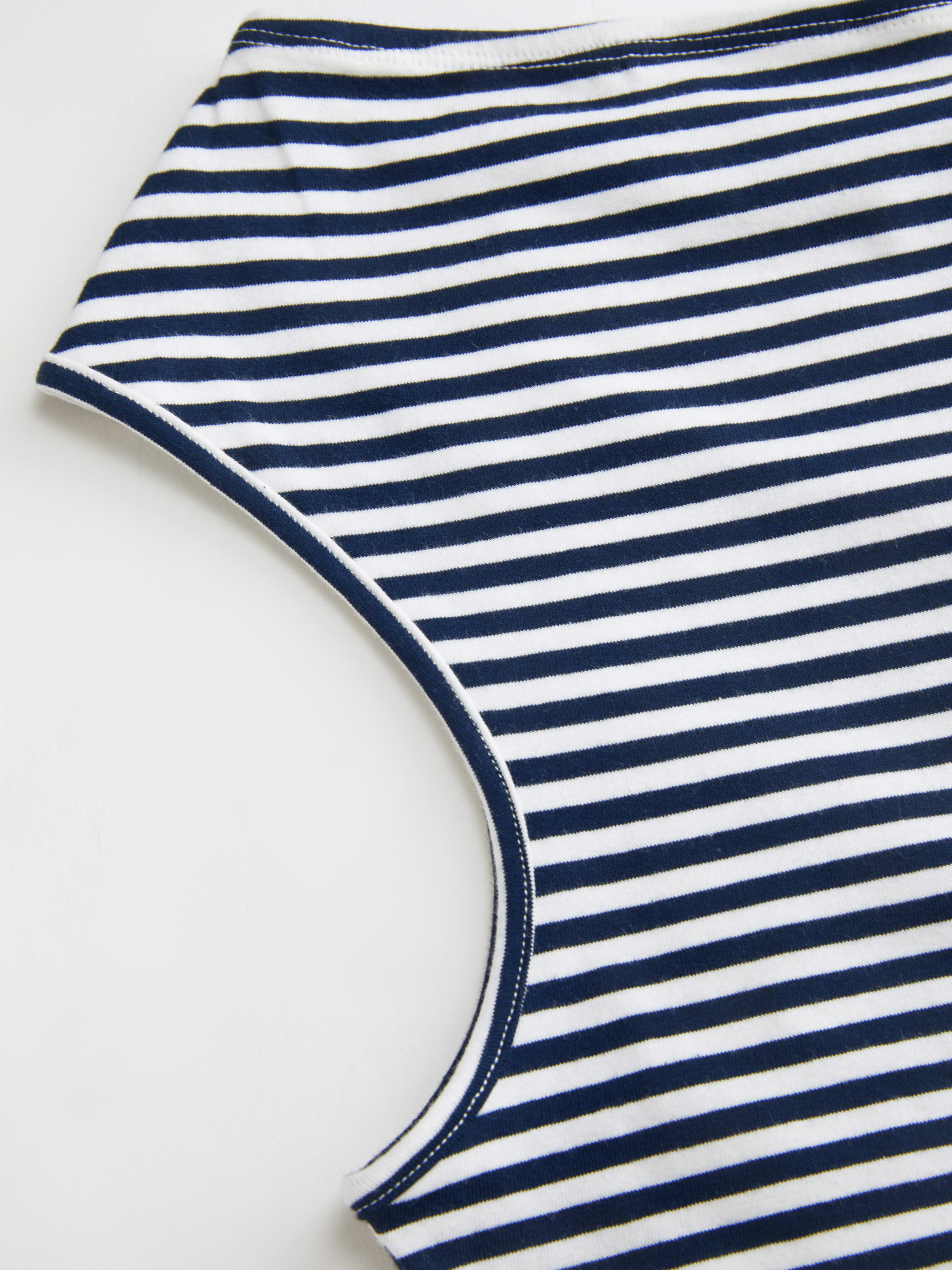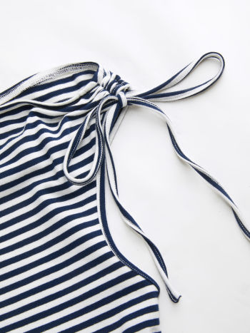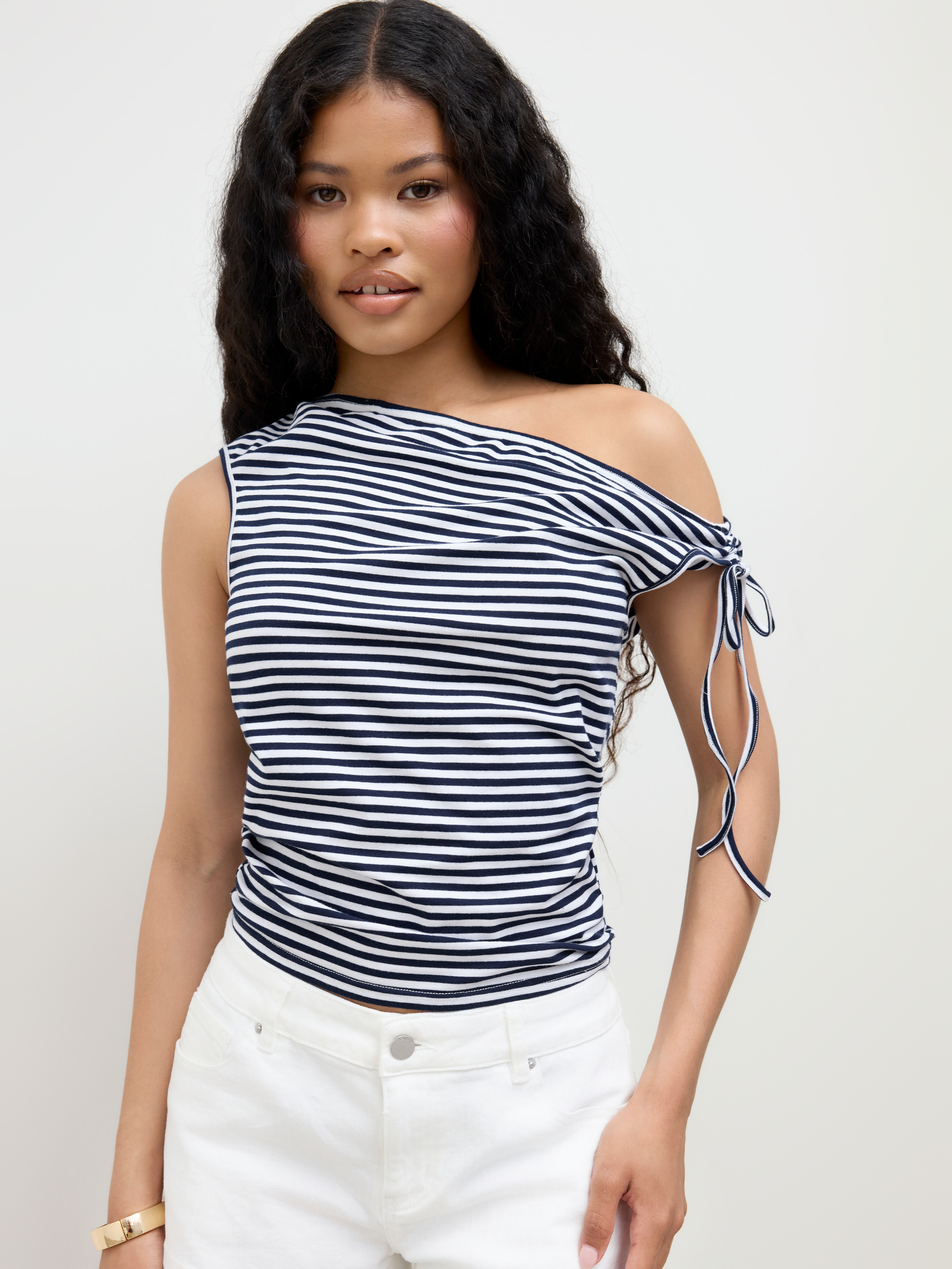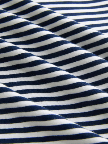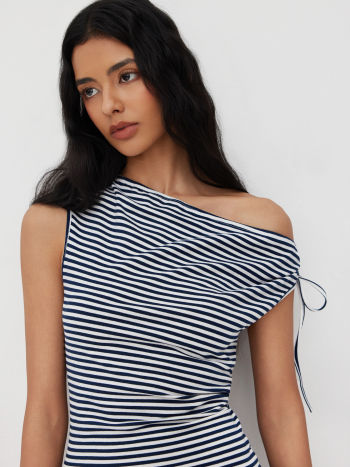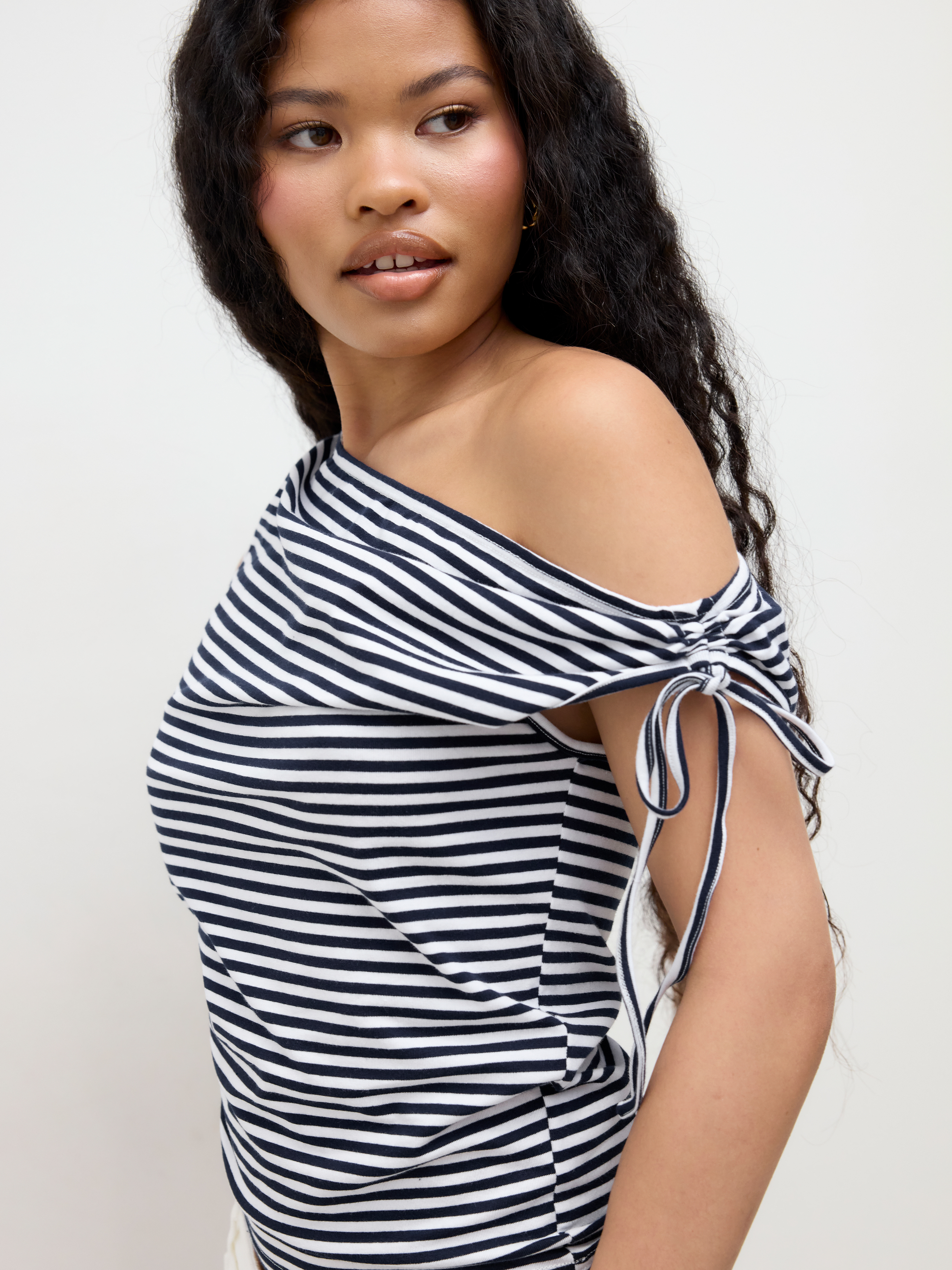 Cotton-blend Asymmetrical Neck Stripes Short Sleeve Tee