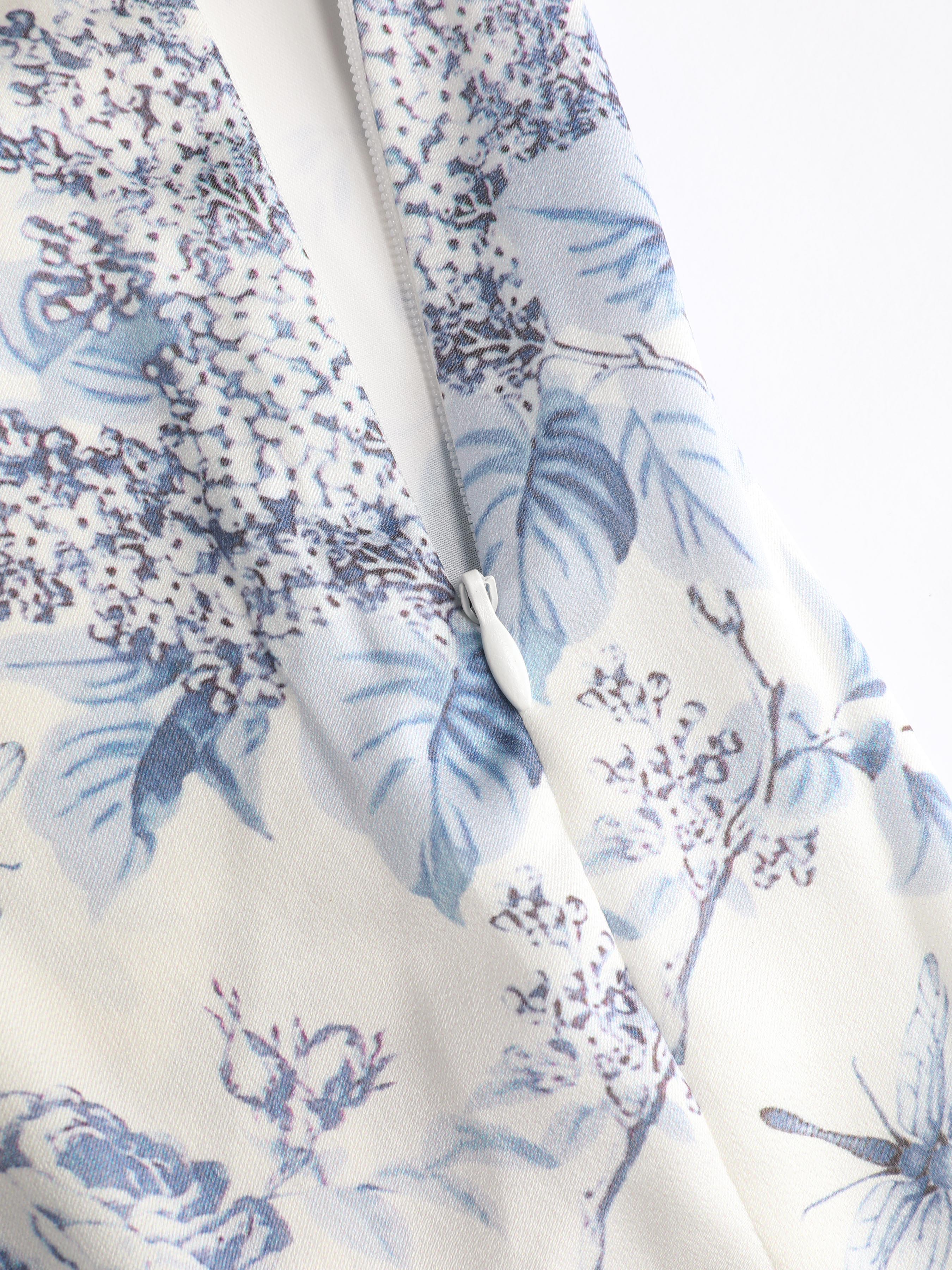 Floral & Dragonfly Cowl Neck Midi Dress Curve & Plus