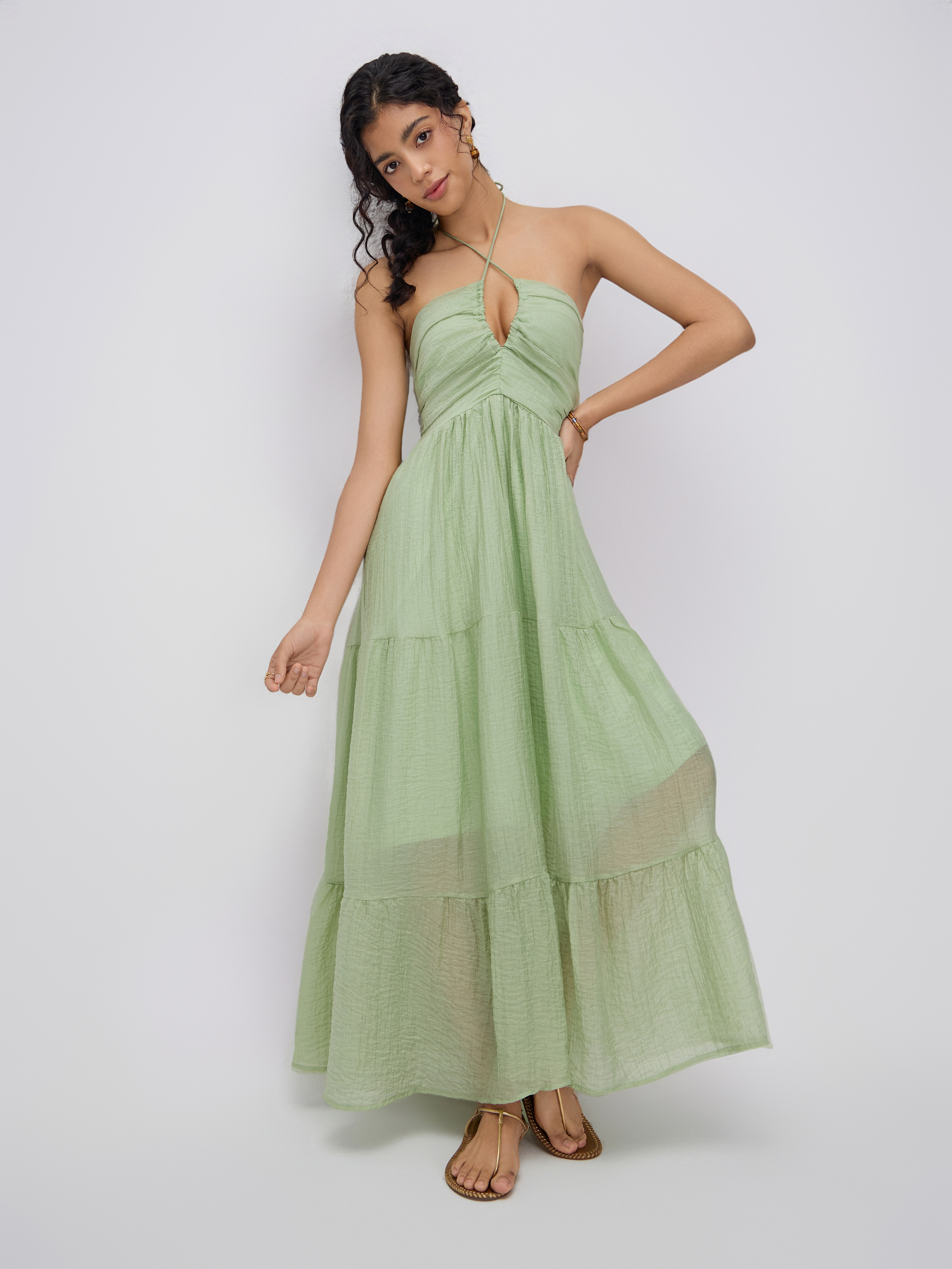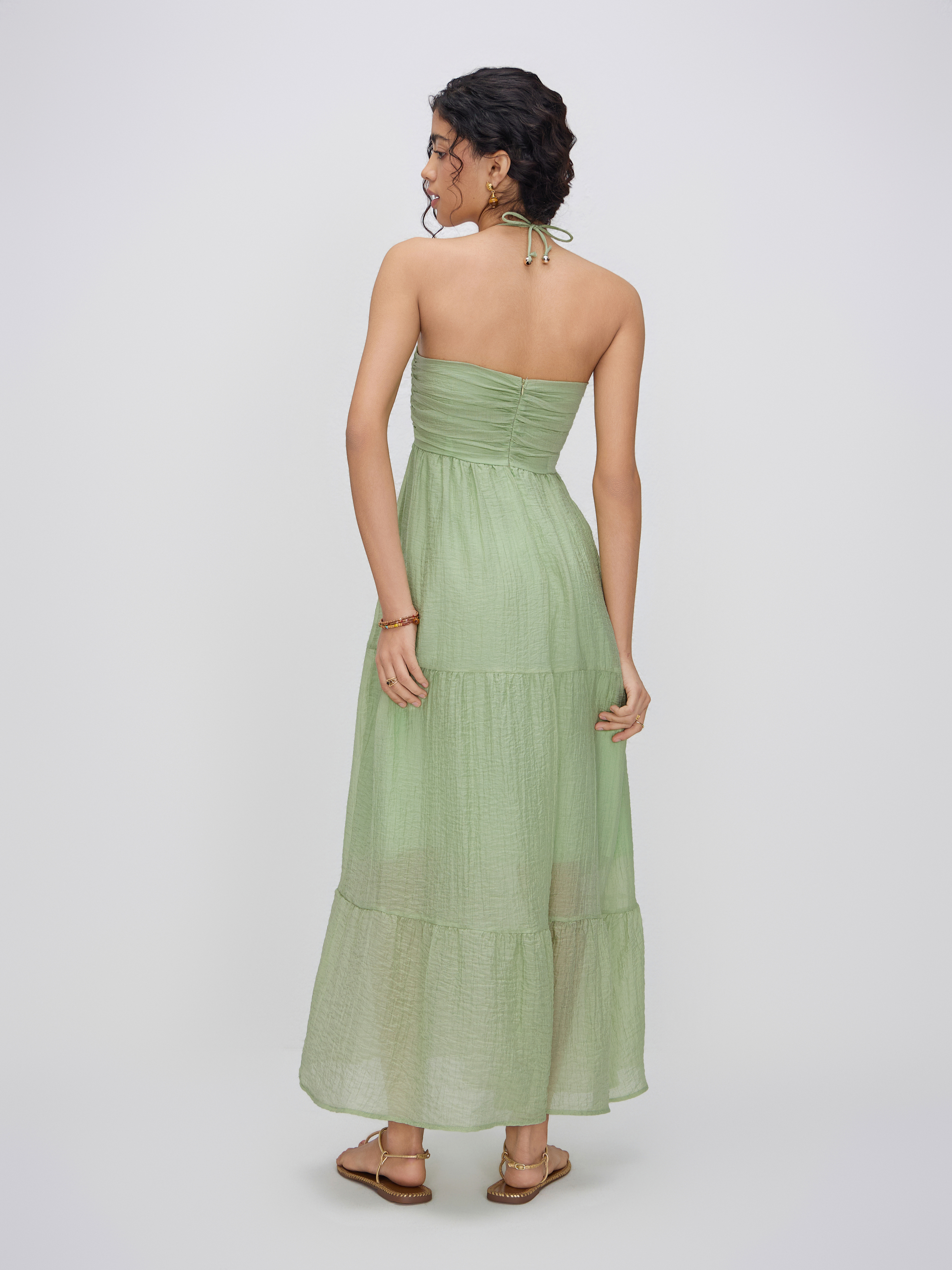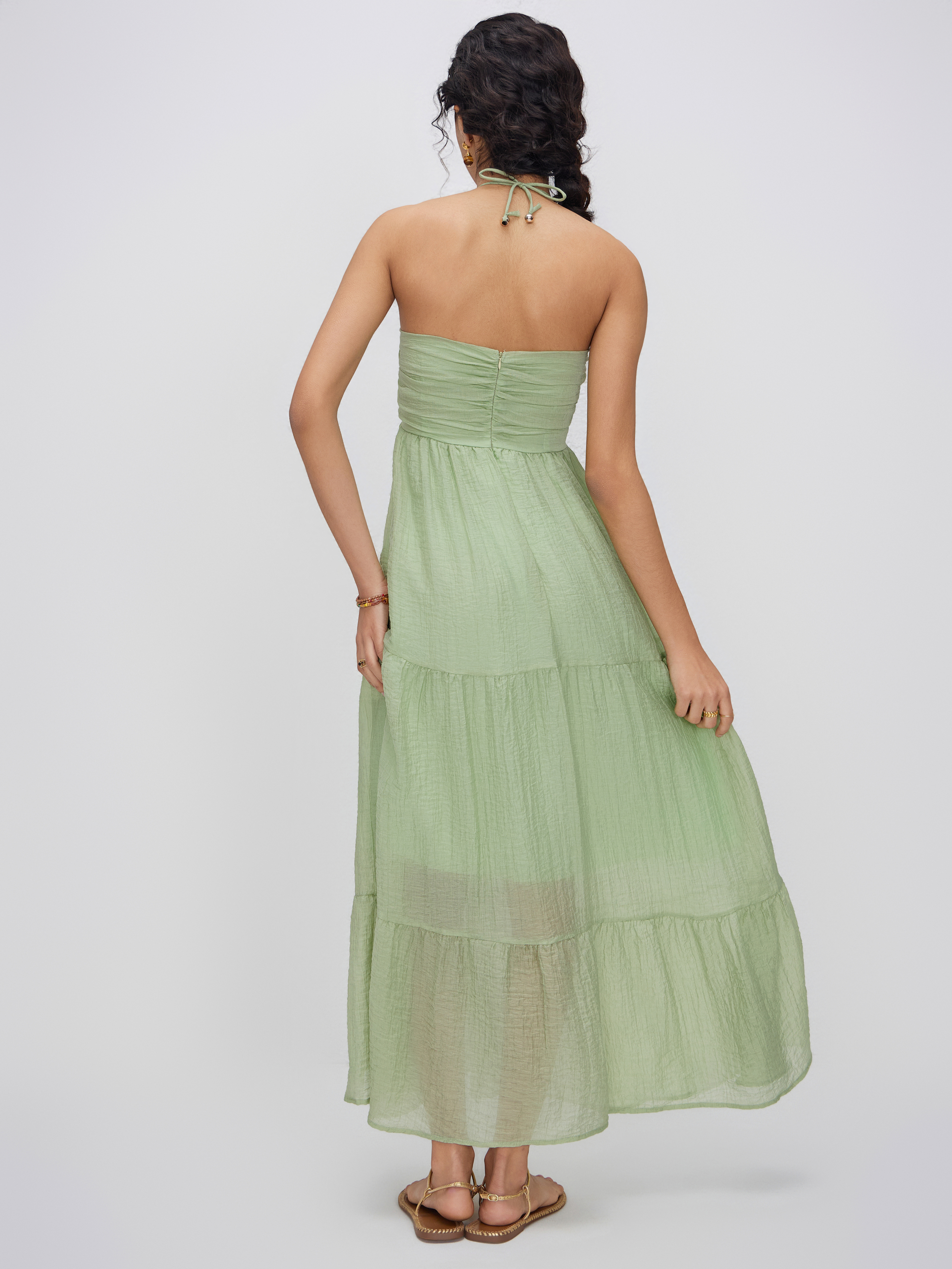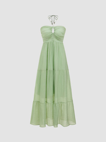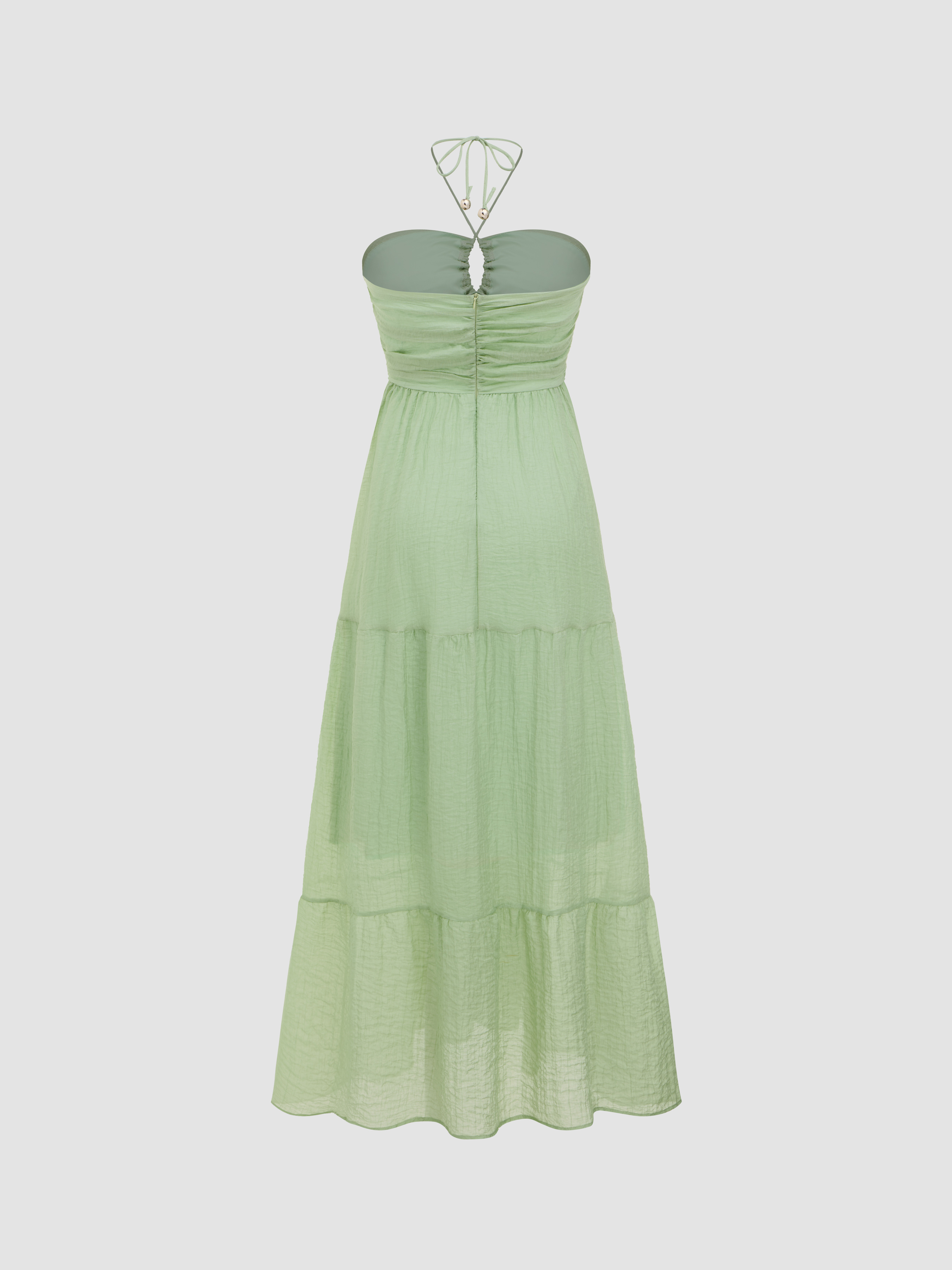 Cut Out Ruffle Hem Tiered Tulle Maxi Dress