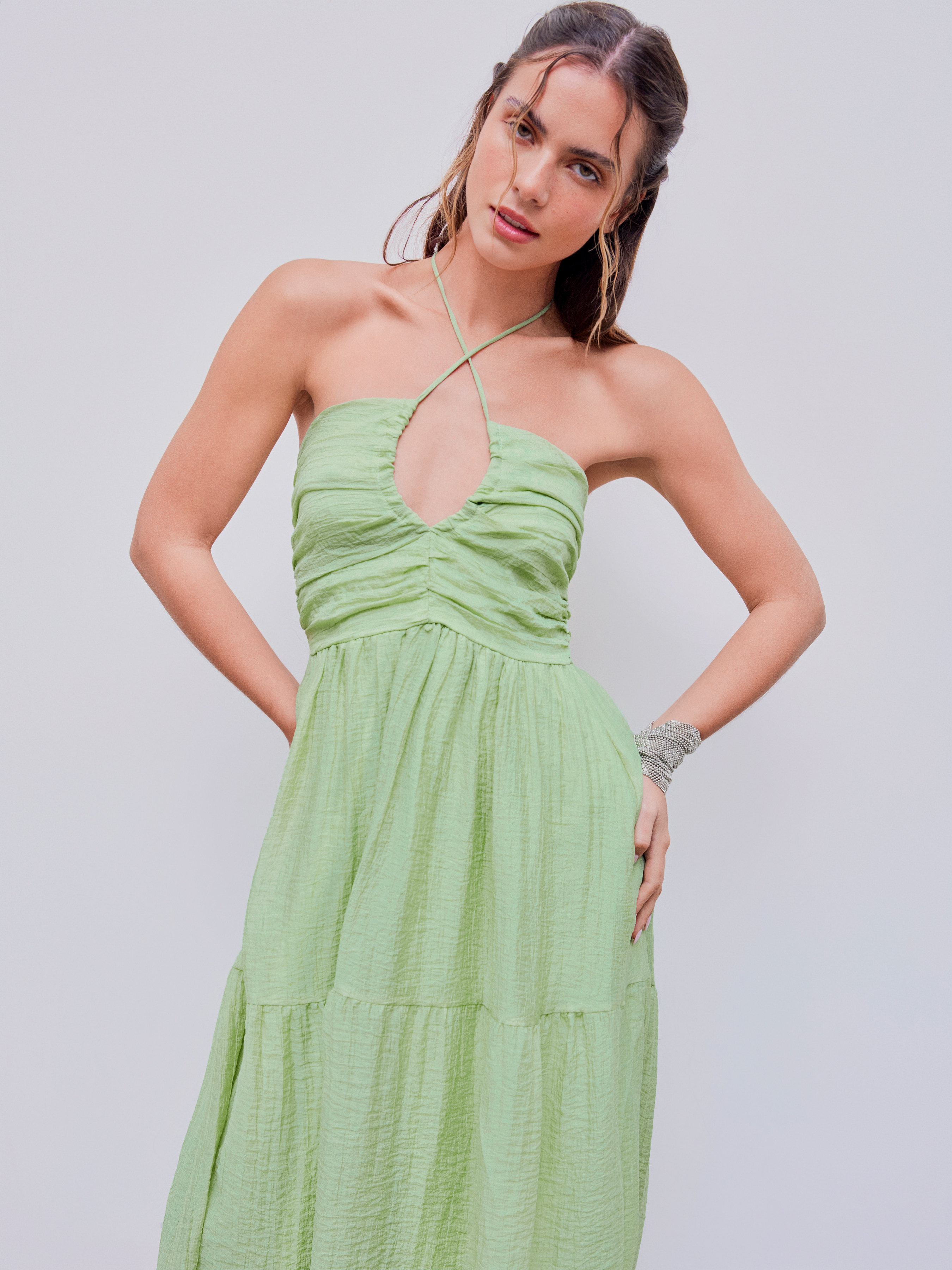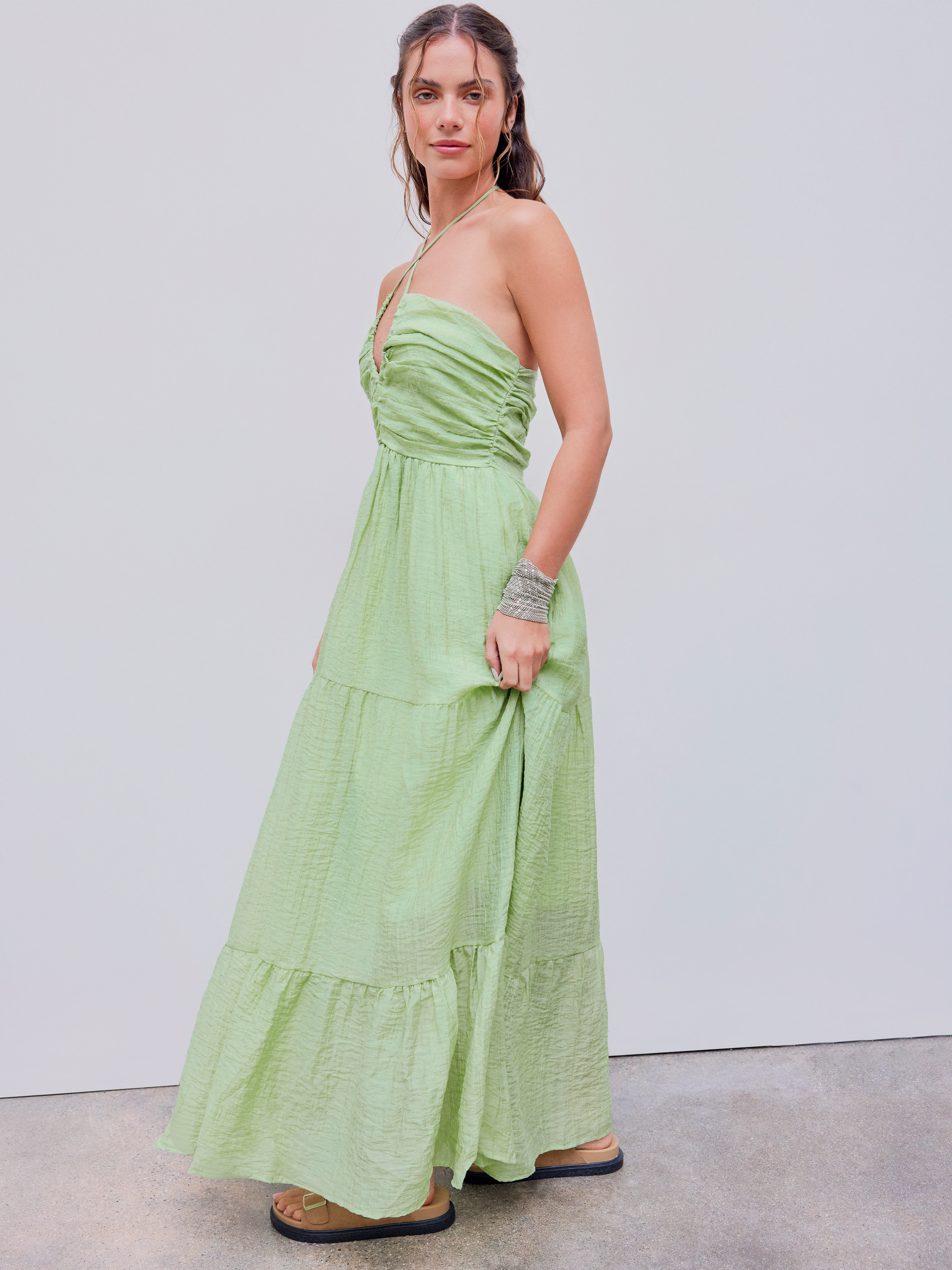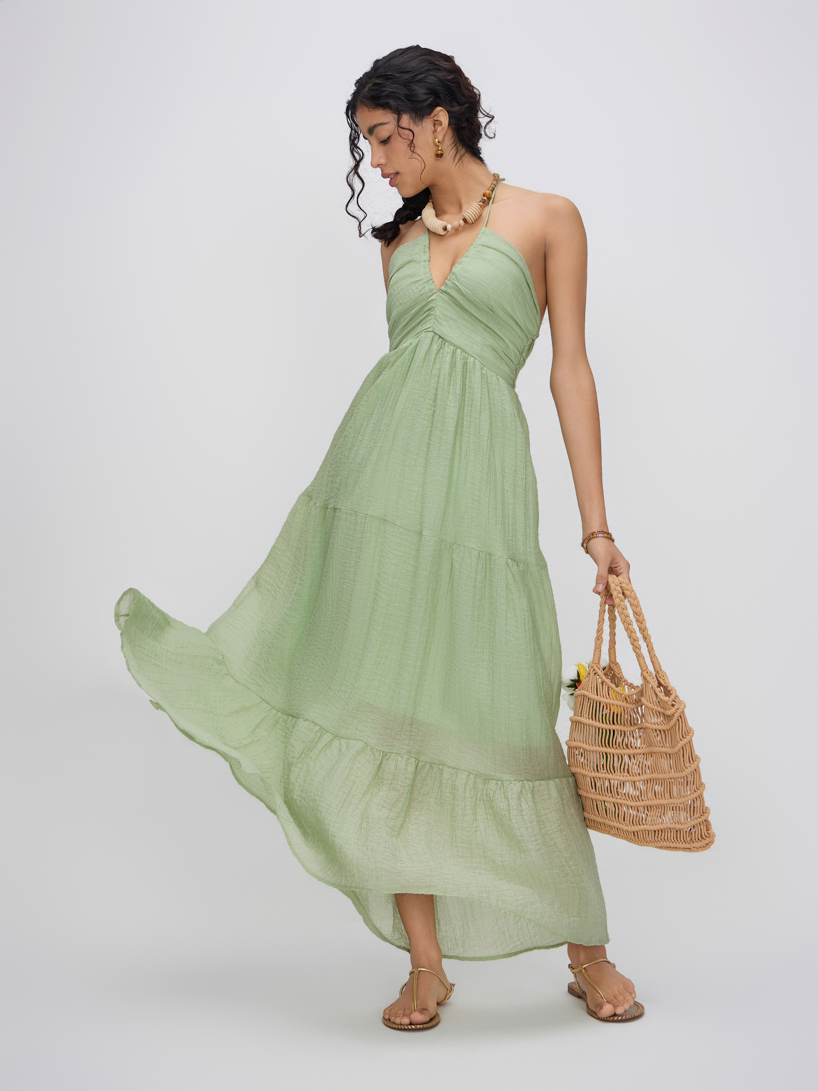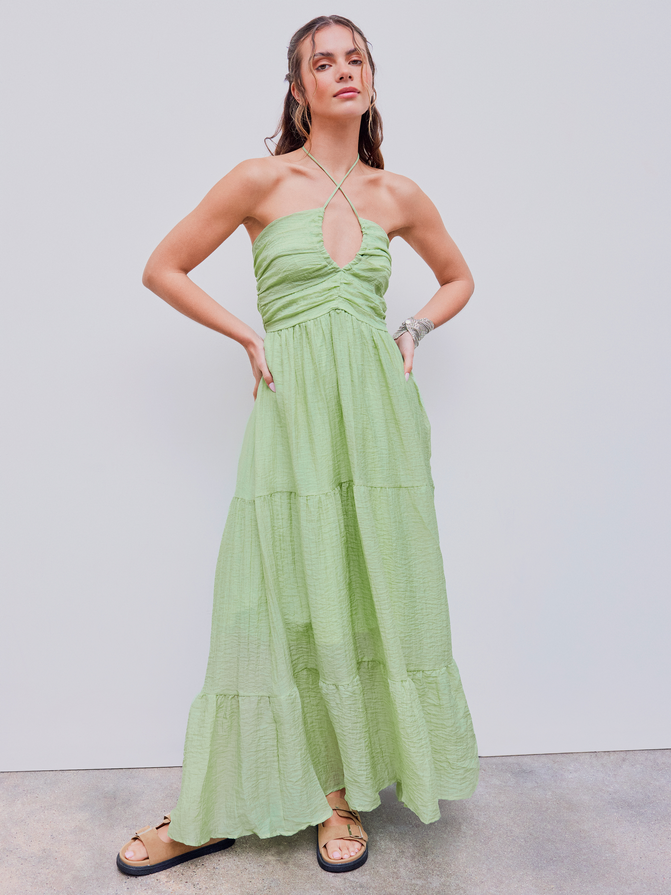 Cut Out Ruffle Hem Tiered Tulle Maxi Dress