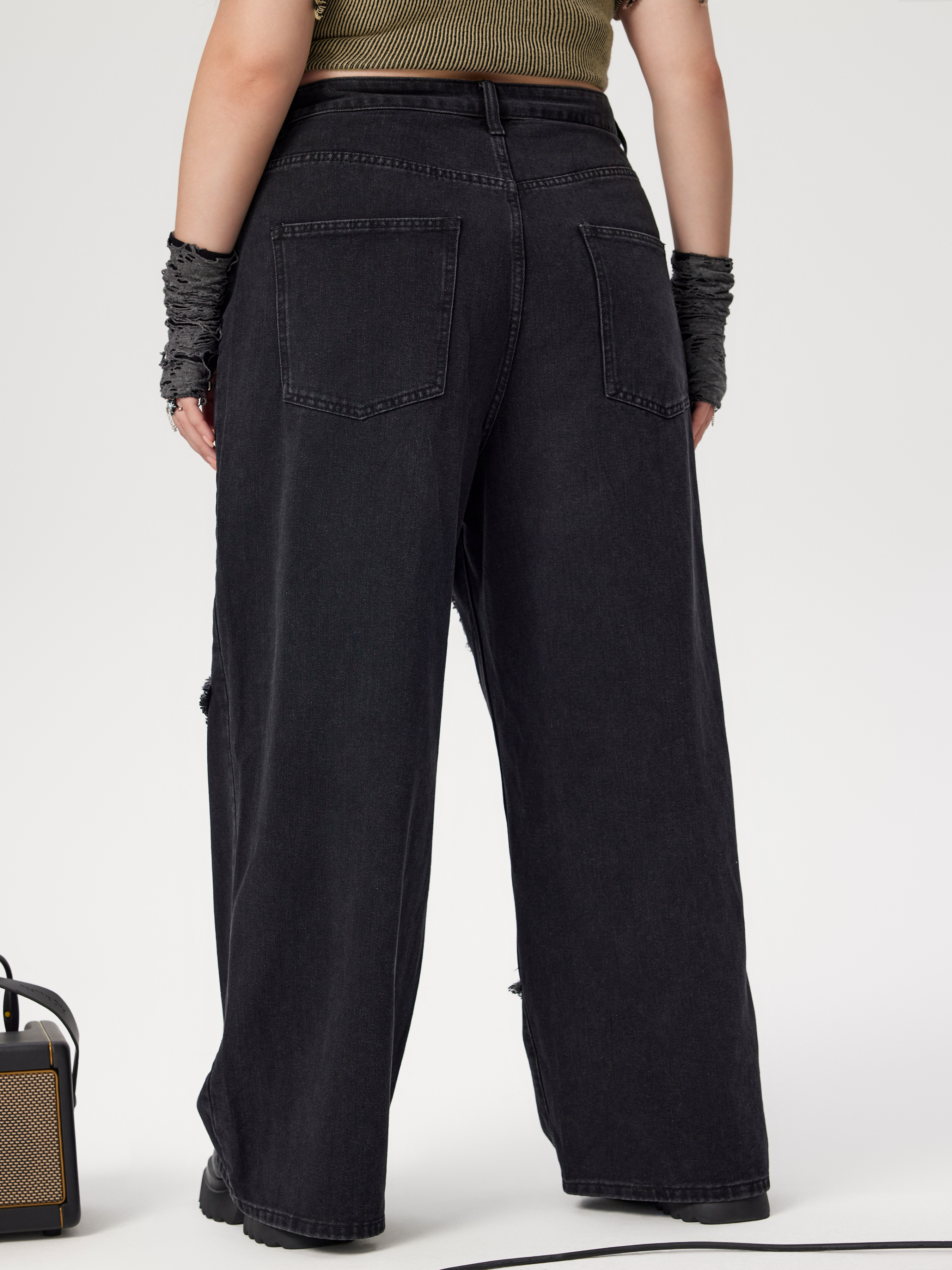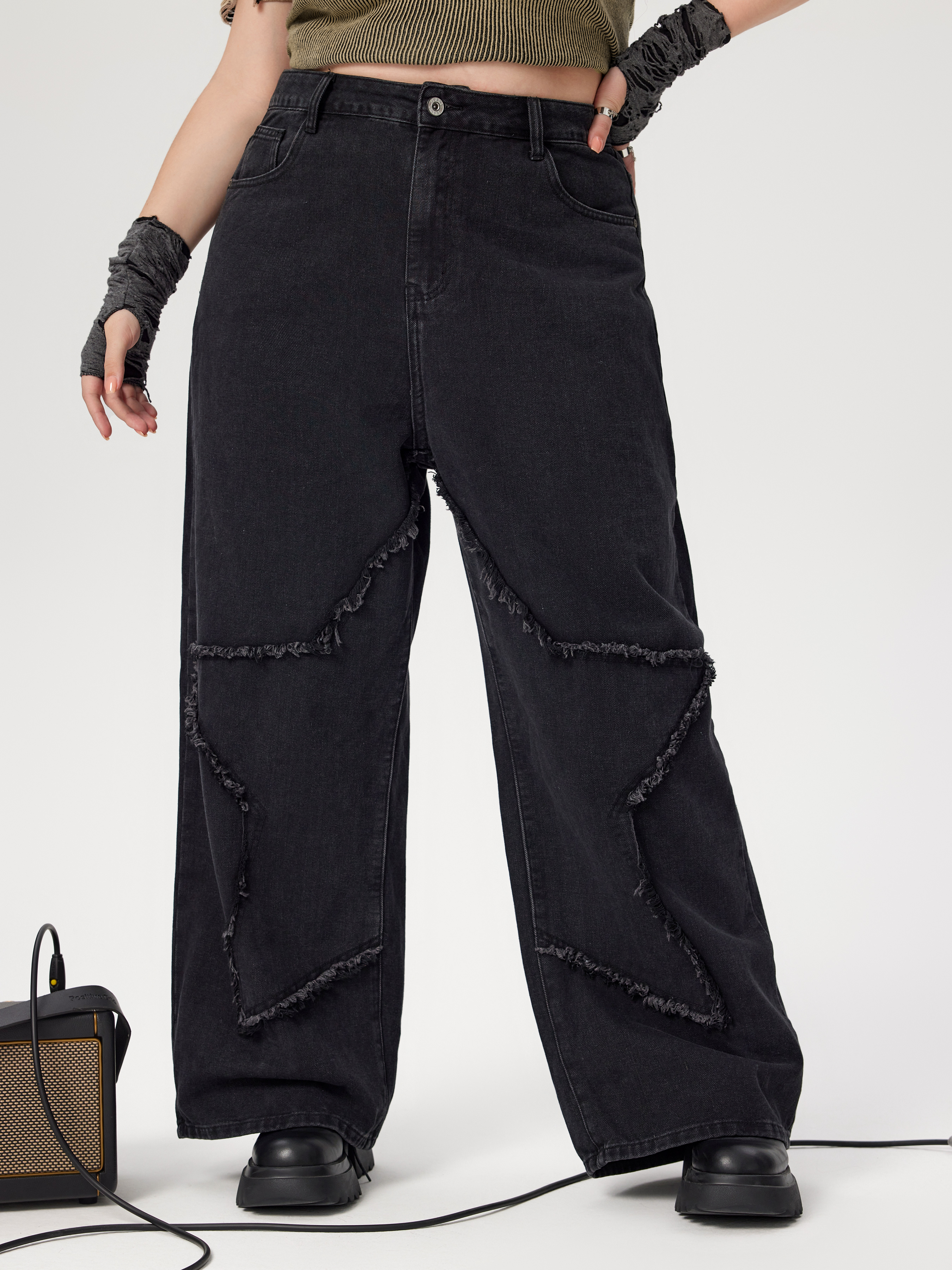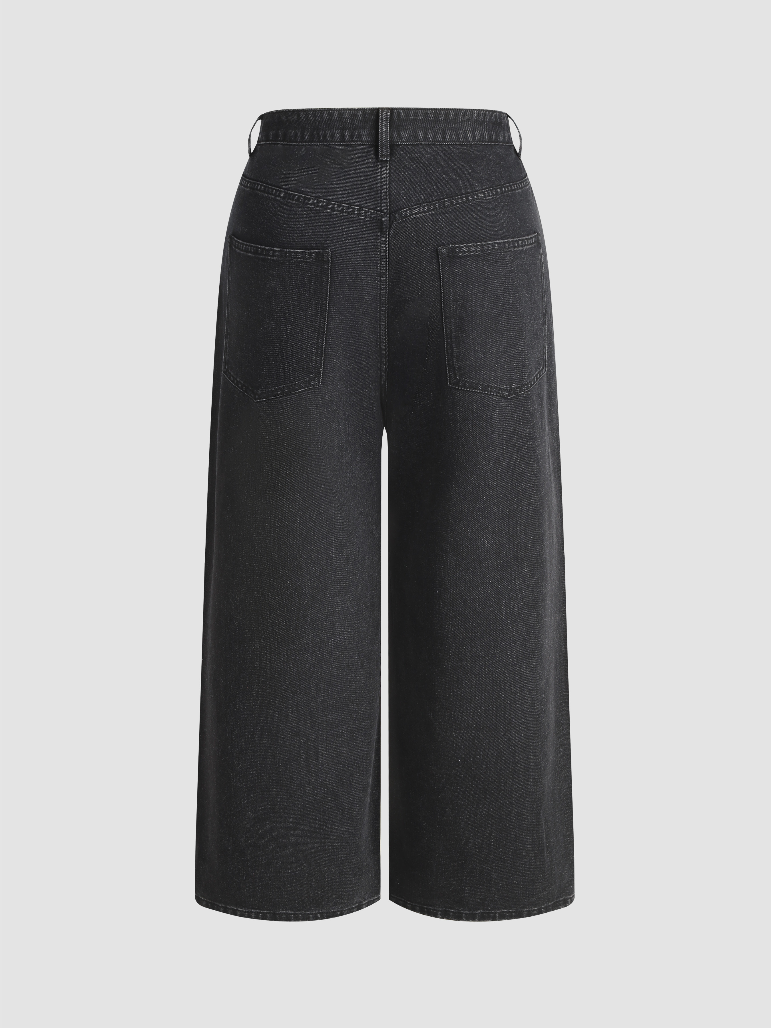 Denim High Waist Star Pocket Wide Leg Jeans Curve & Plus