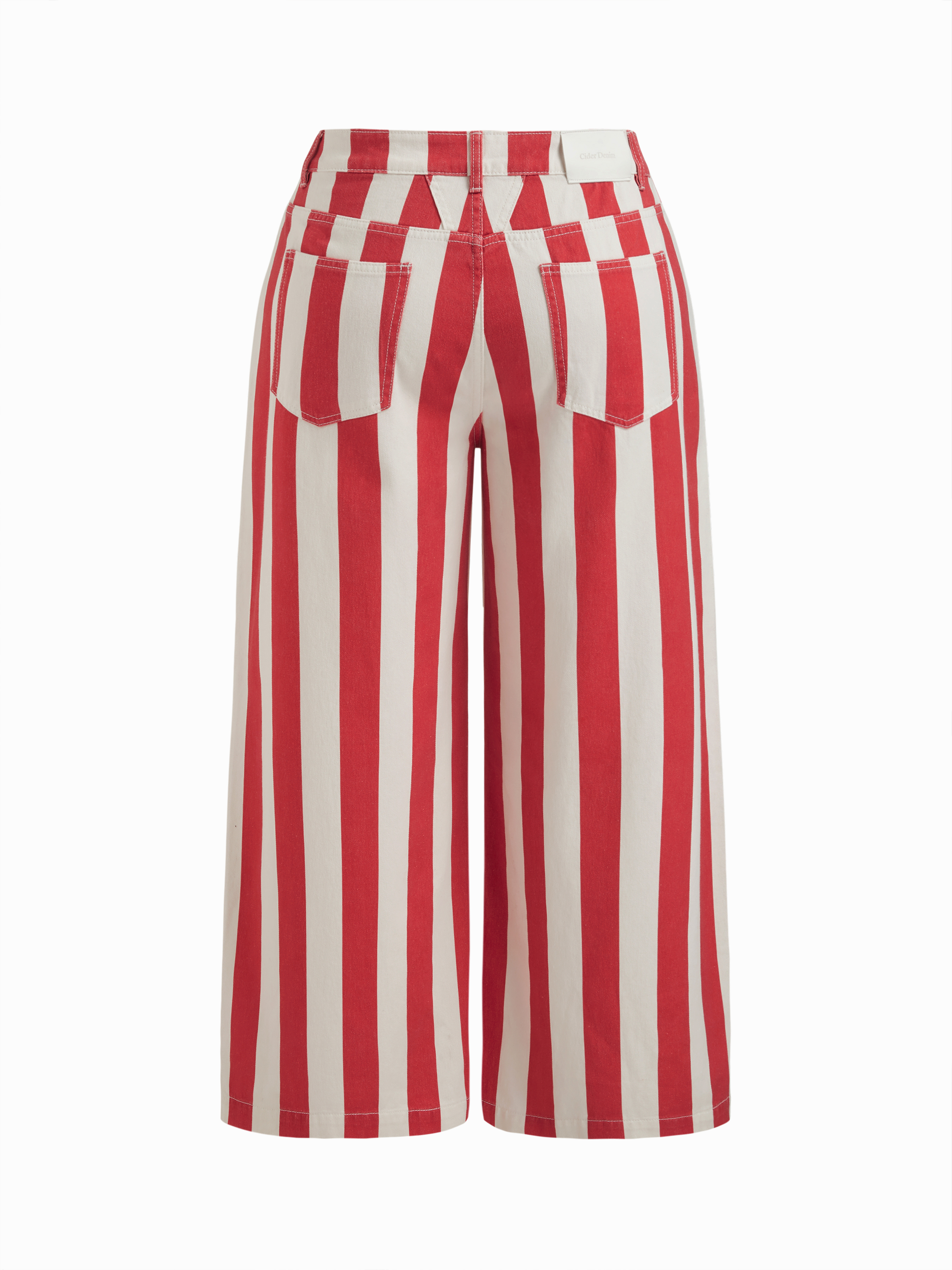 Cider Denim Mid Rise Stripe Wide Leg Jeans Curve & Plus
