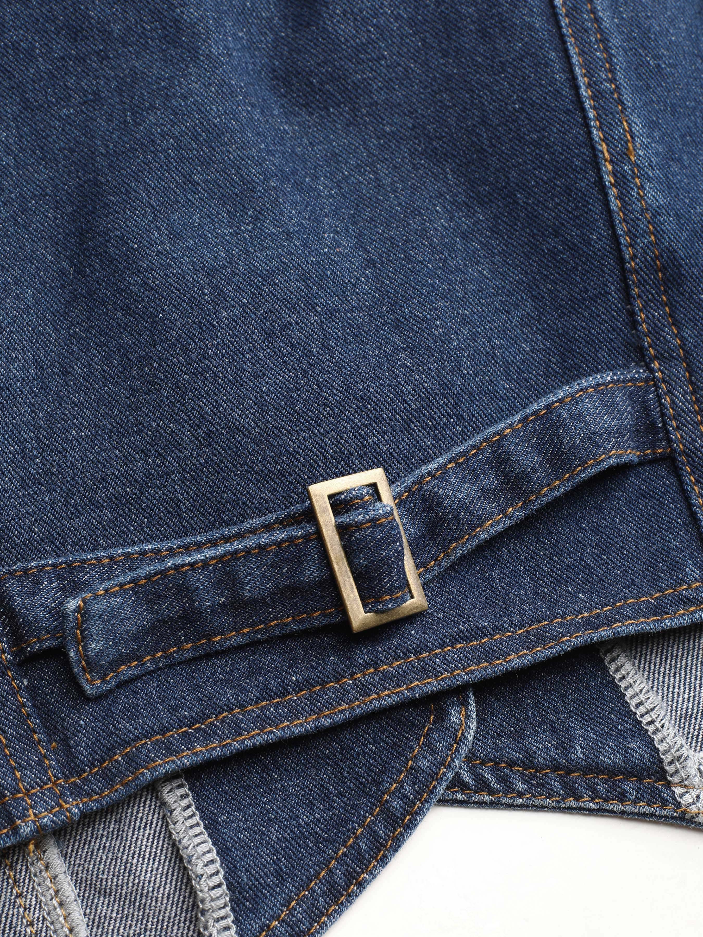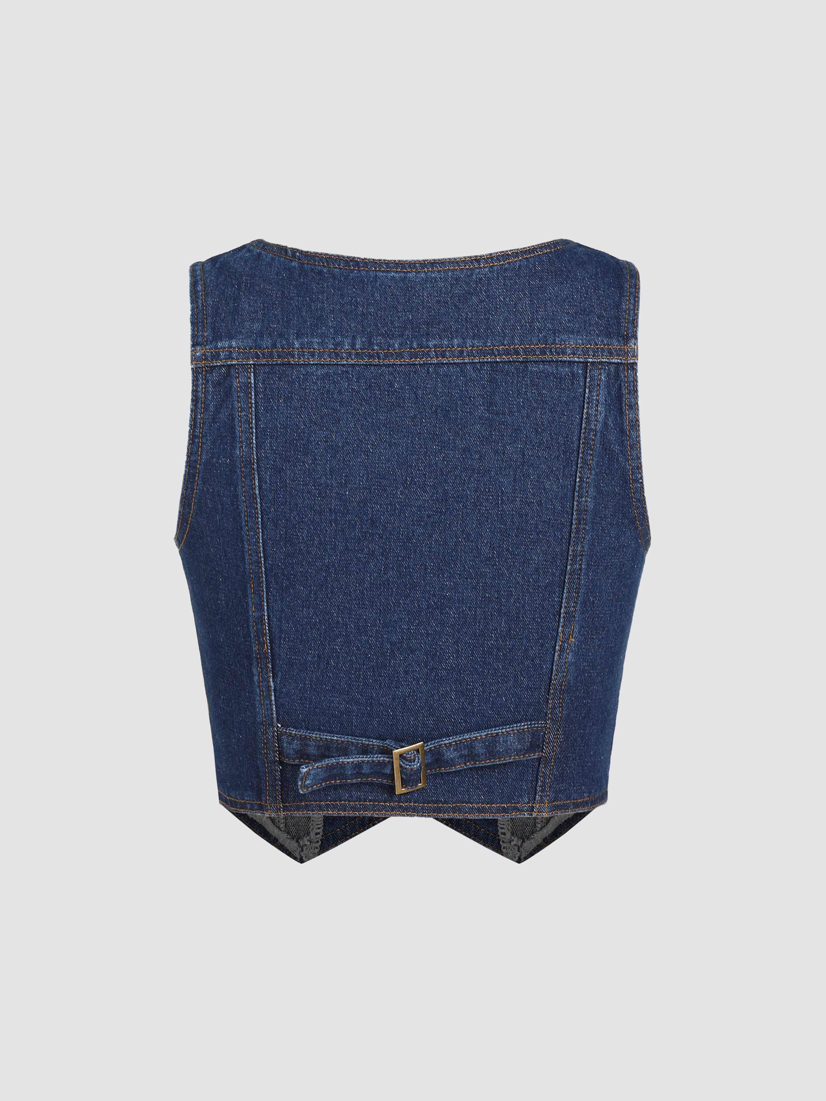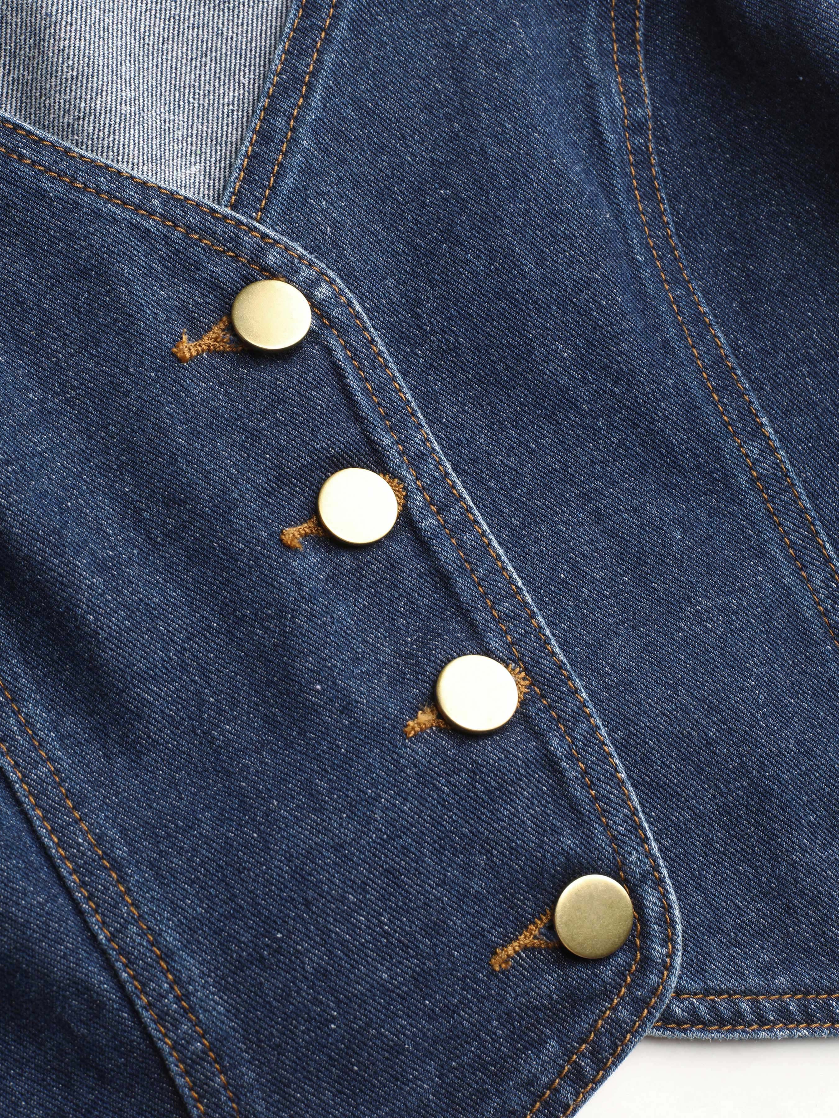 Denim V-neck Button Crop Vest