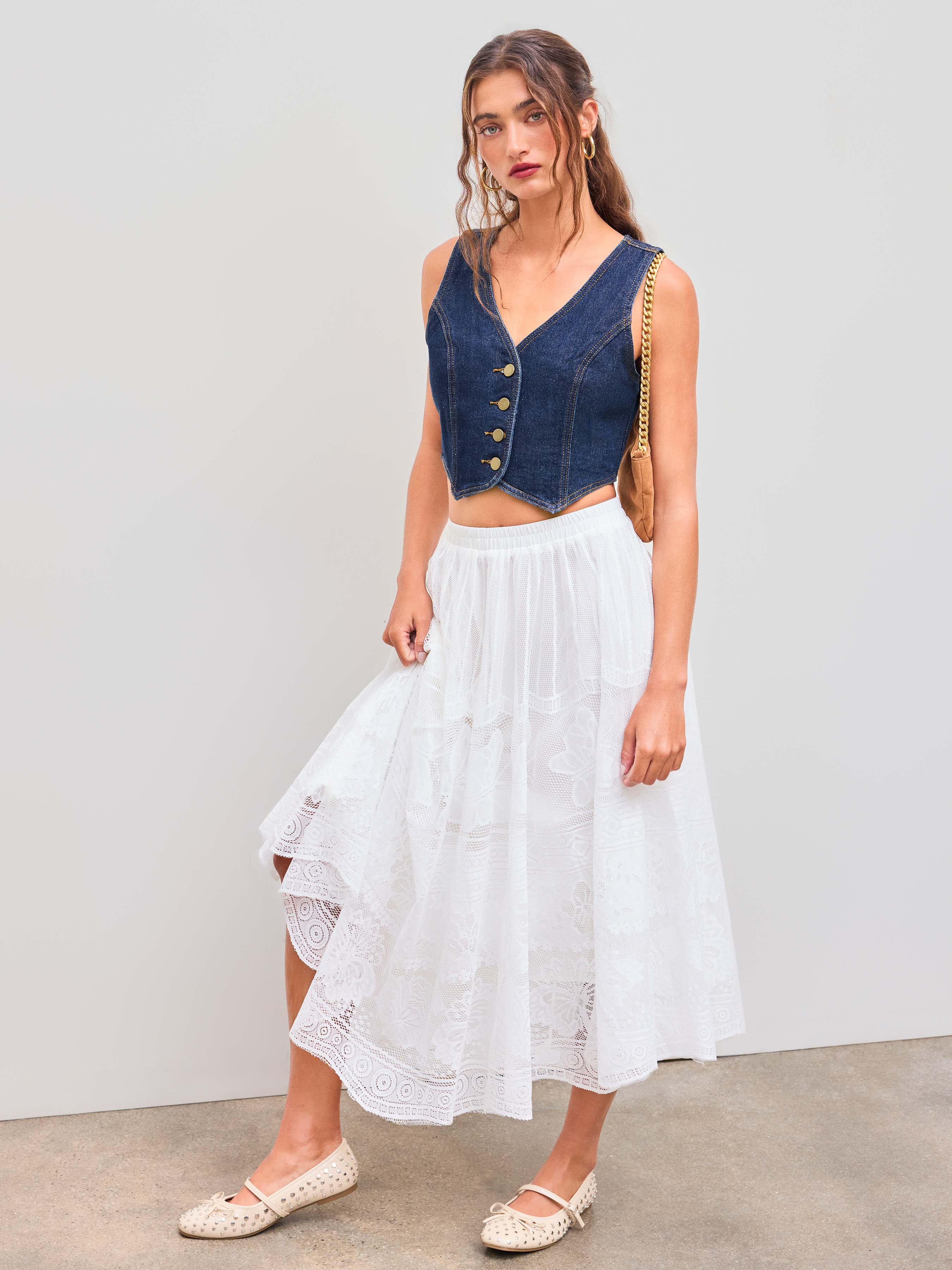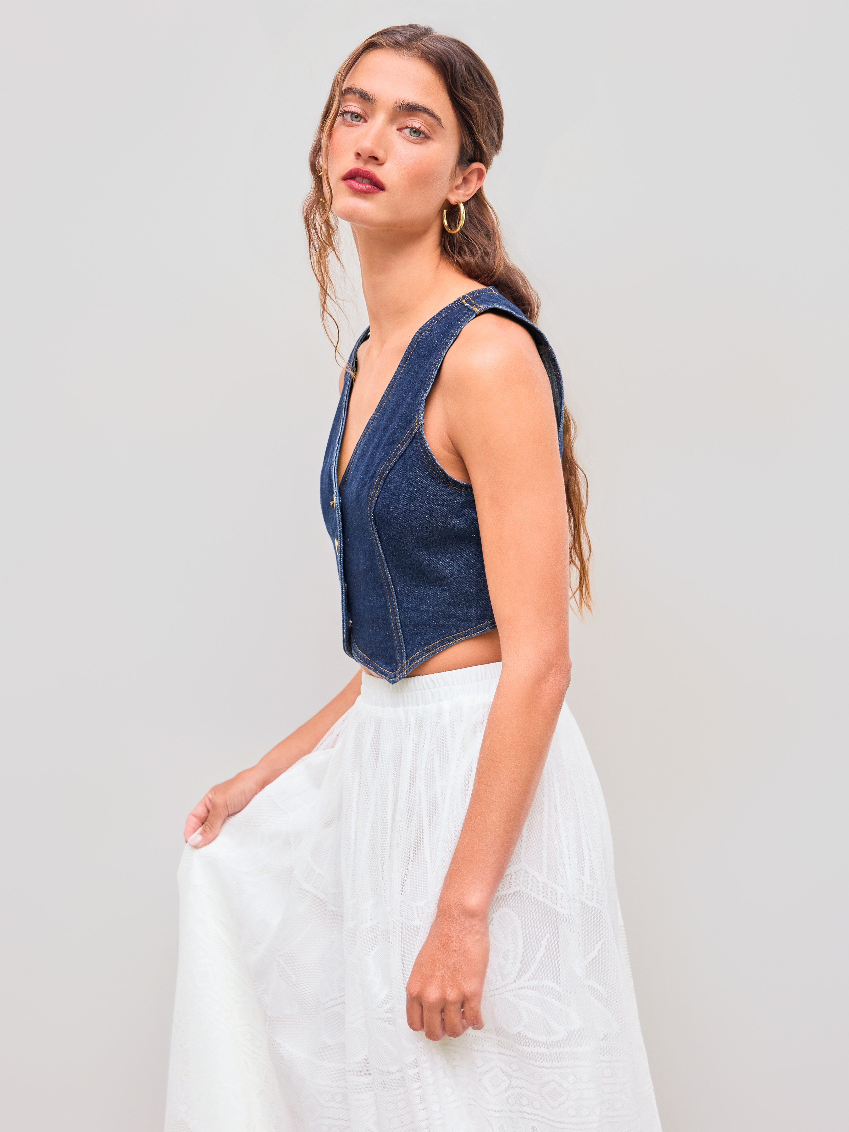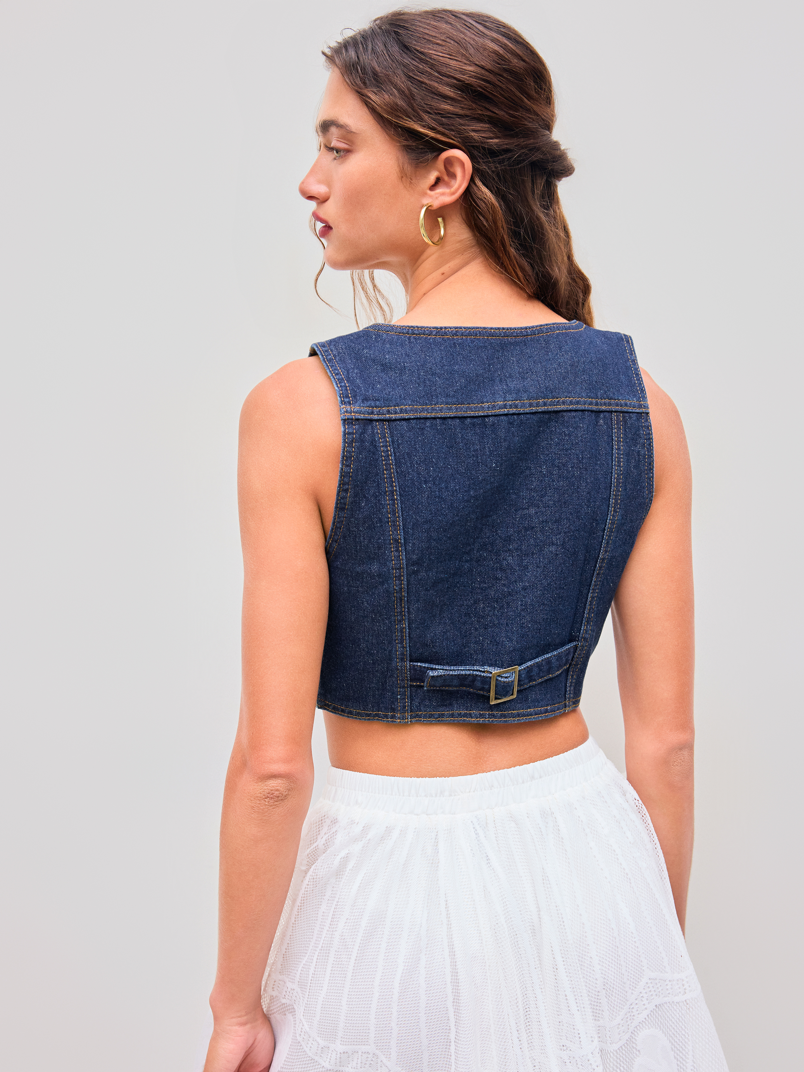 Denim V-neck Button Crop Vest