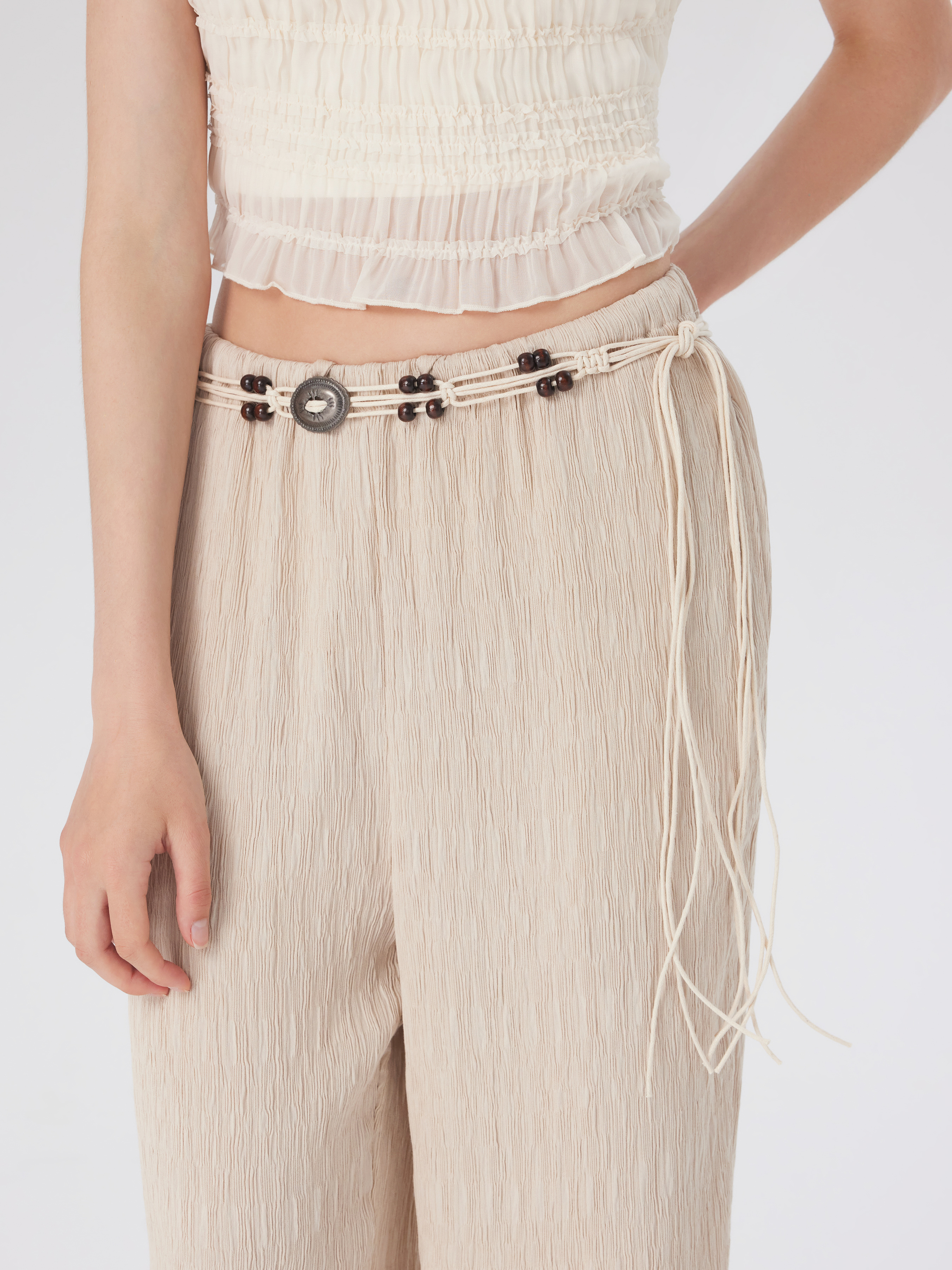 ENGRAVED OVAL & BEADED DECOR LACE-UP WAIST BELT