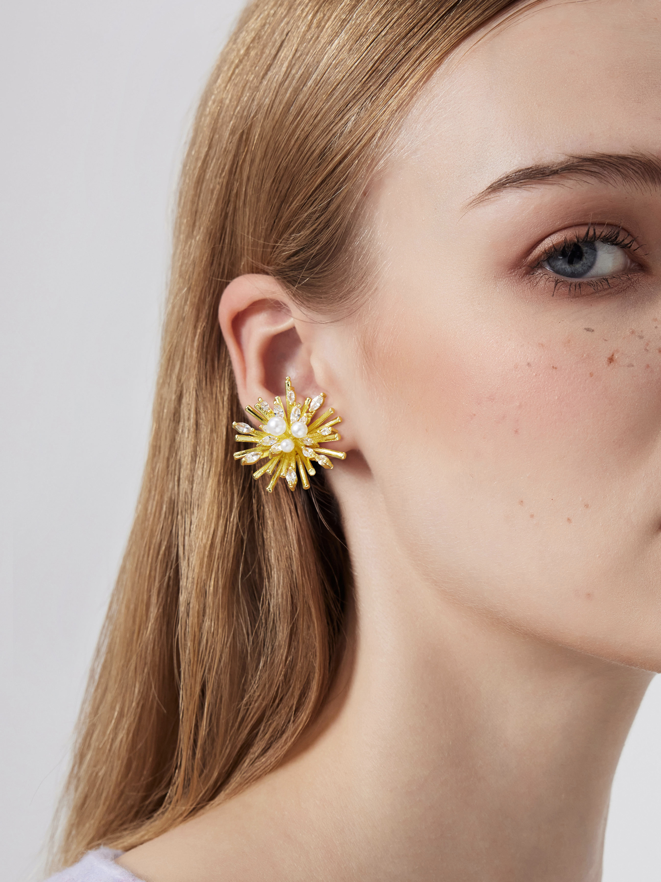 귀걸이 디테일: 진주, 꽃