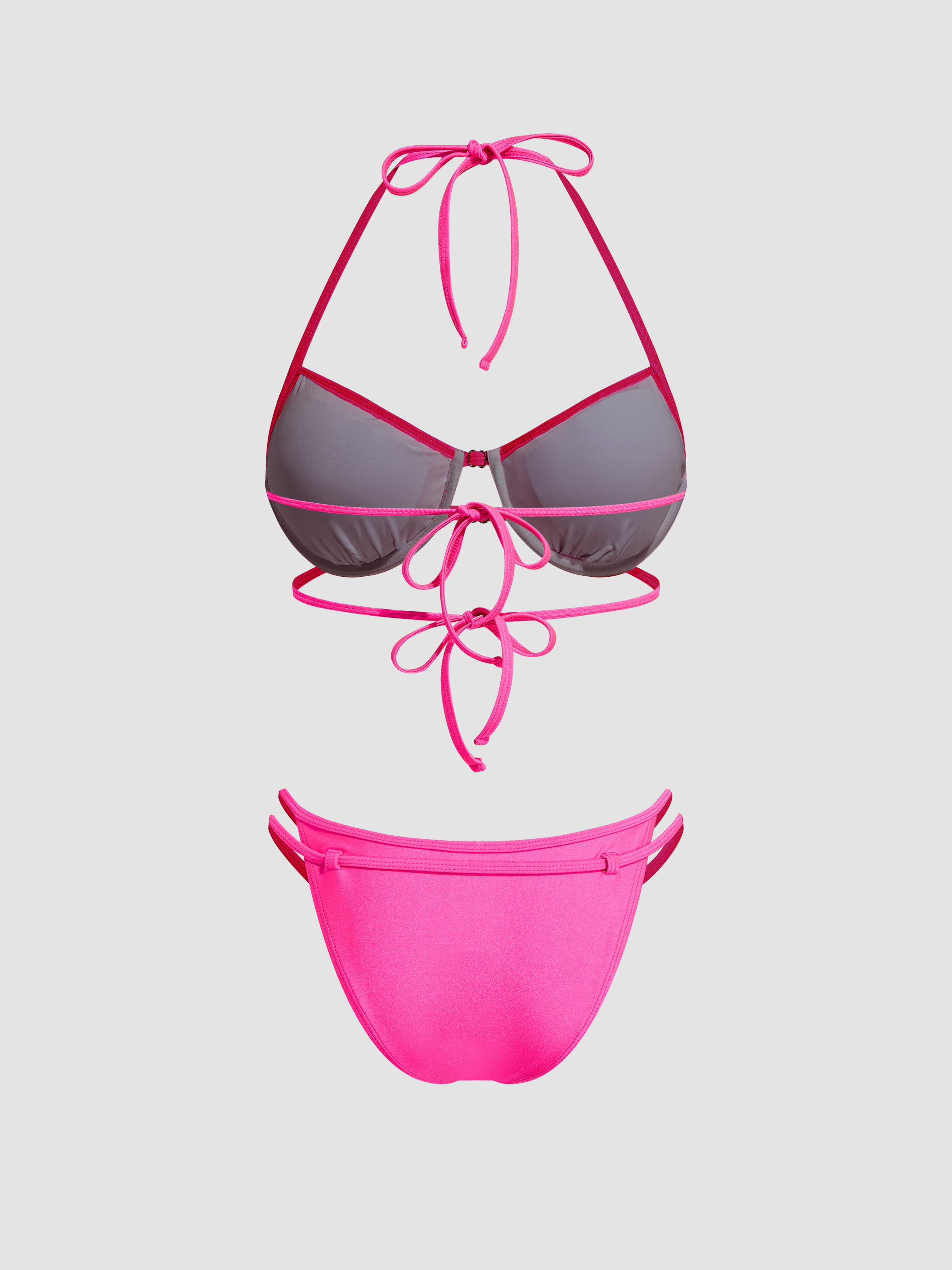 Halter Knotted Underwire Cheeky Bikini Swimsuit