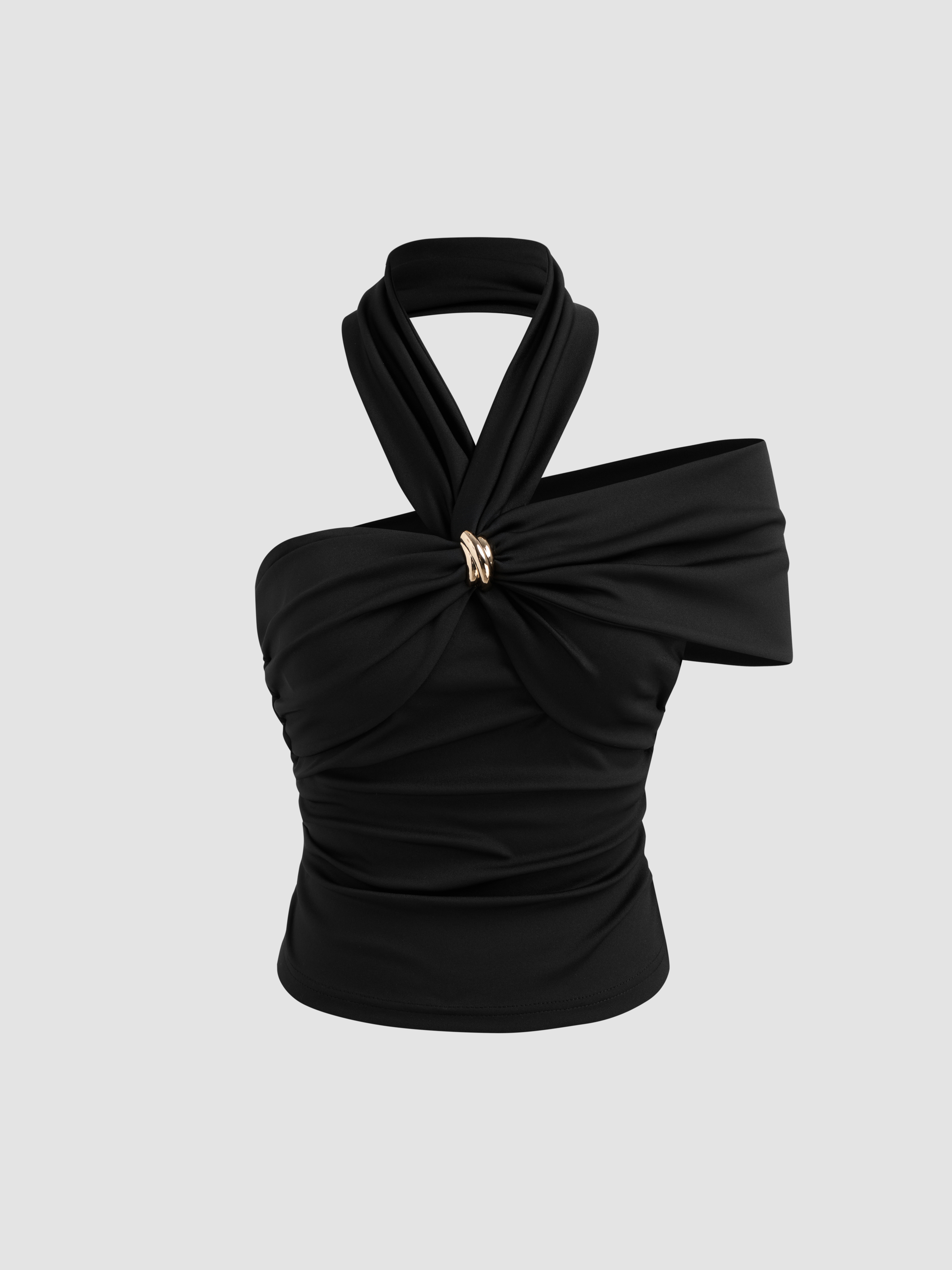 Halter Neckline Twist Ruched Short Sleeve Crop Top
