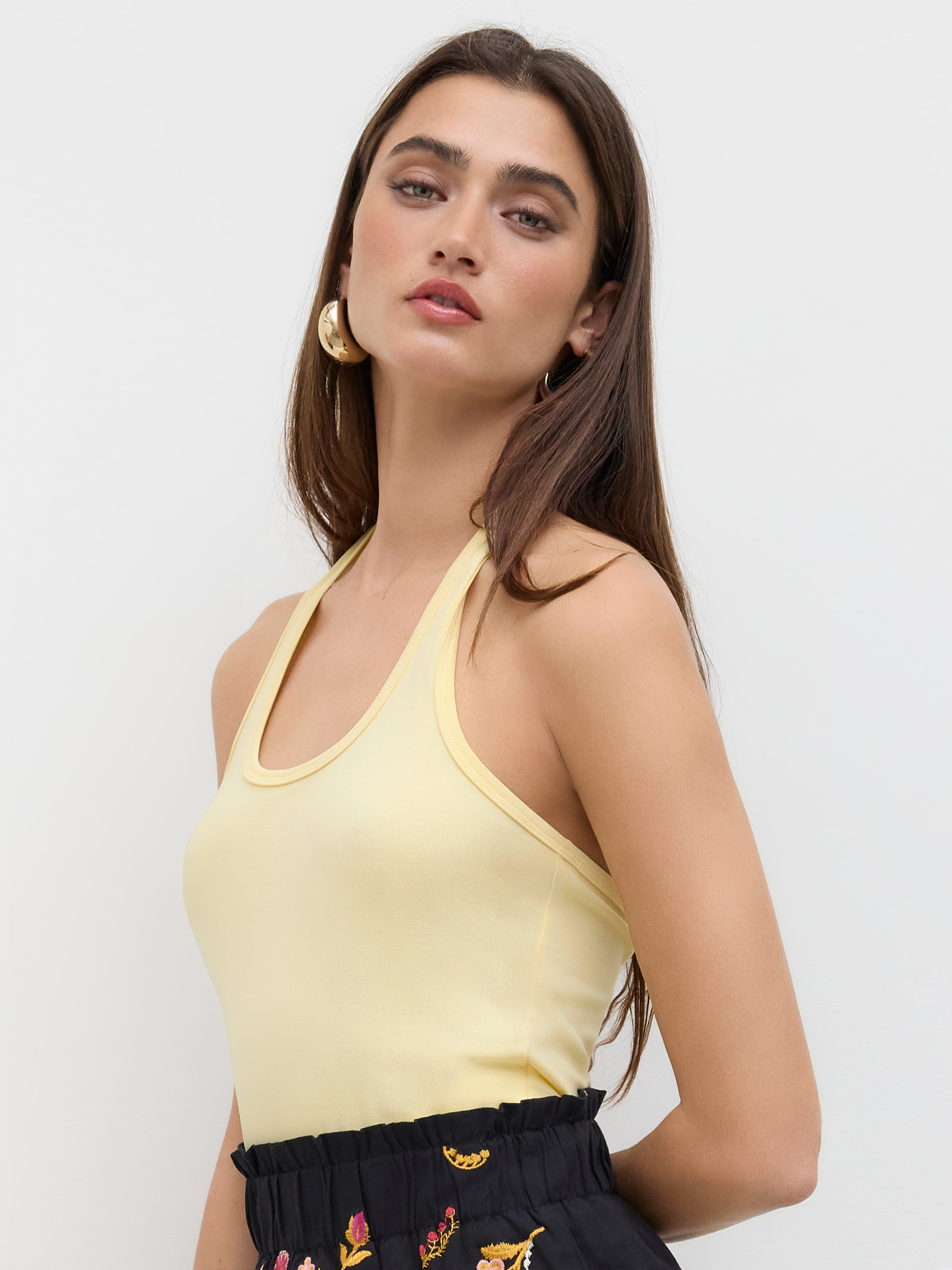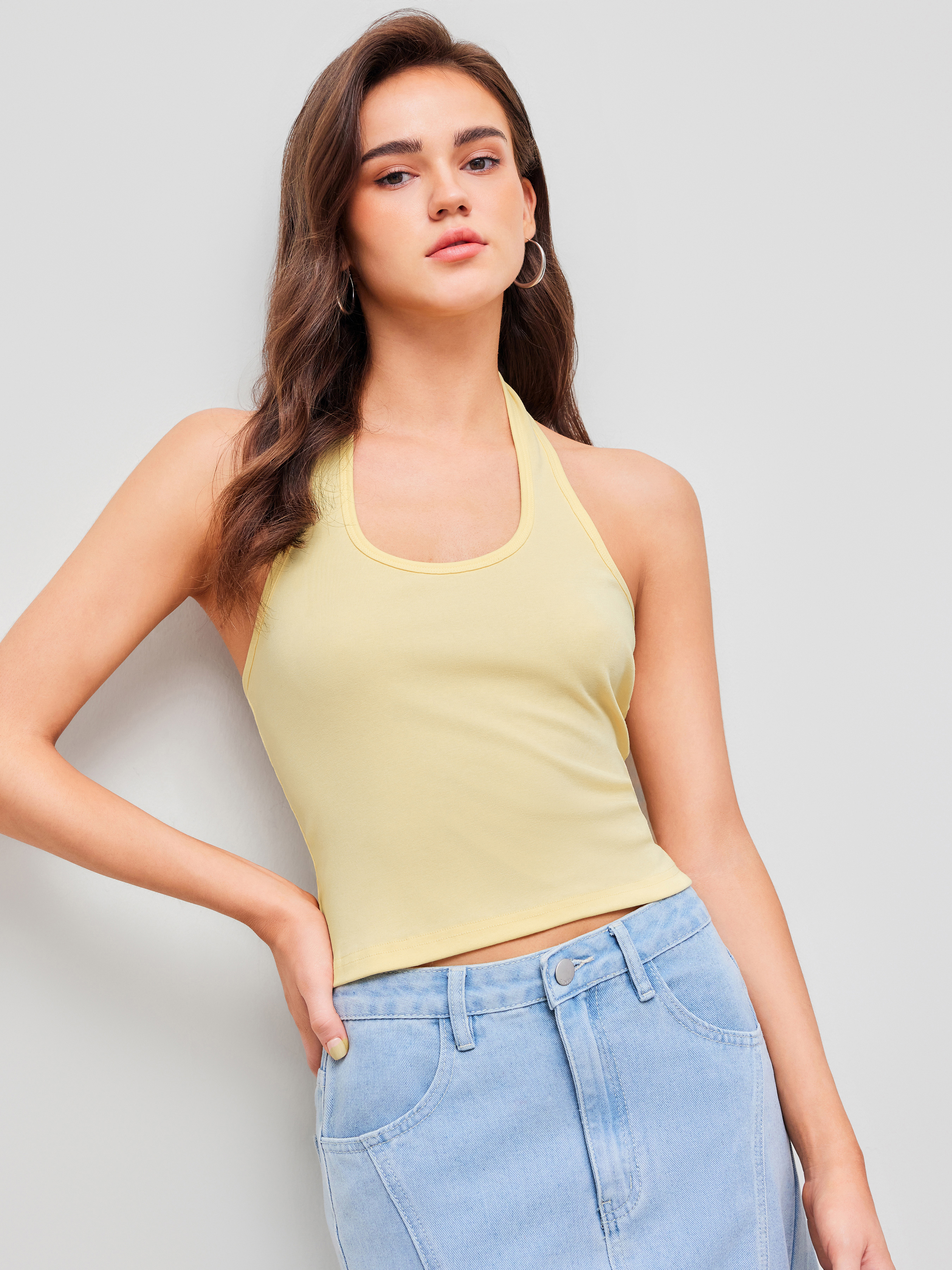 Cotton-blend Halter Neckline Solid Top