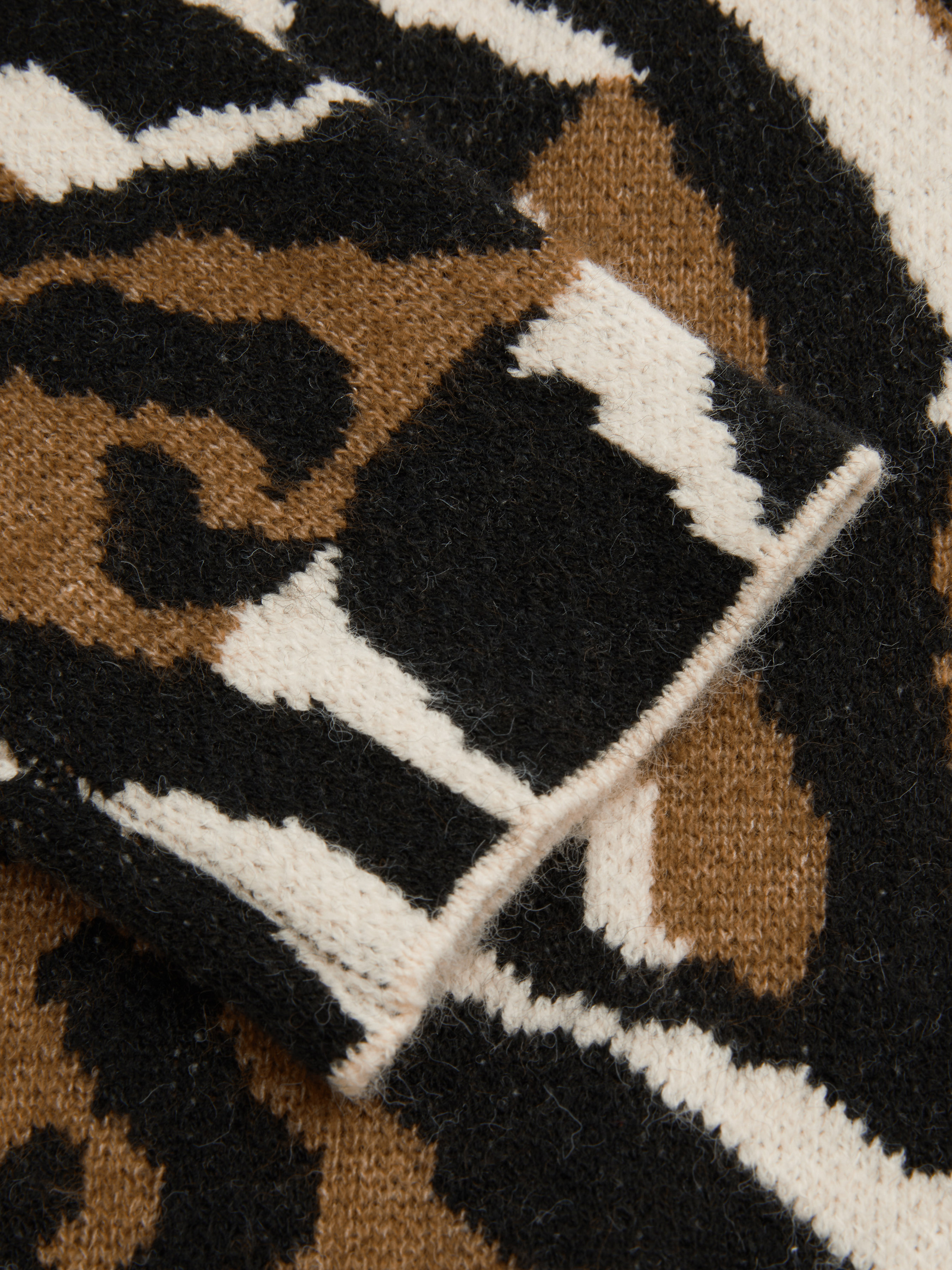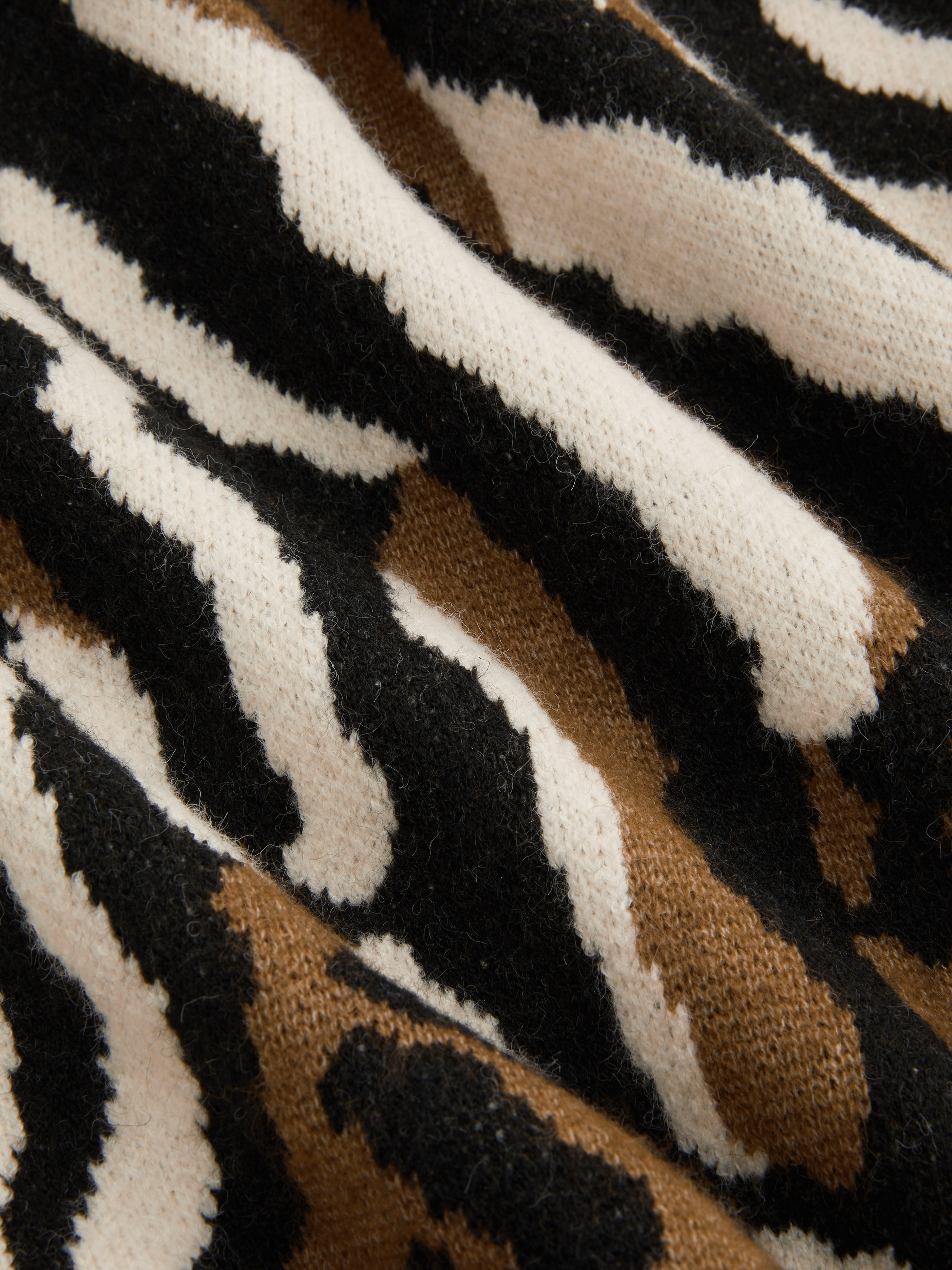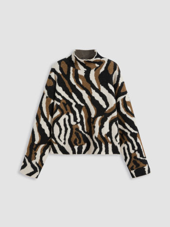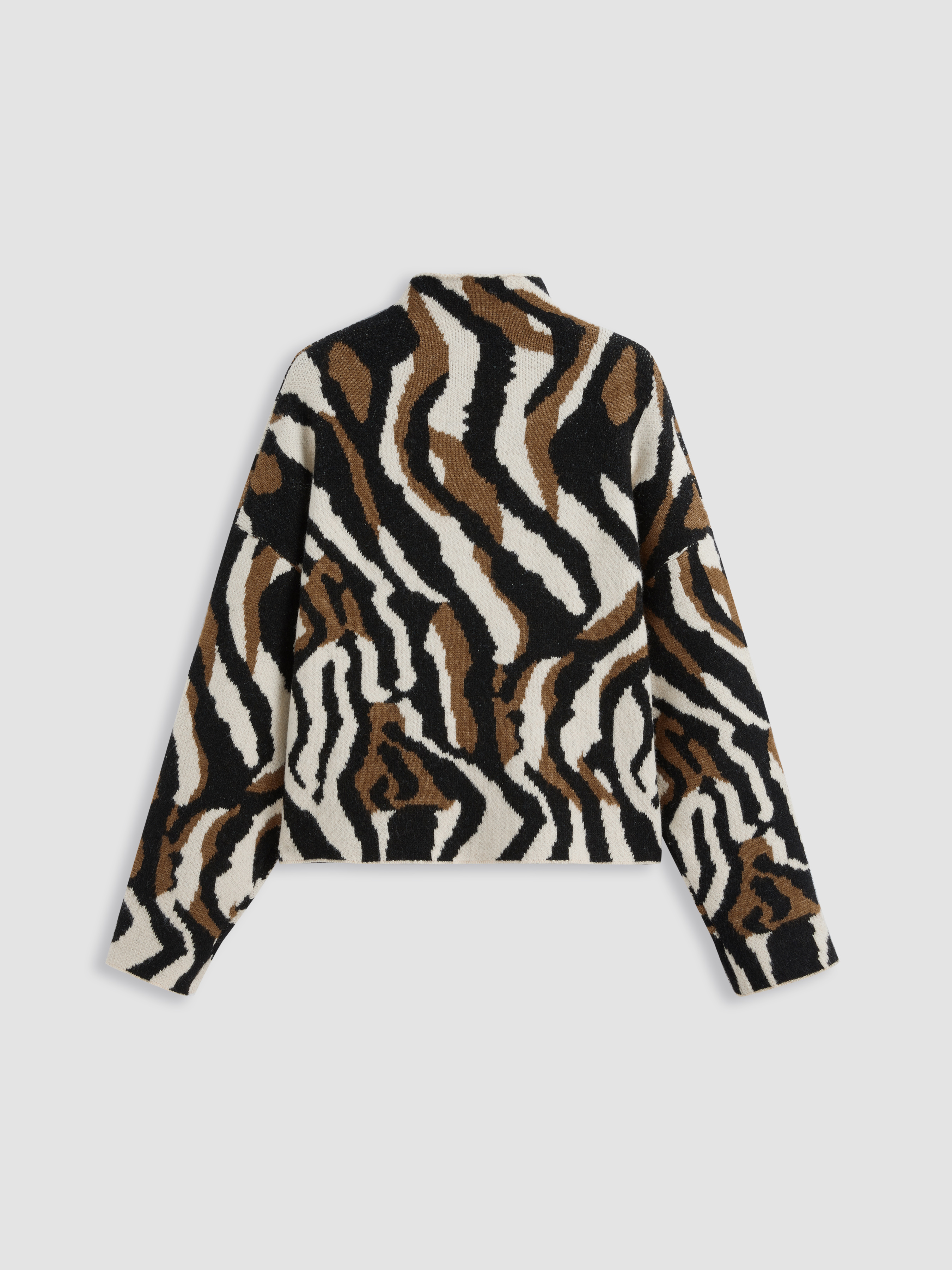 Knit Stand Collar Zebra Stripe Print Oversized Top