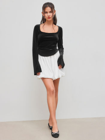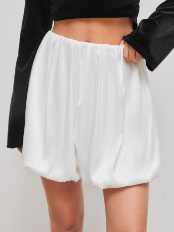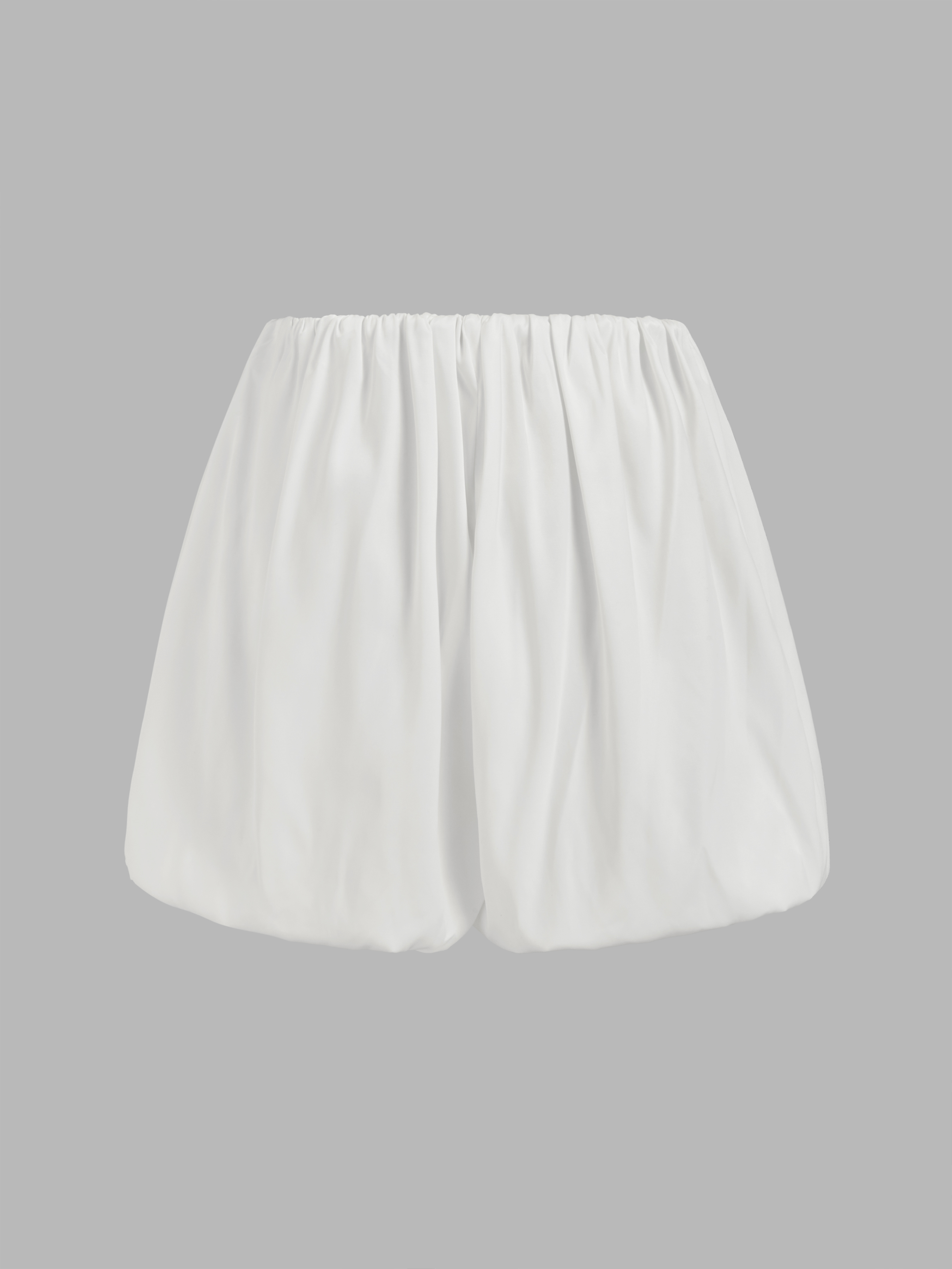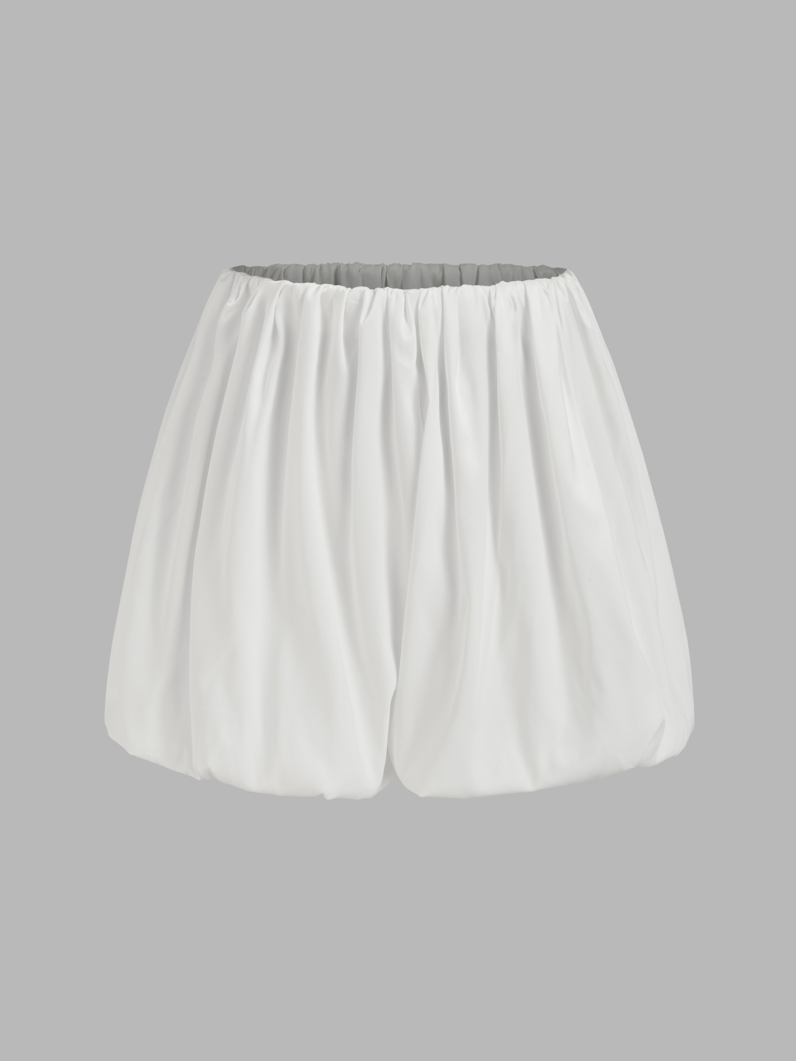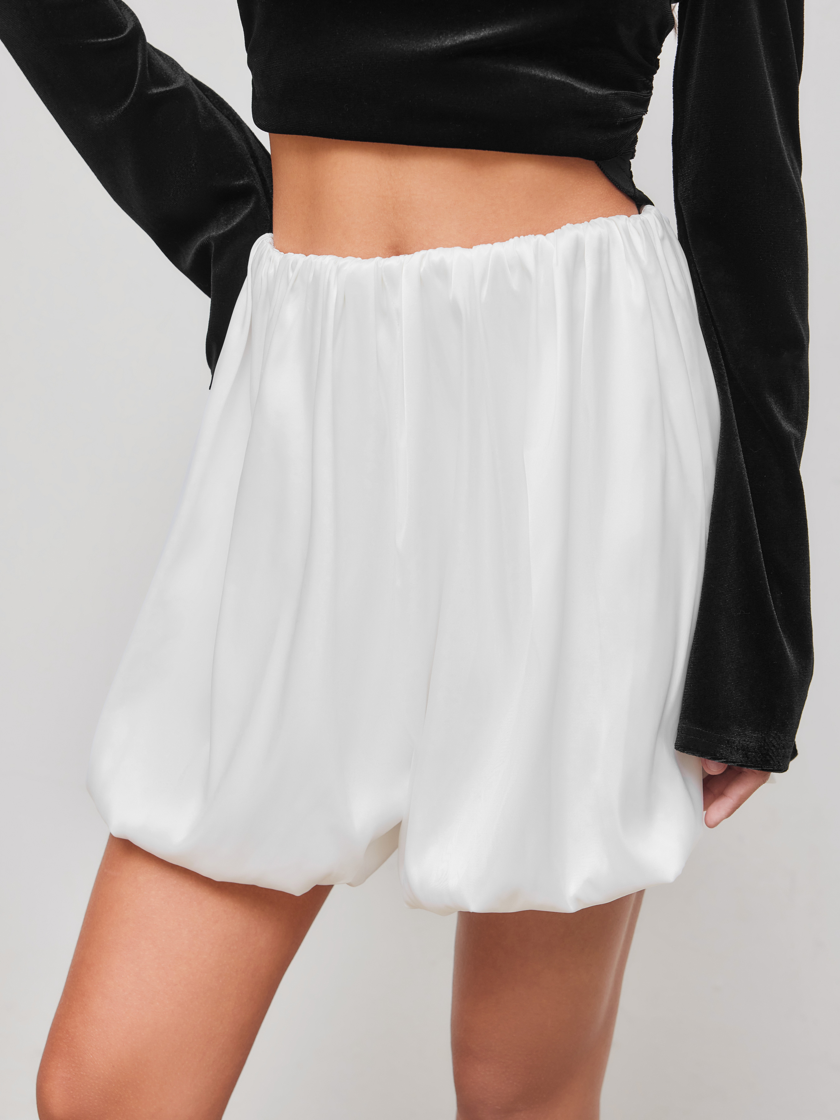 Satin Mid Rise Solid Elastic Waist Bubble Hem Mini Skirt