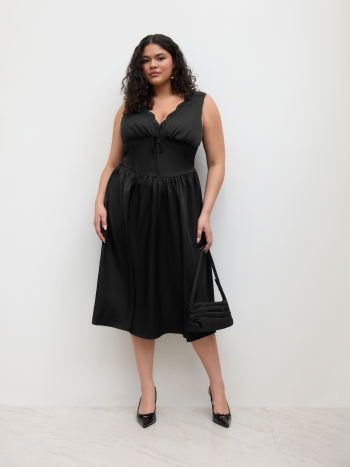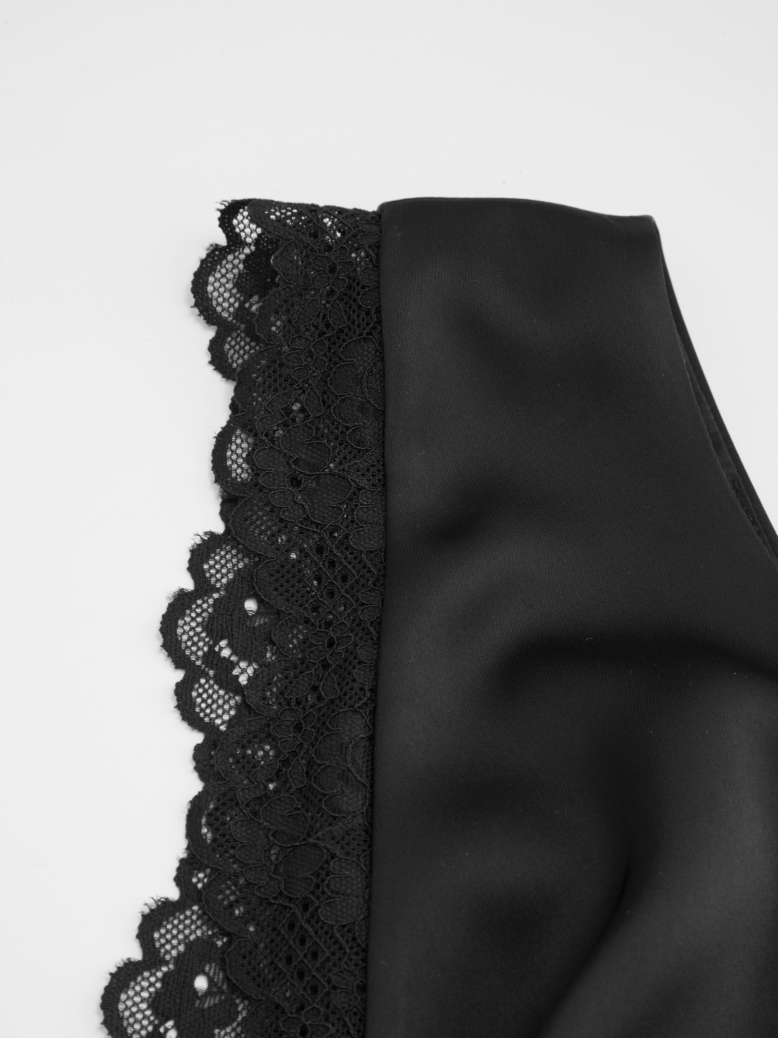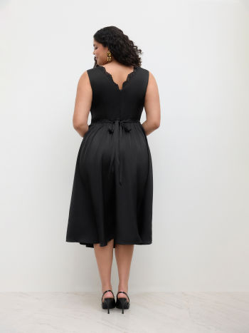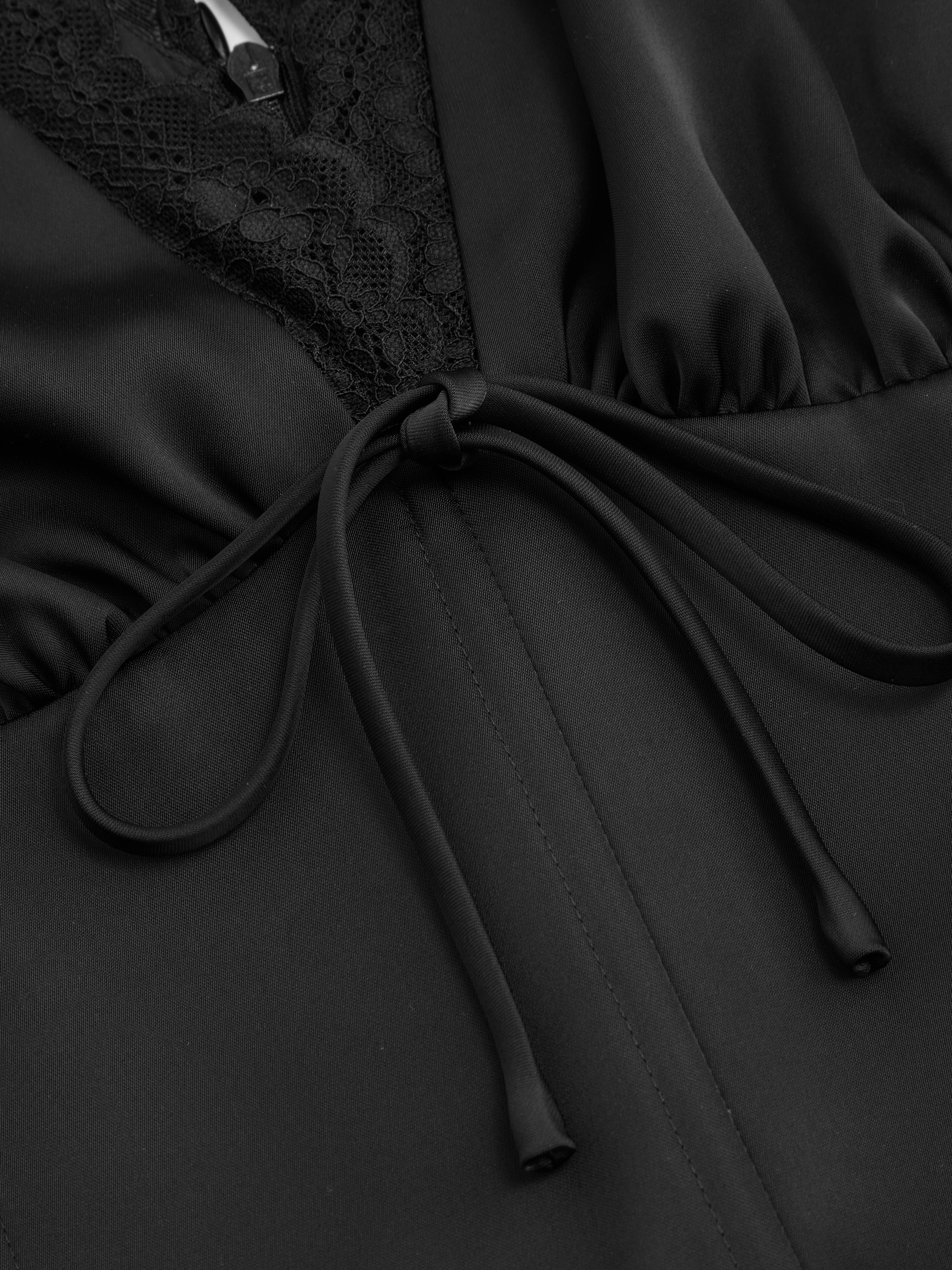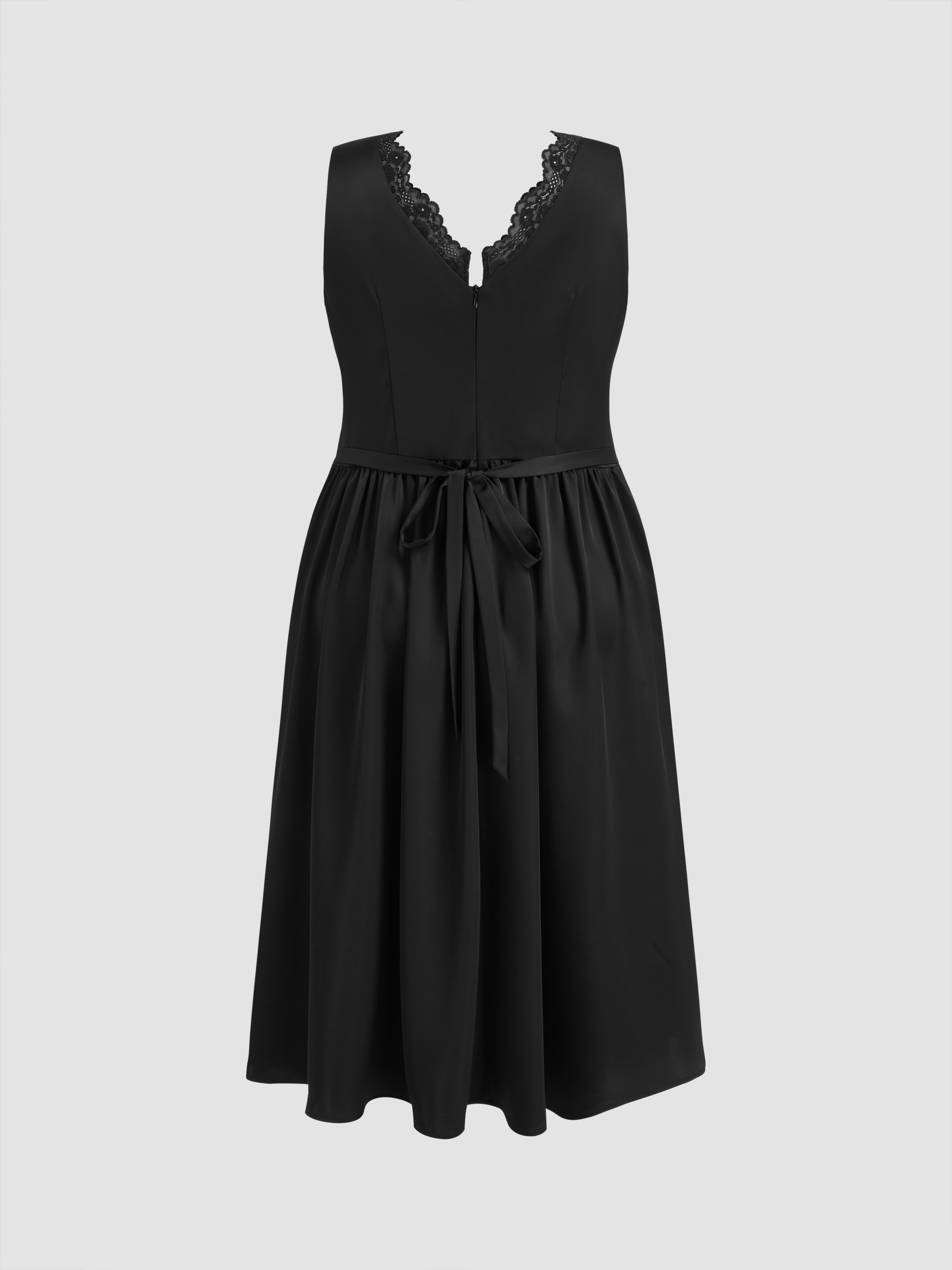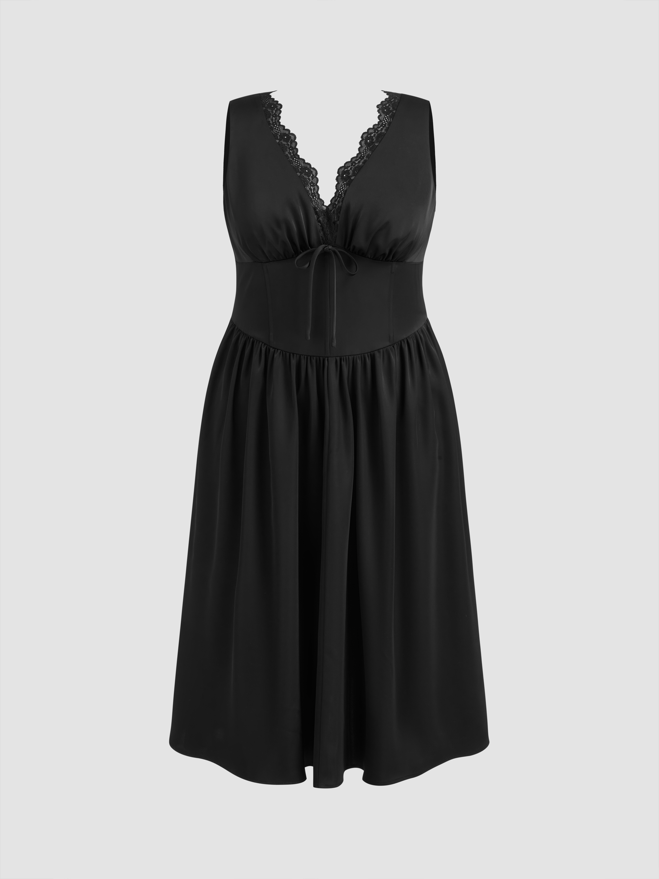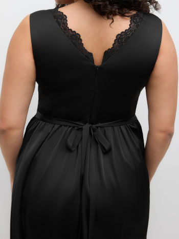 Satin V-neck Lace Trim Knotted Maxi Dress Curve & Plus