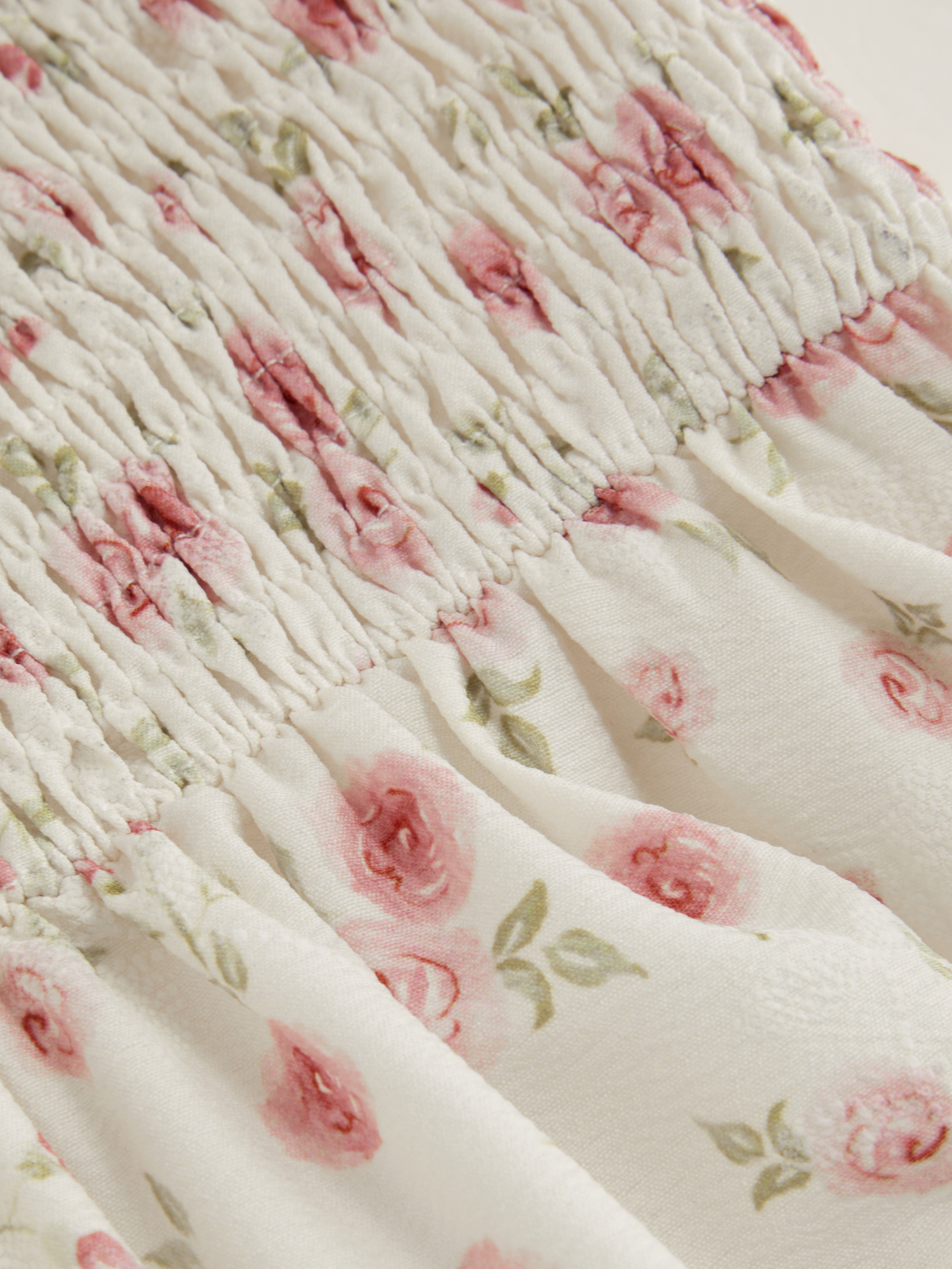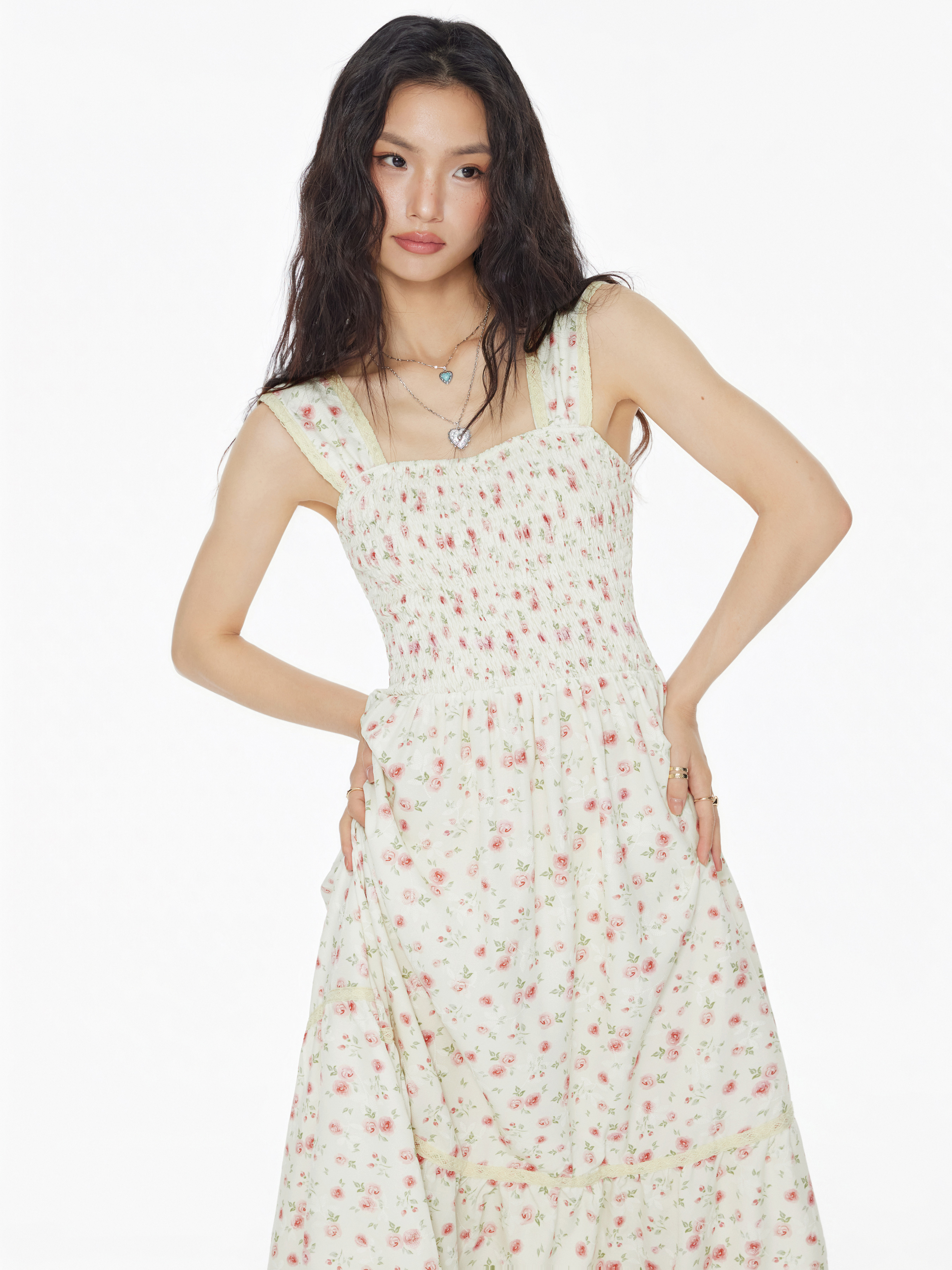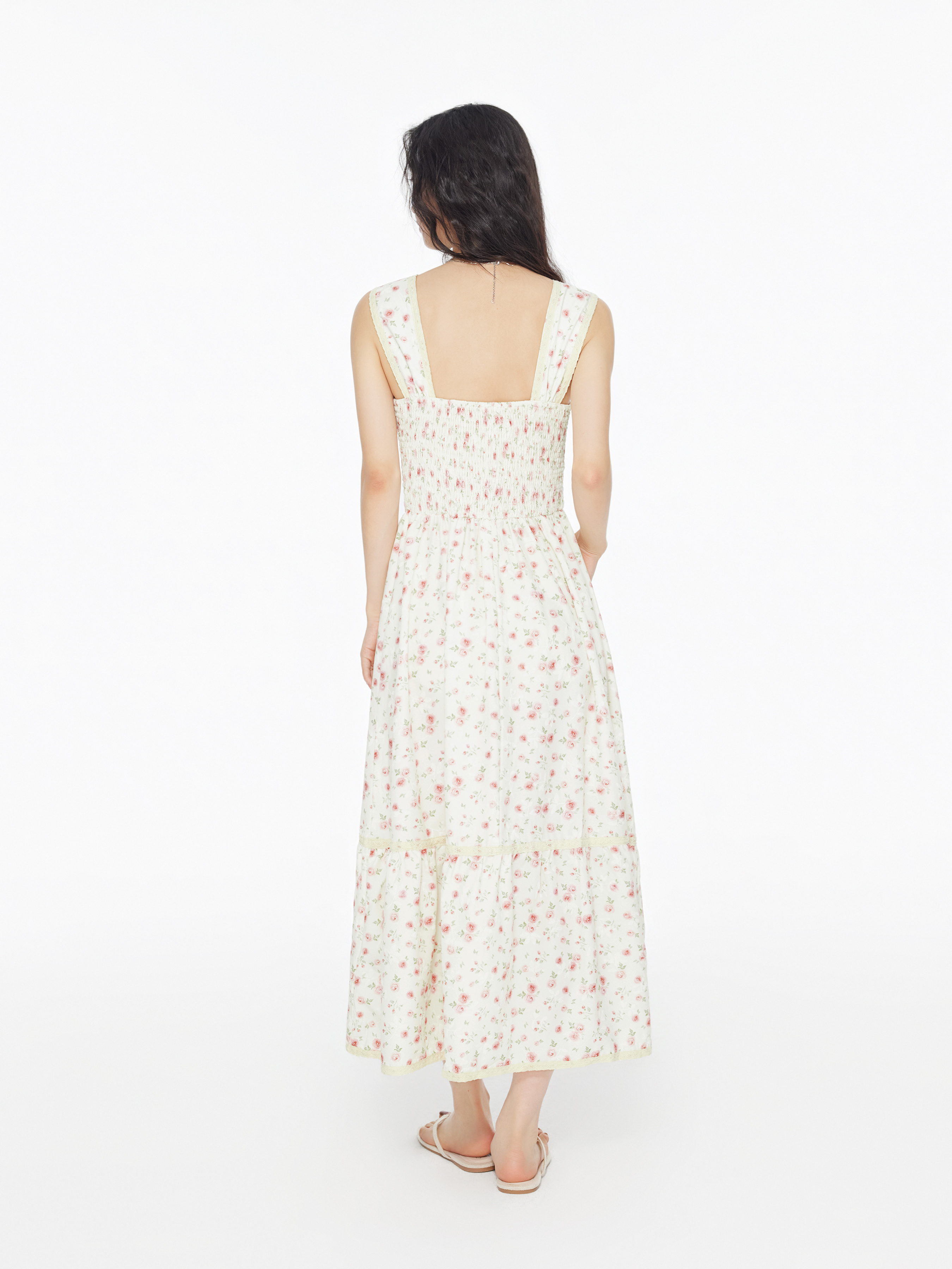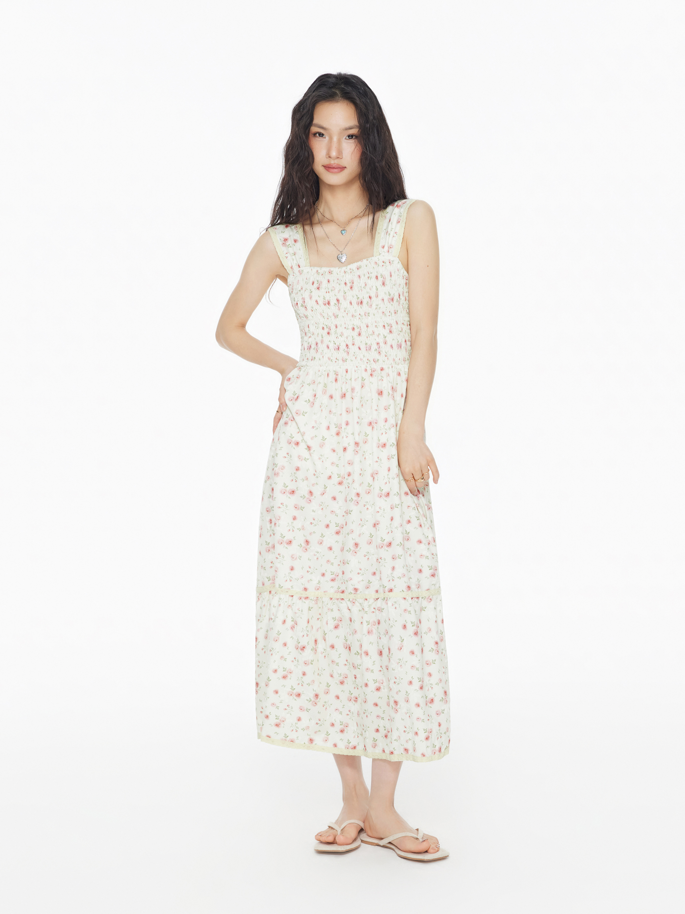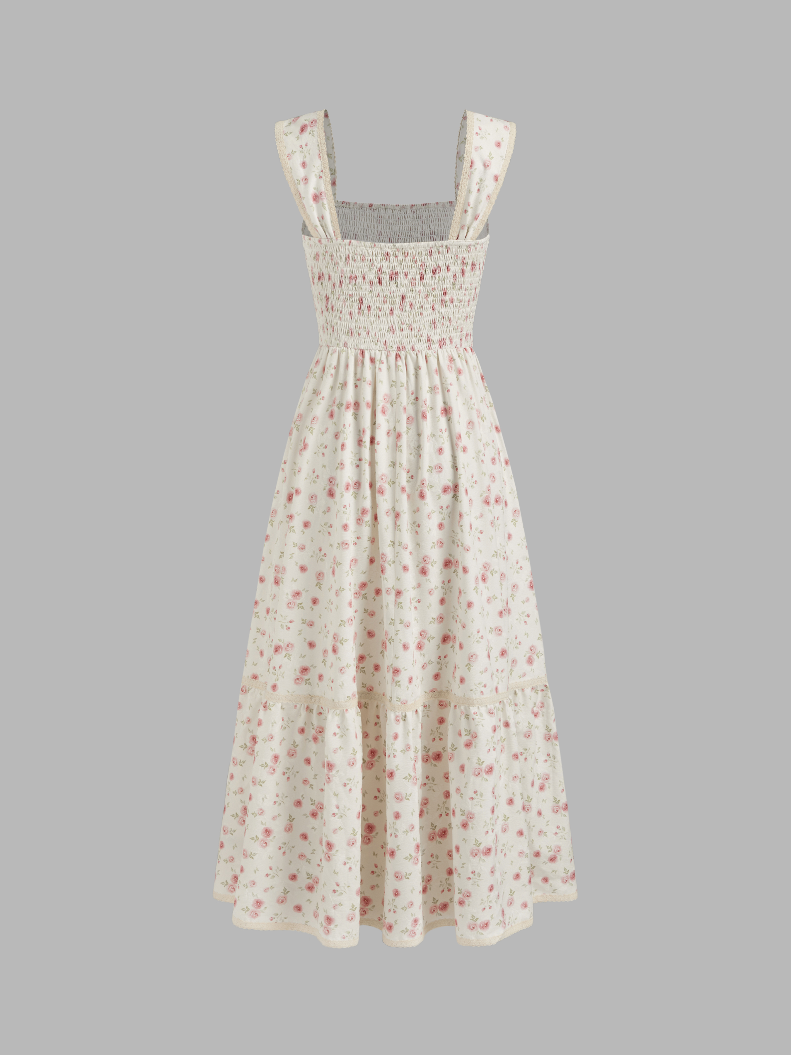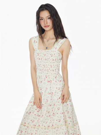Square Neck Ditsy Floral Shirred Midi Dress