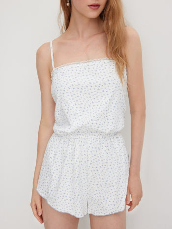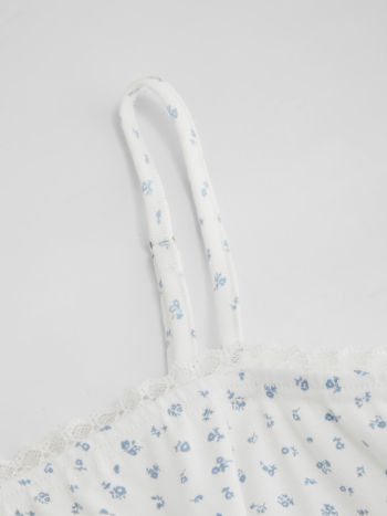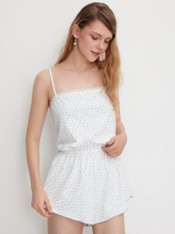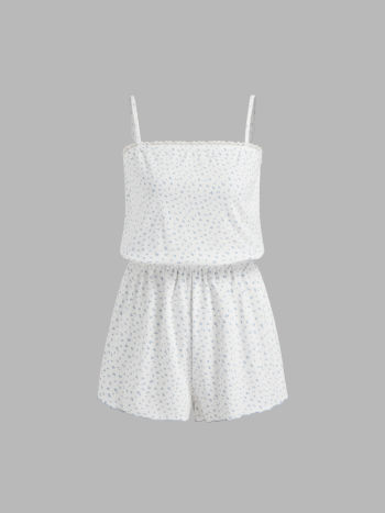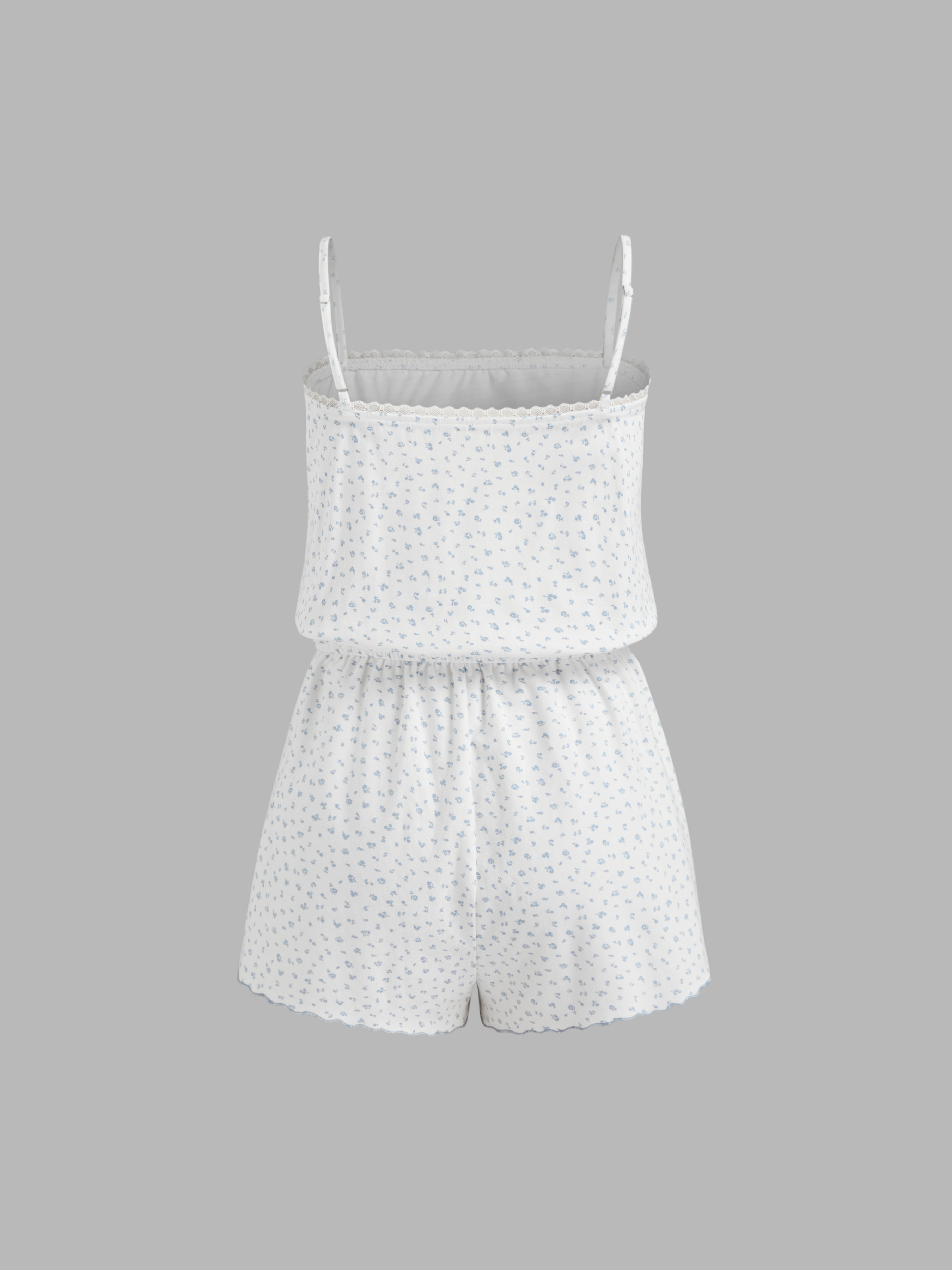 Square Neck Ditsy Floral Lace Trim Cami Loungewear Romper