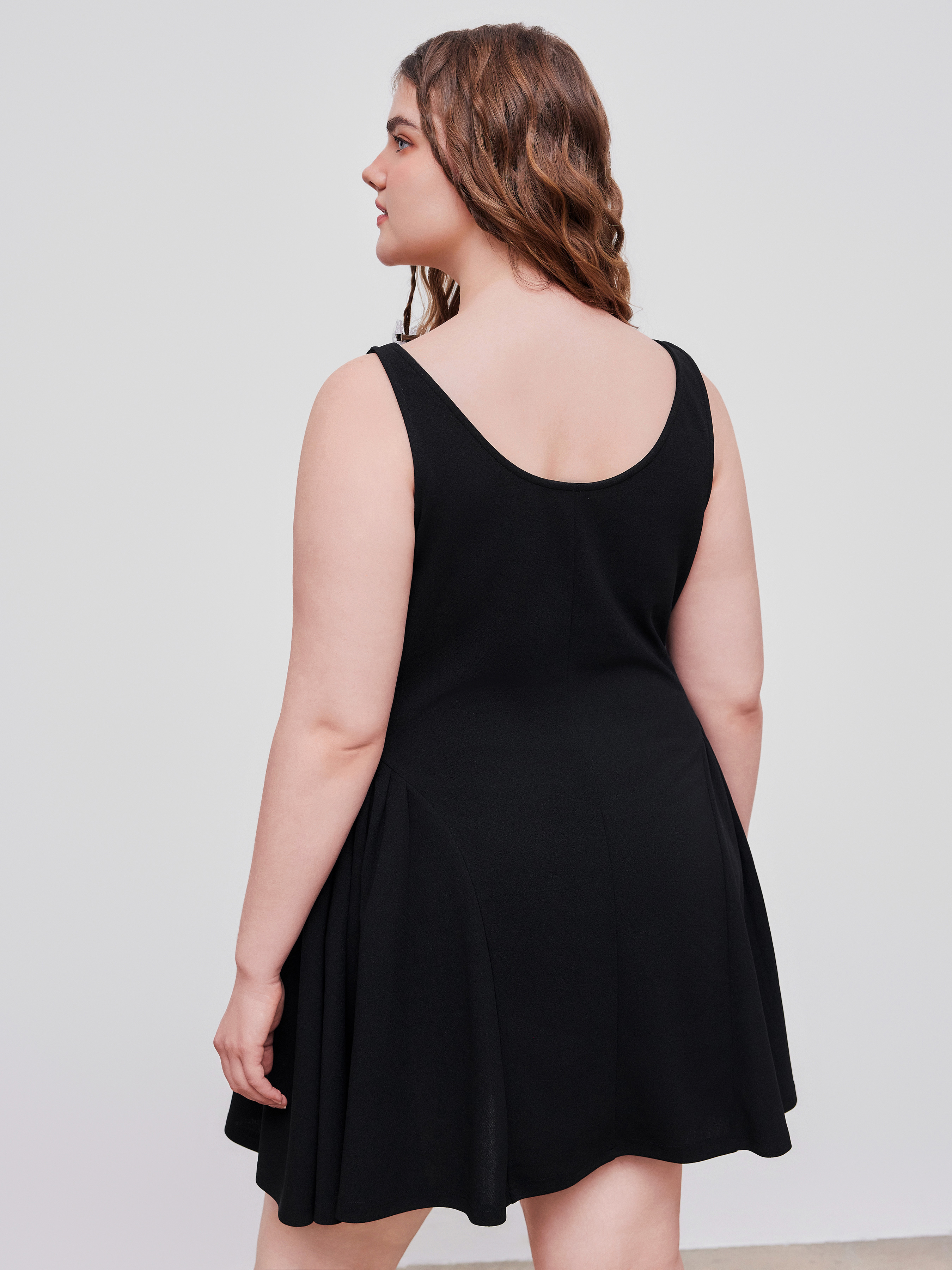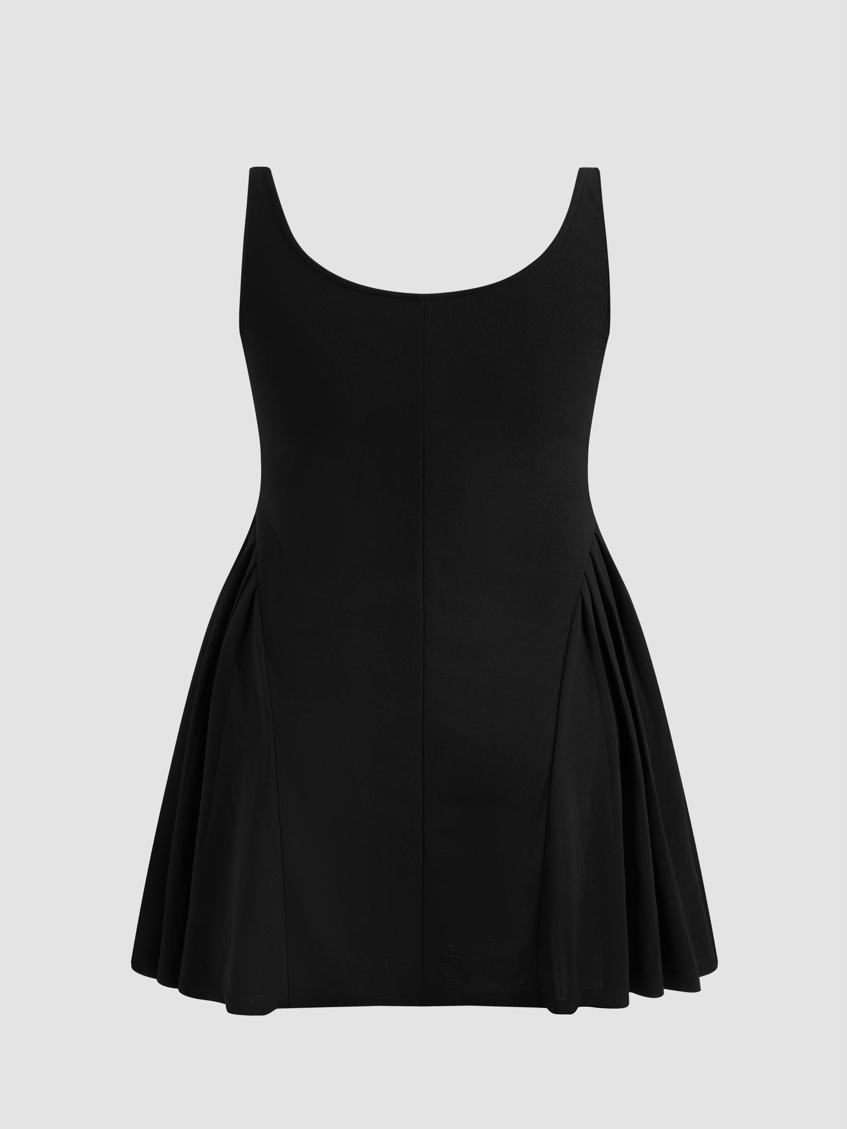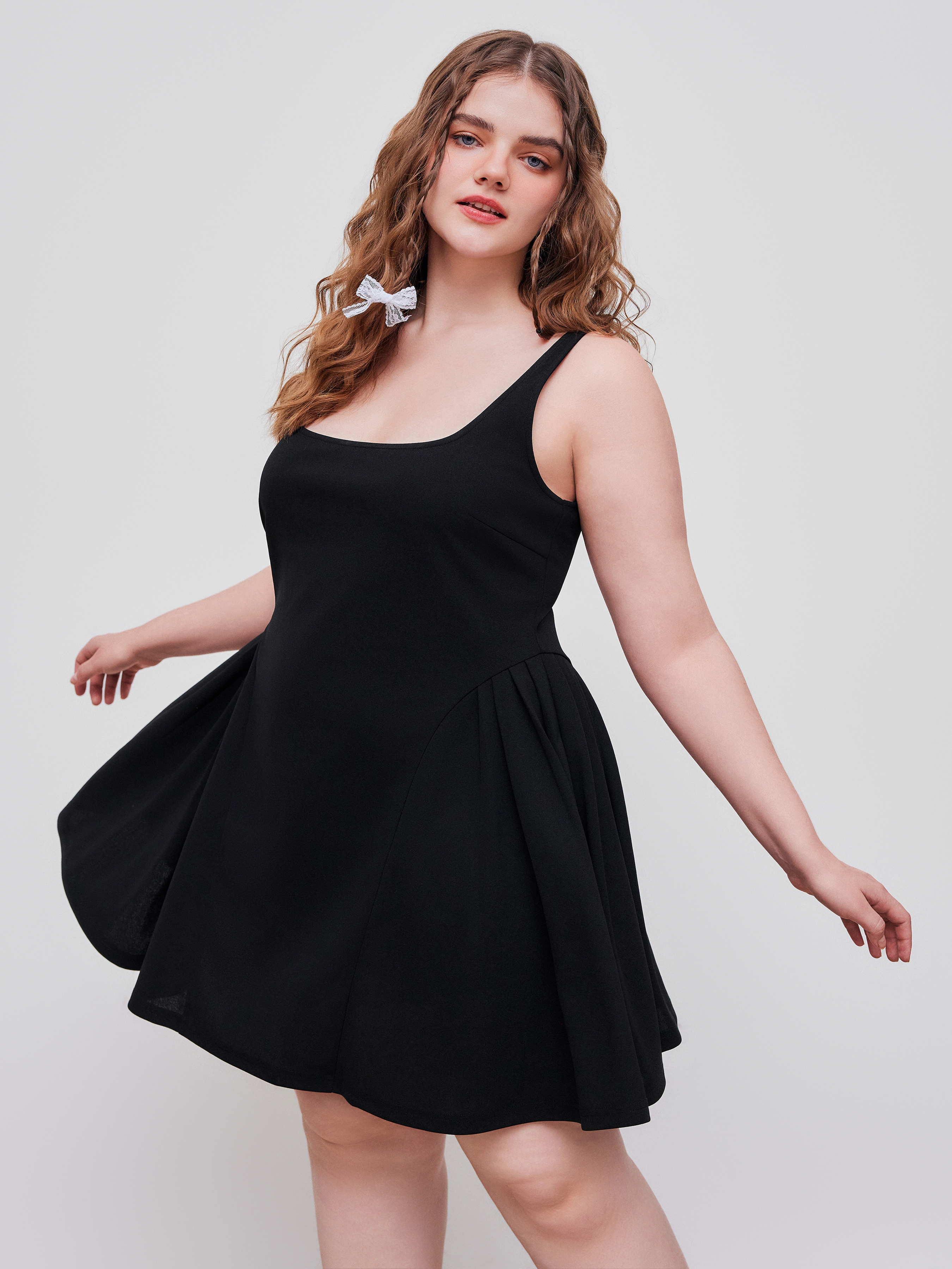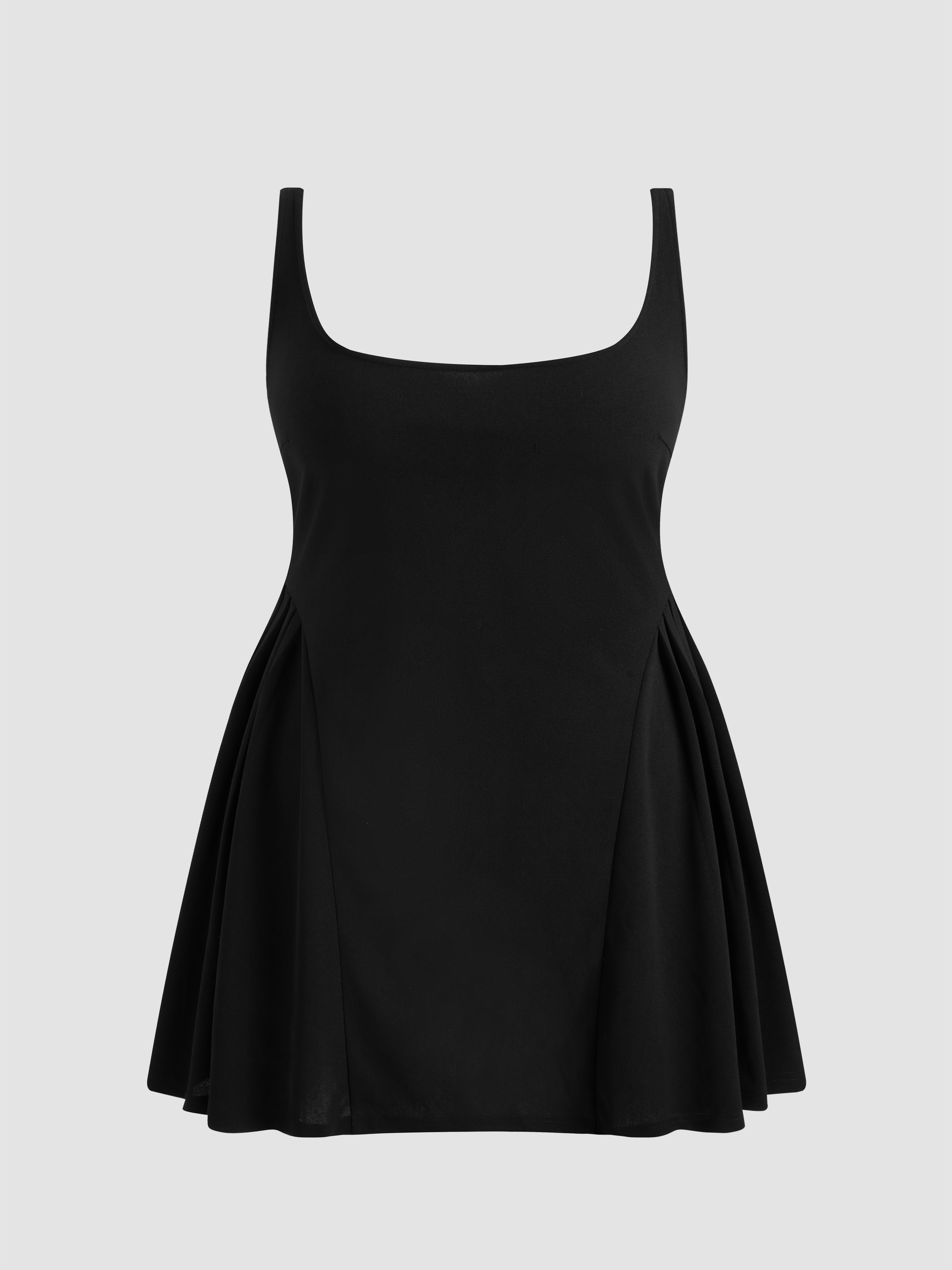 Square Neck Solid Pleated Cami Mini Dress Curve & Plus