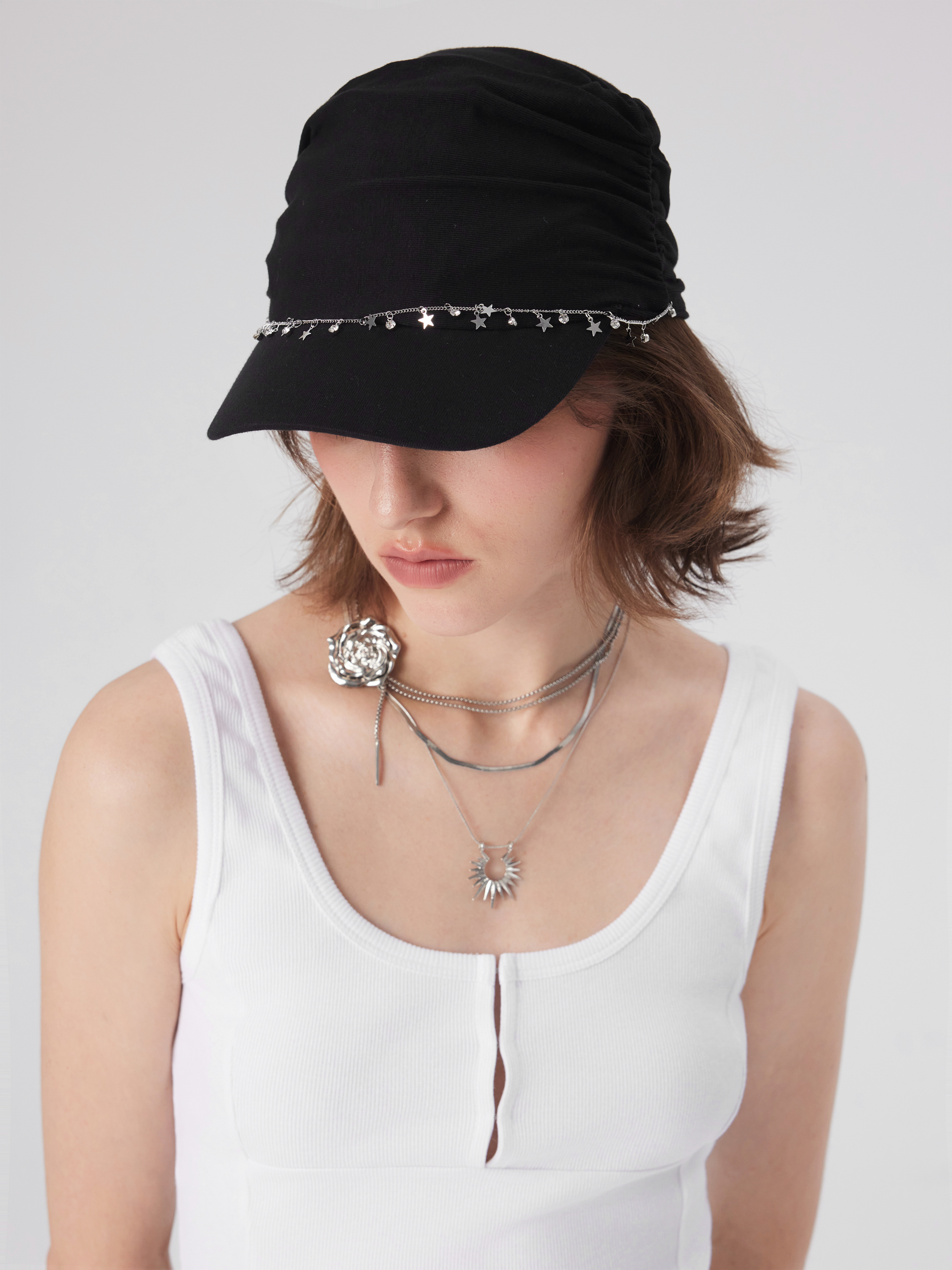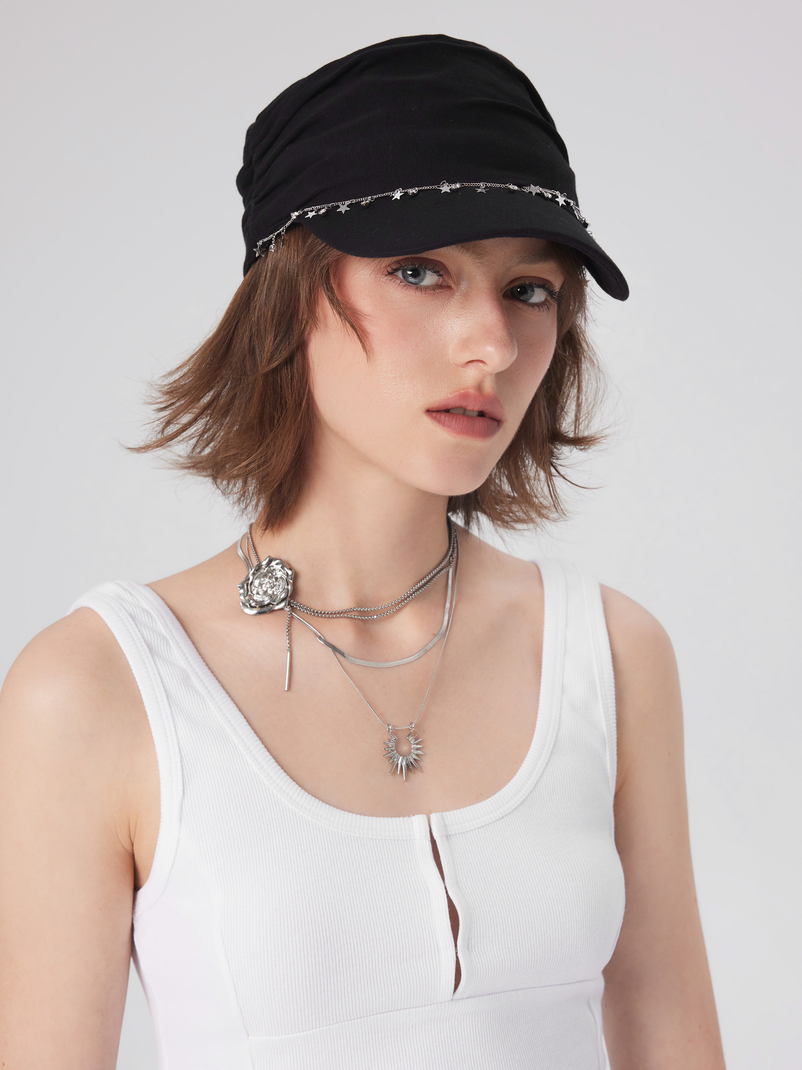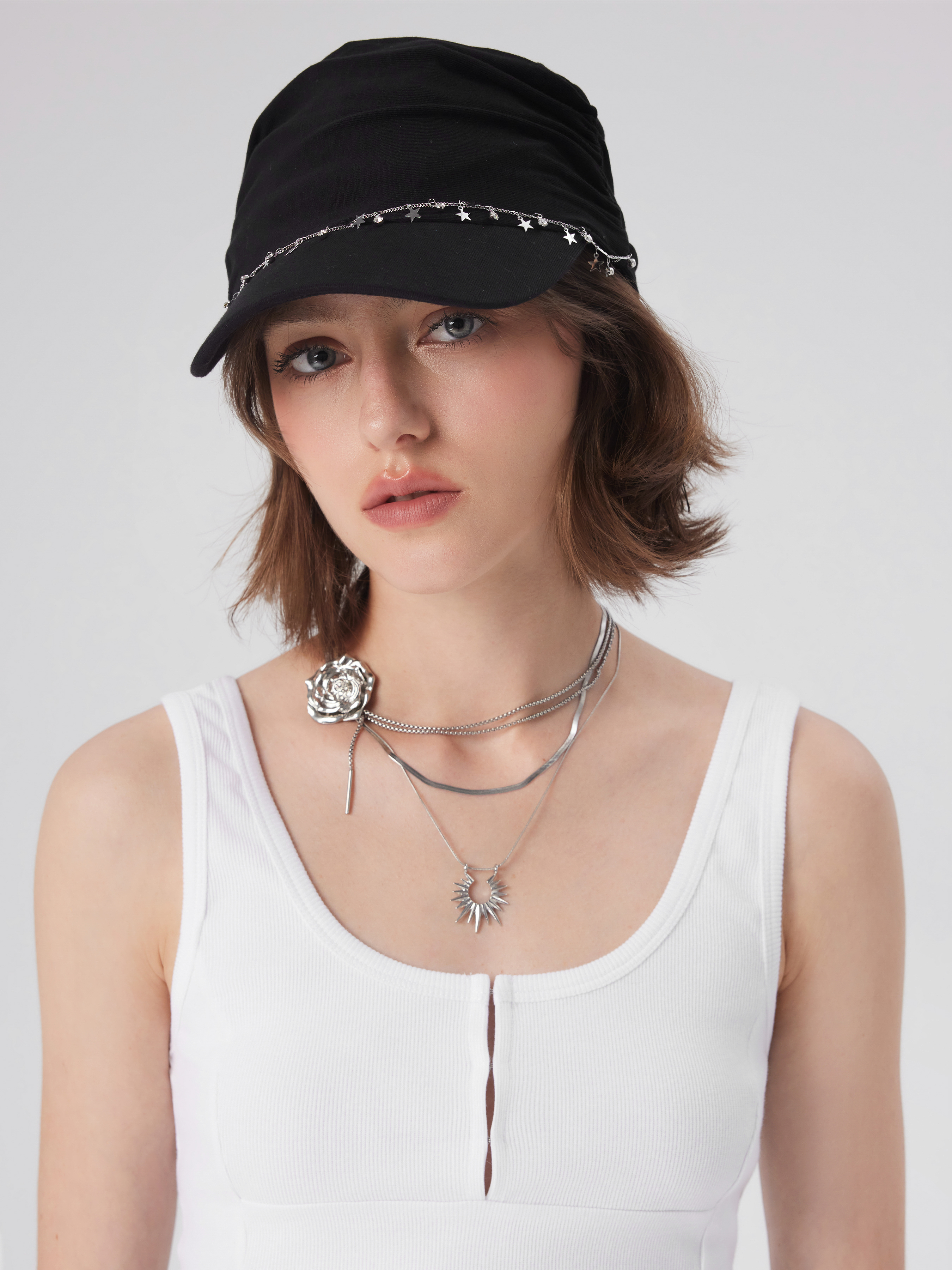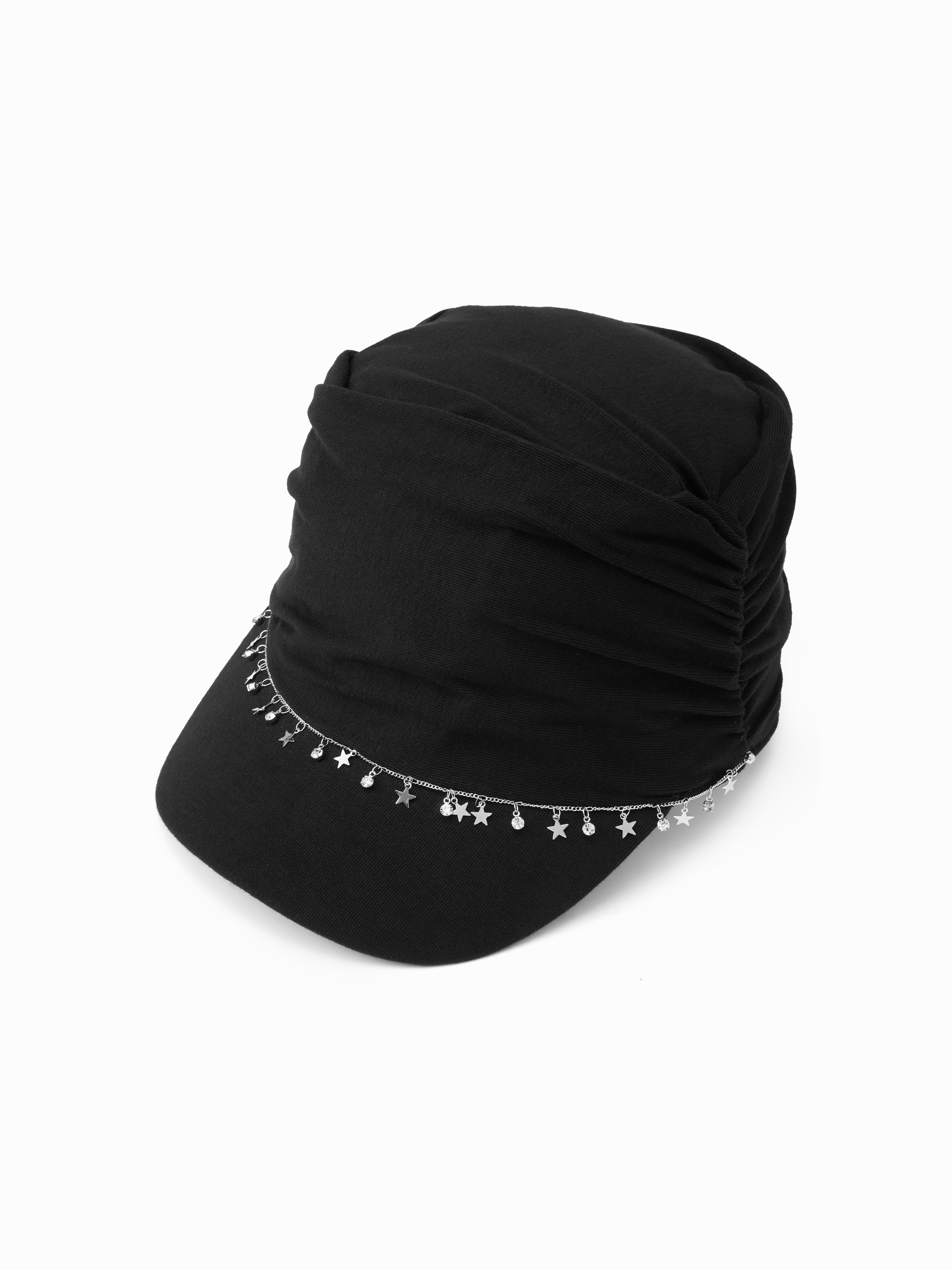 STAR & RHINESTONE CHAIN DECOR BERET HAT
