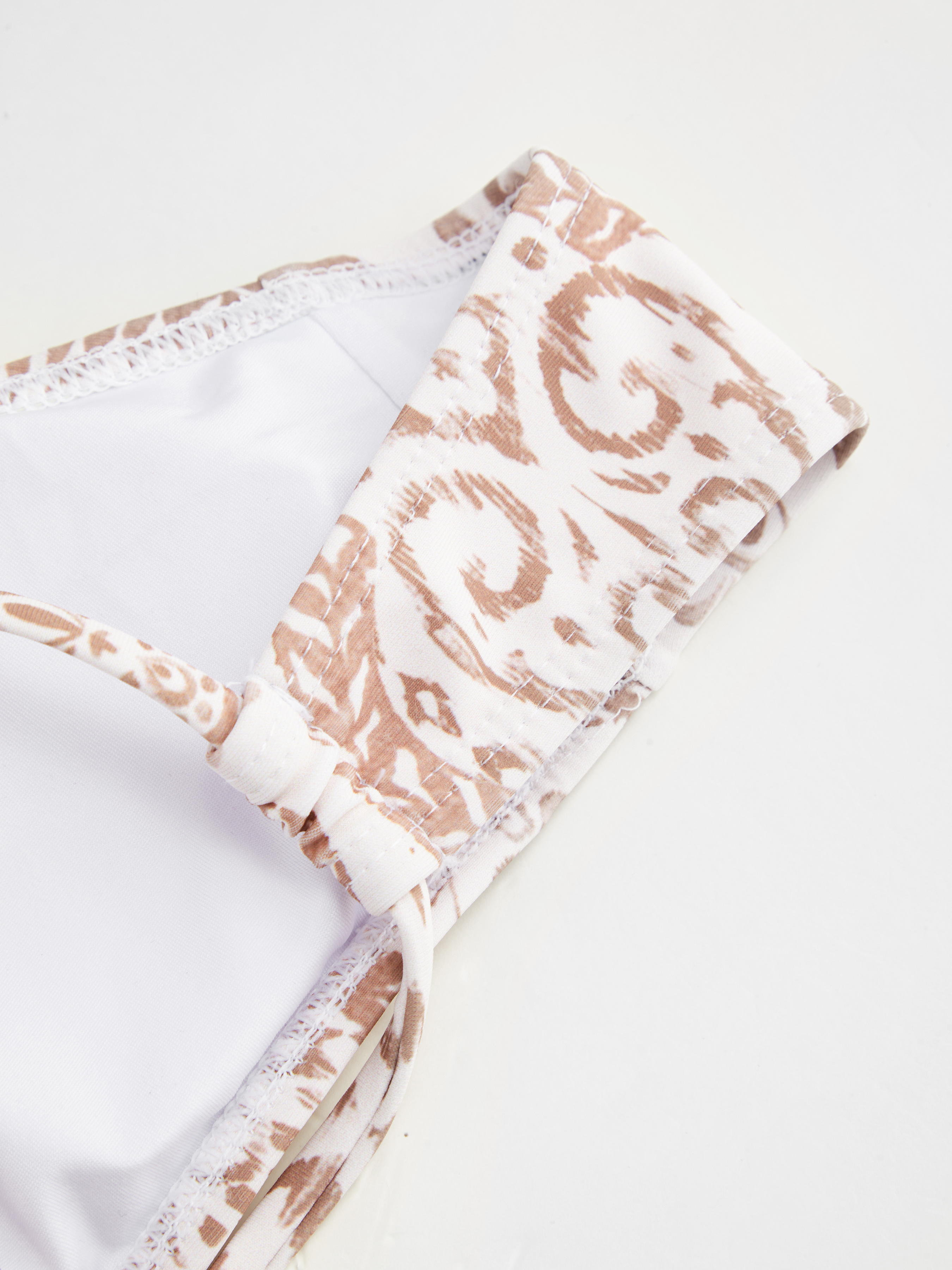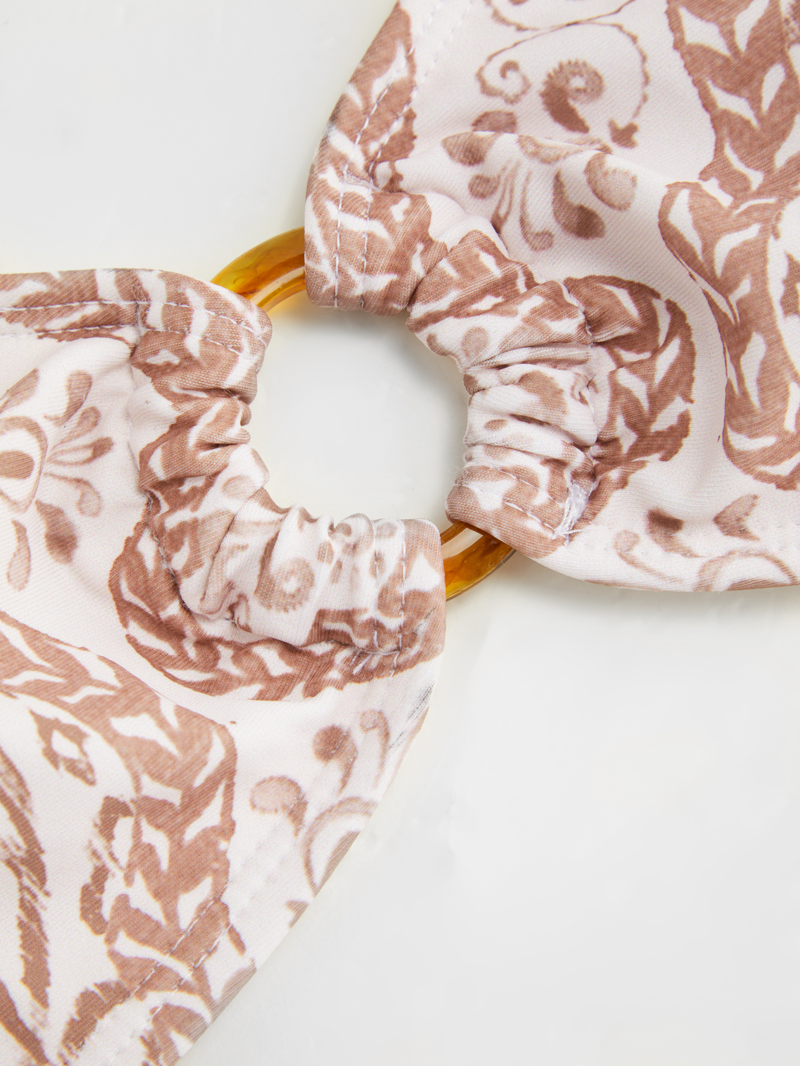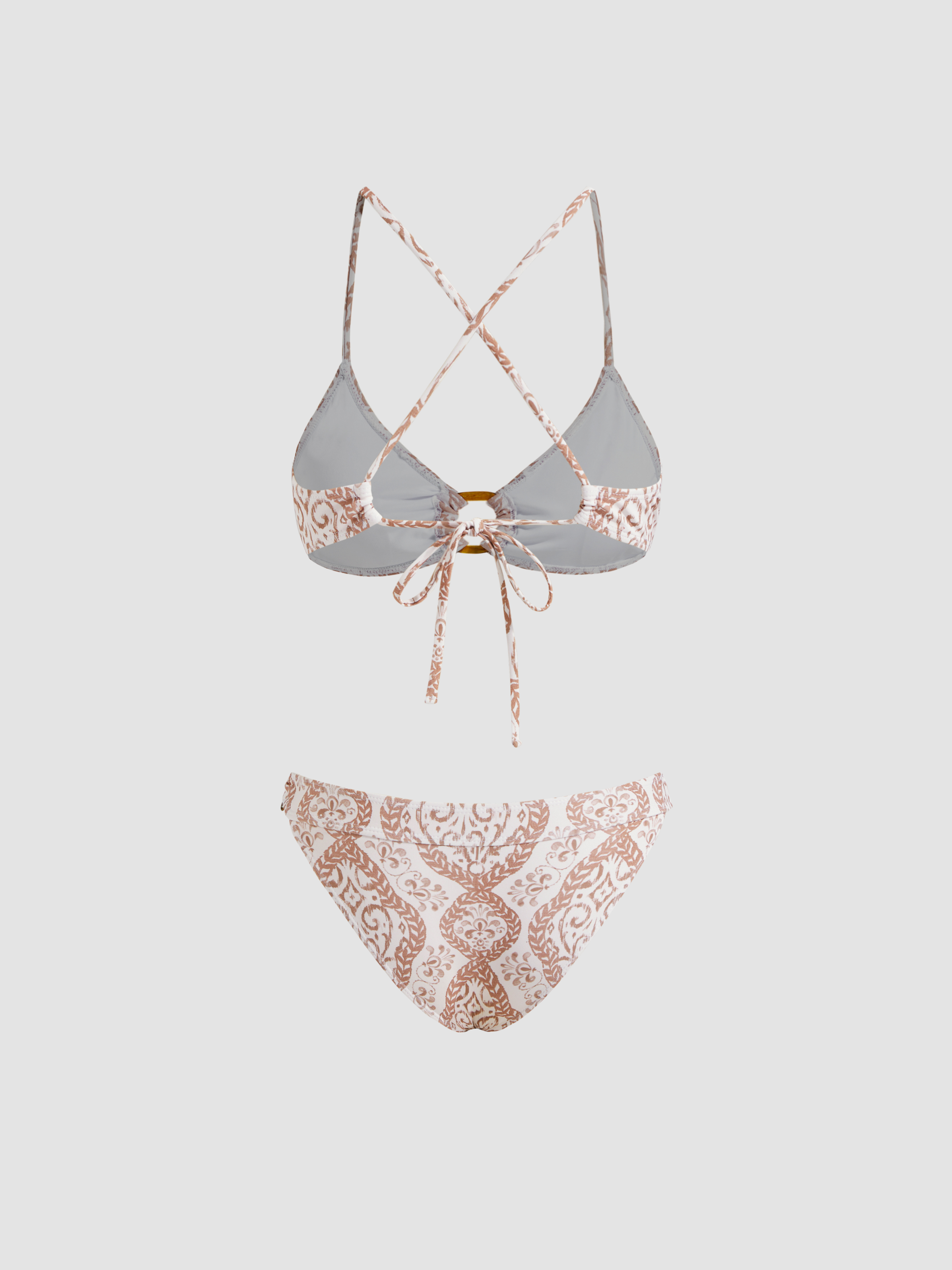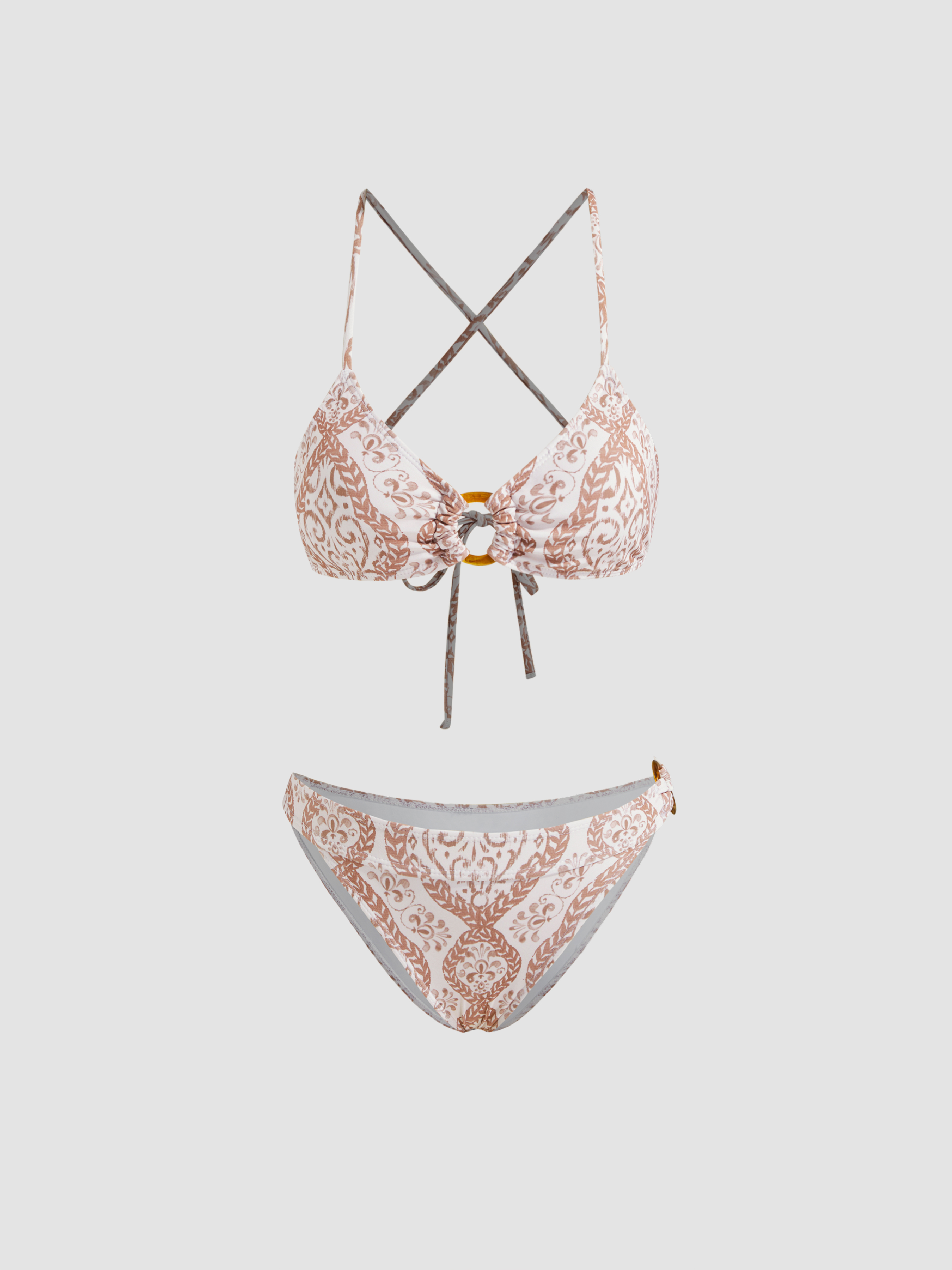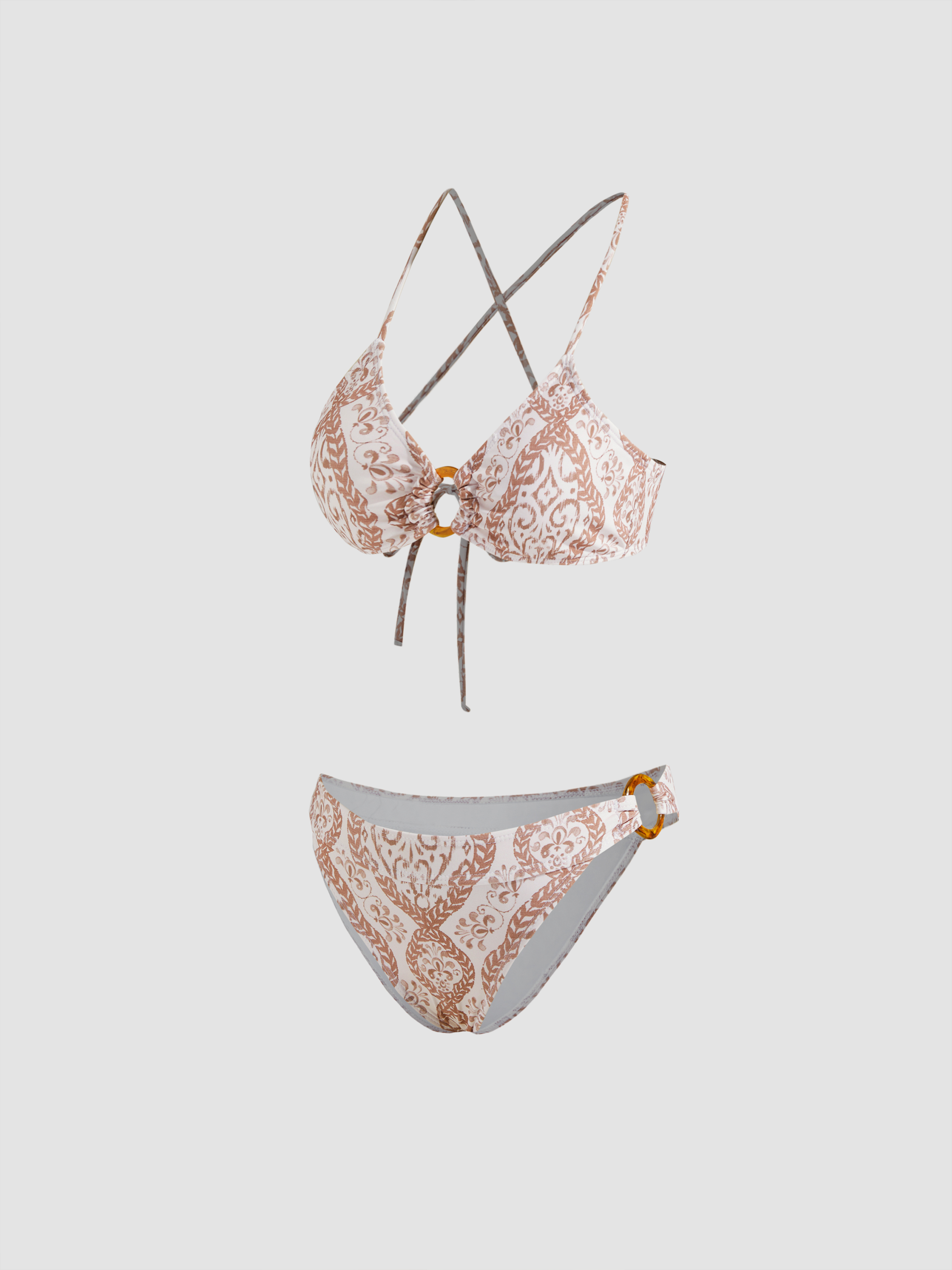 U-neckline Abstract Criss Cross O-ring Bracelet Bikini Set