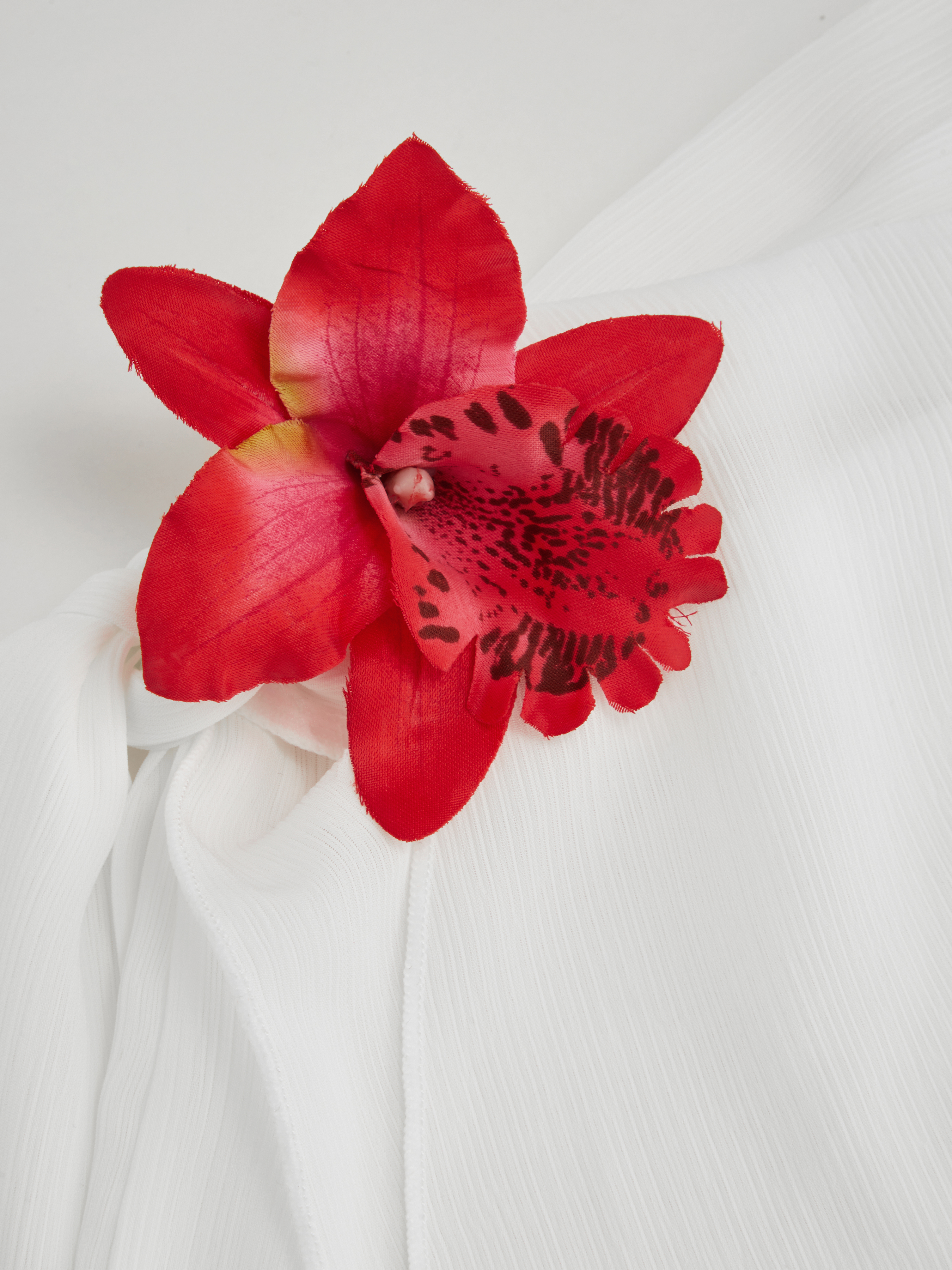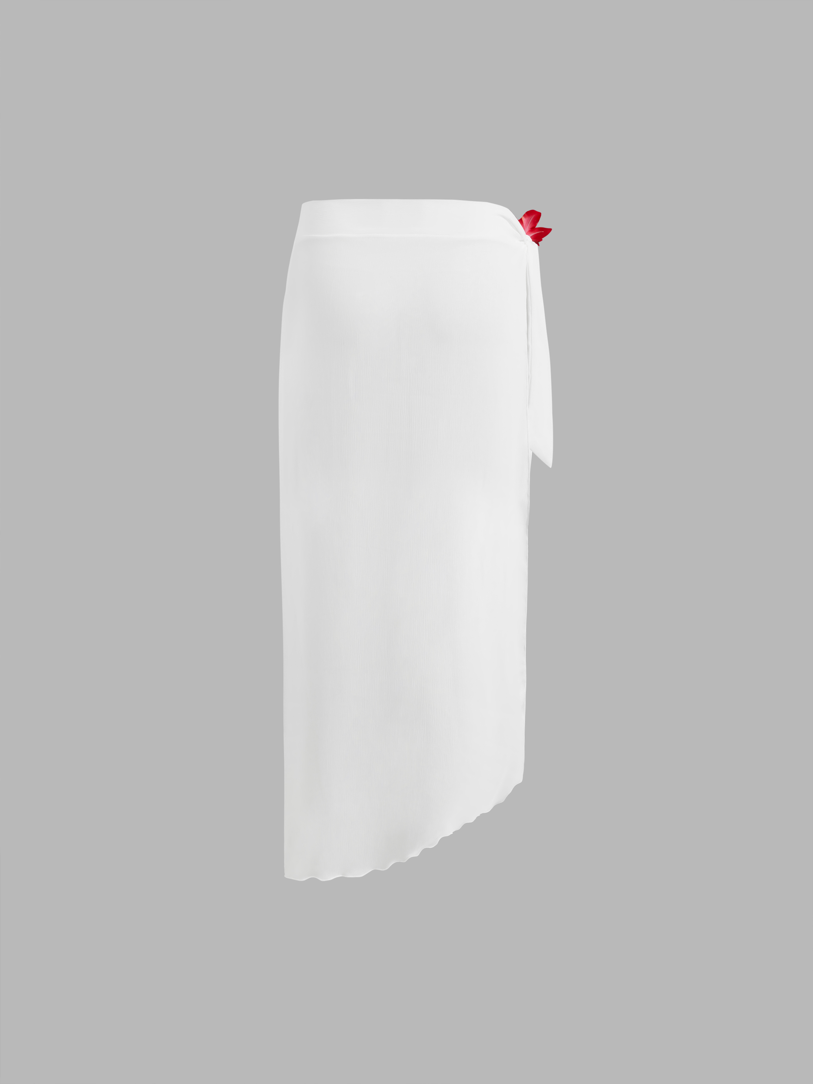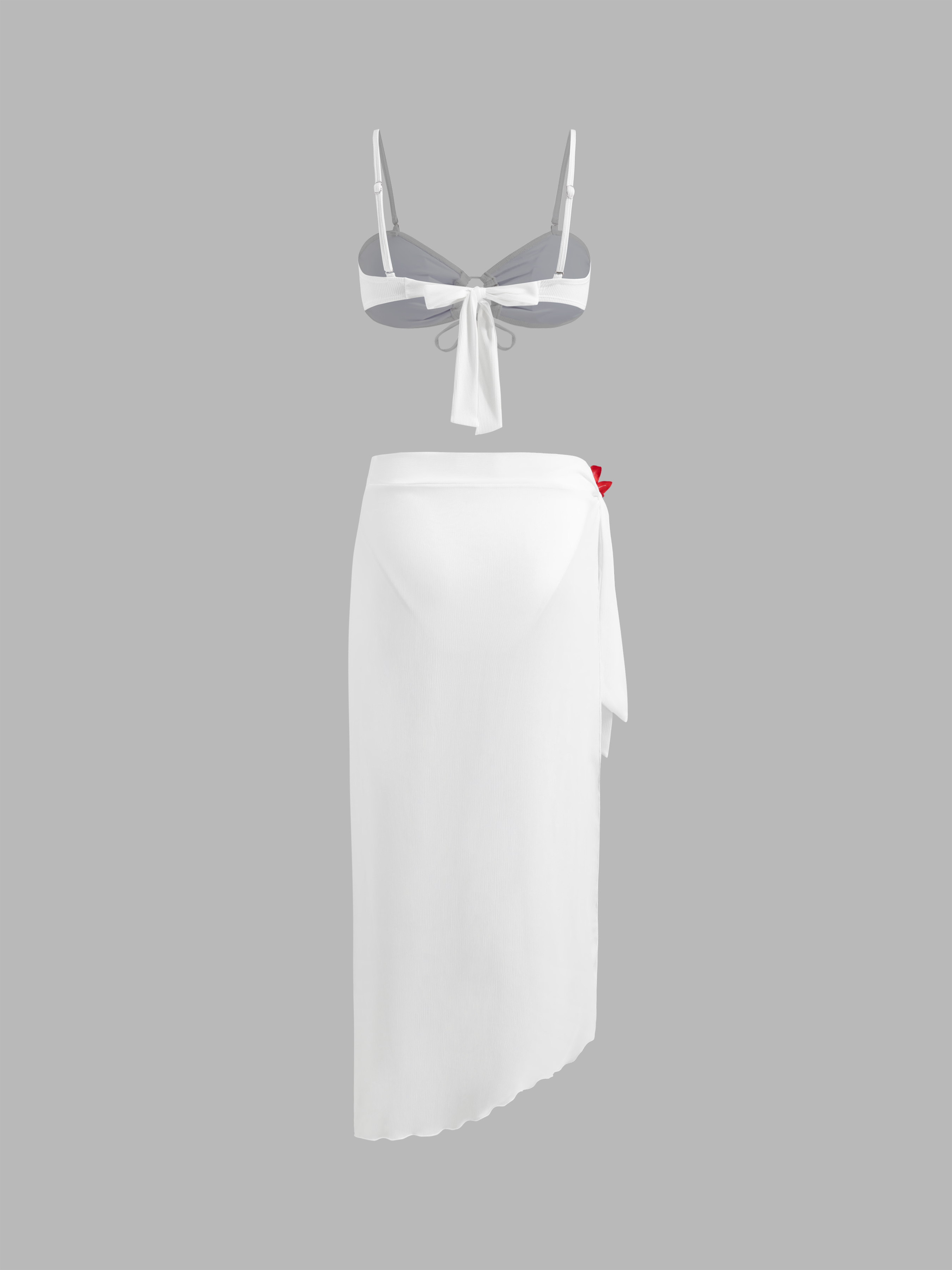 V-neck Cut Out Knotted Bandeau Cheeky Bikini Set With Flower Sarong