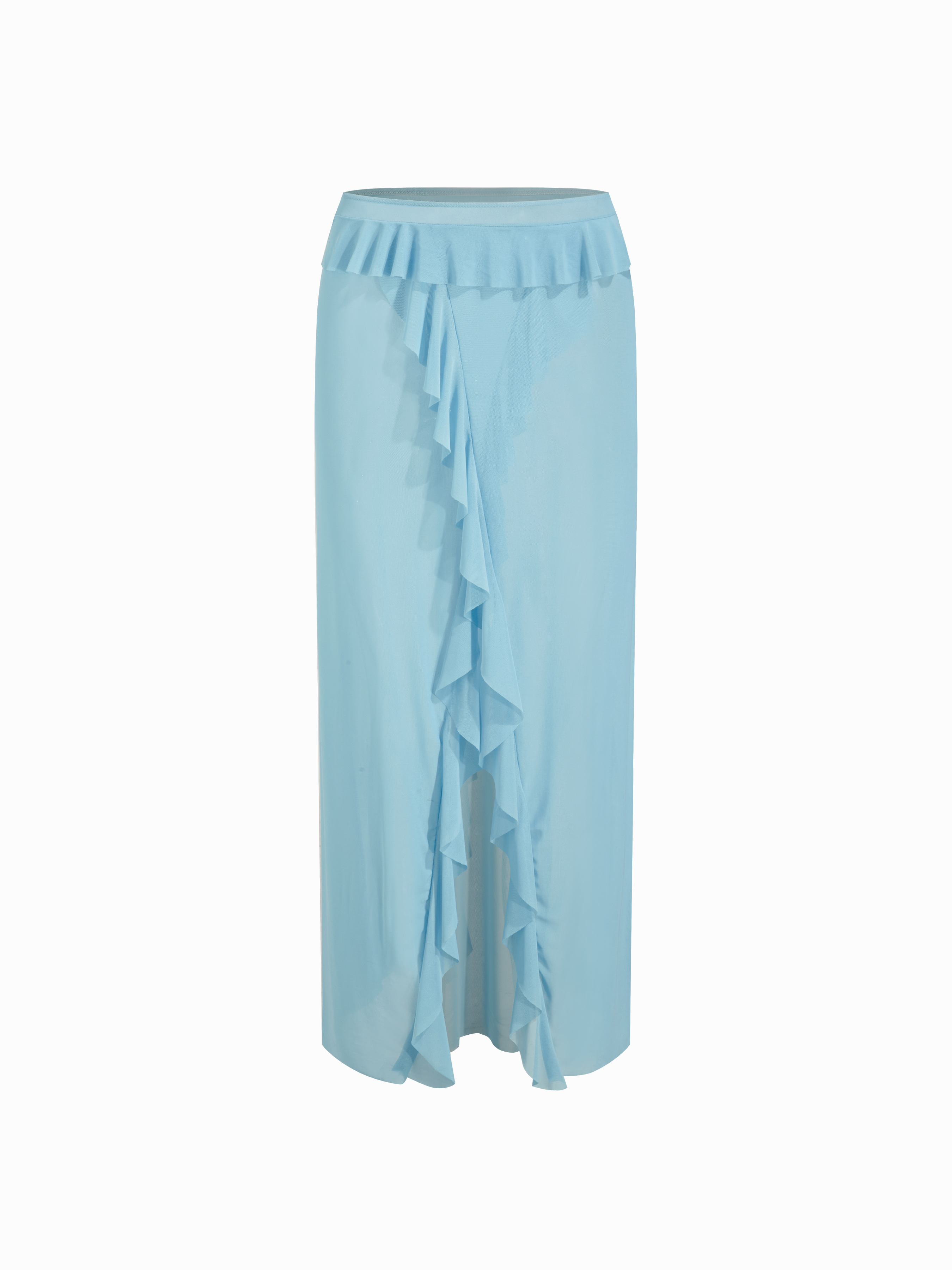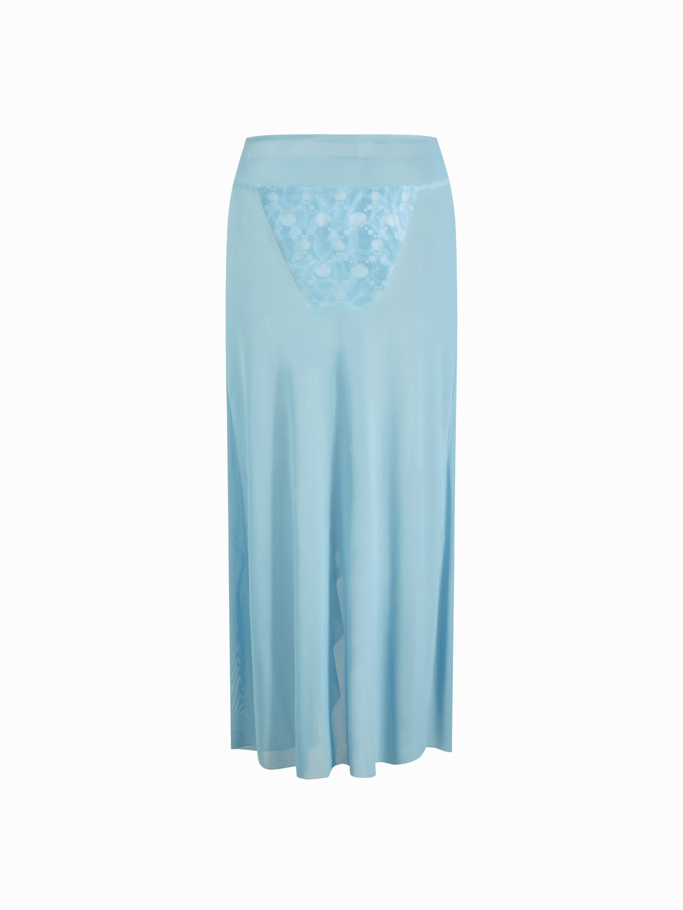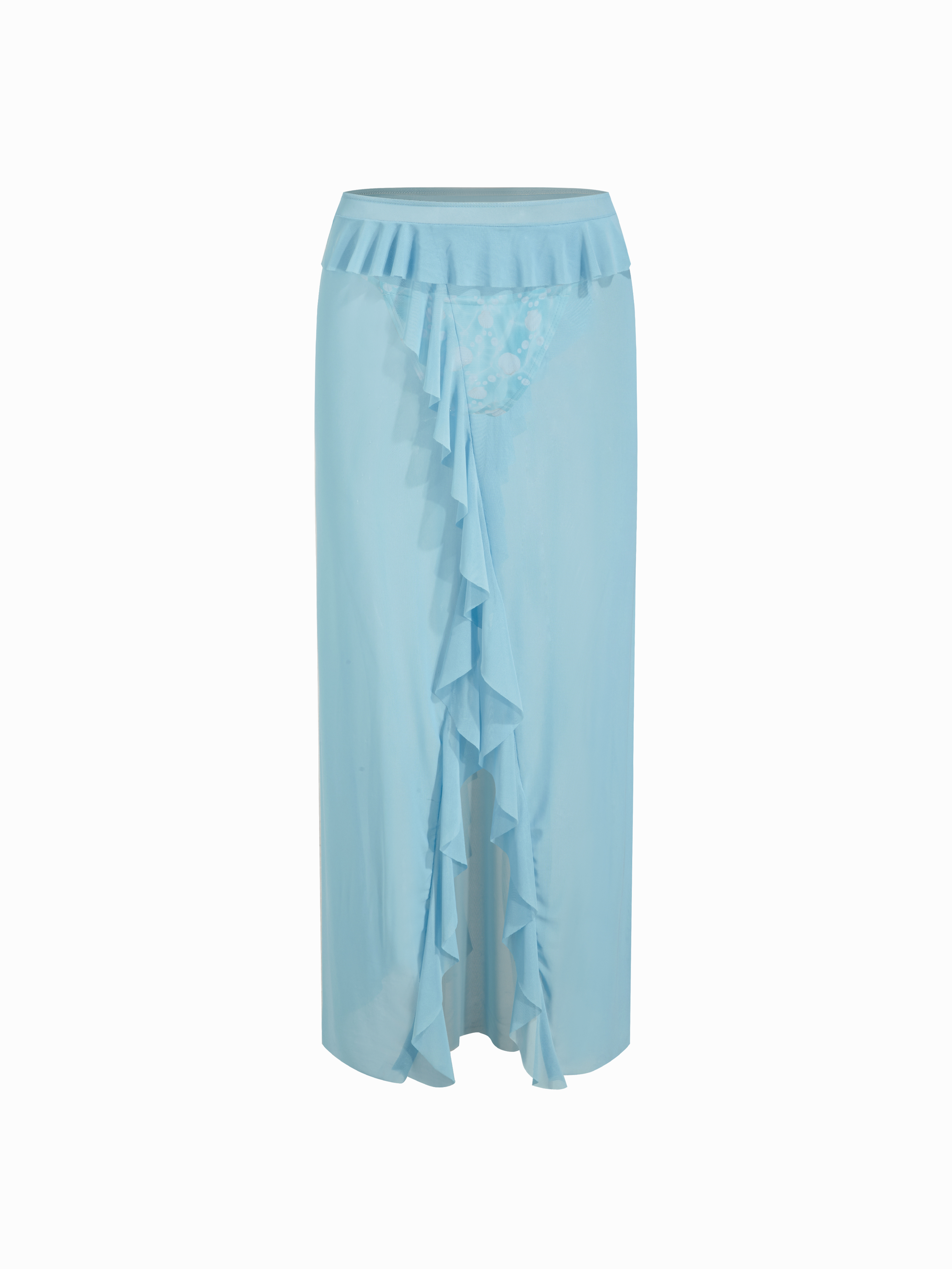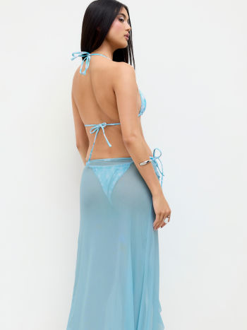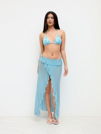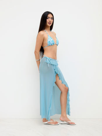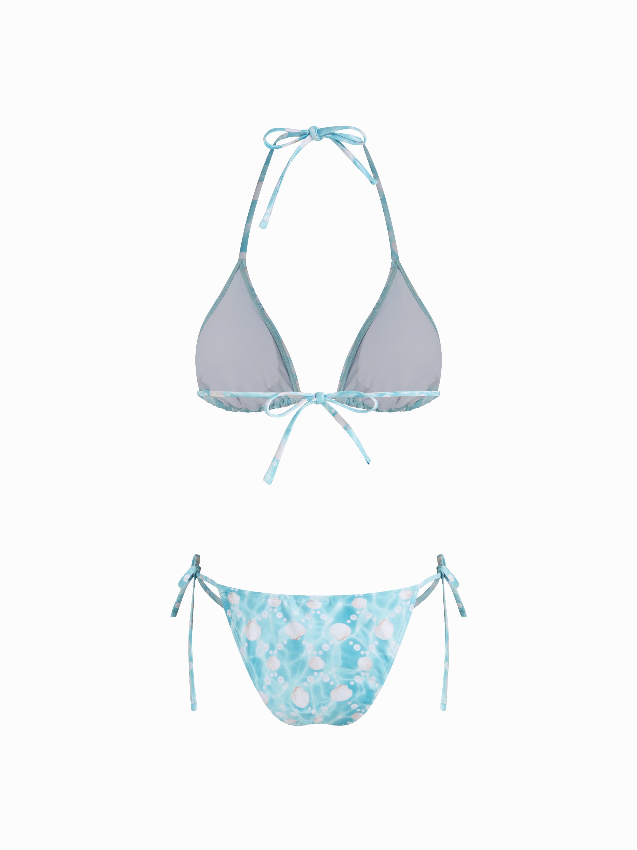 V-neck Halter Shell Graphic Tie Side Bikini Set With Beach Skirt