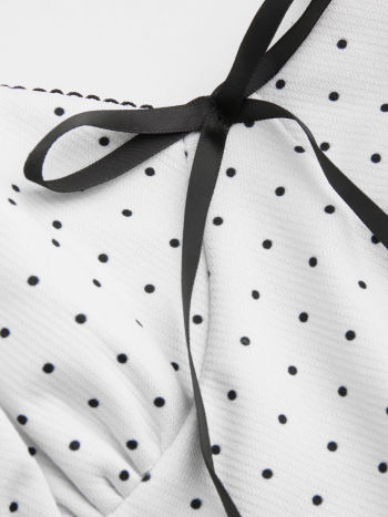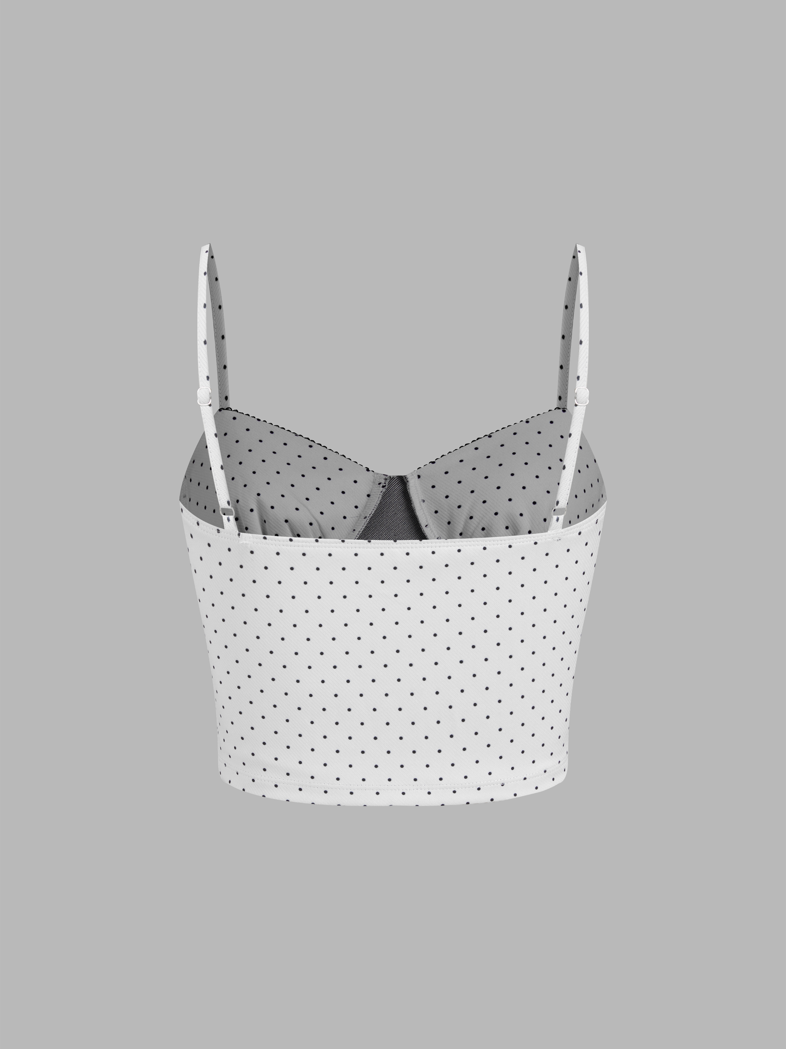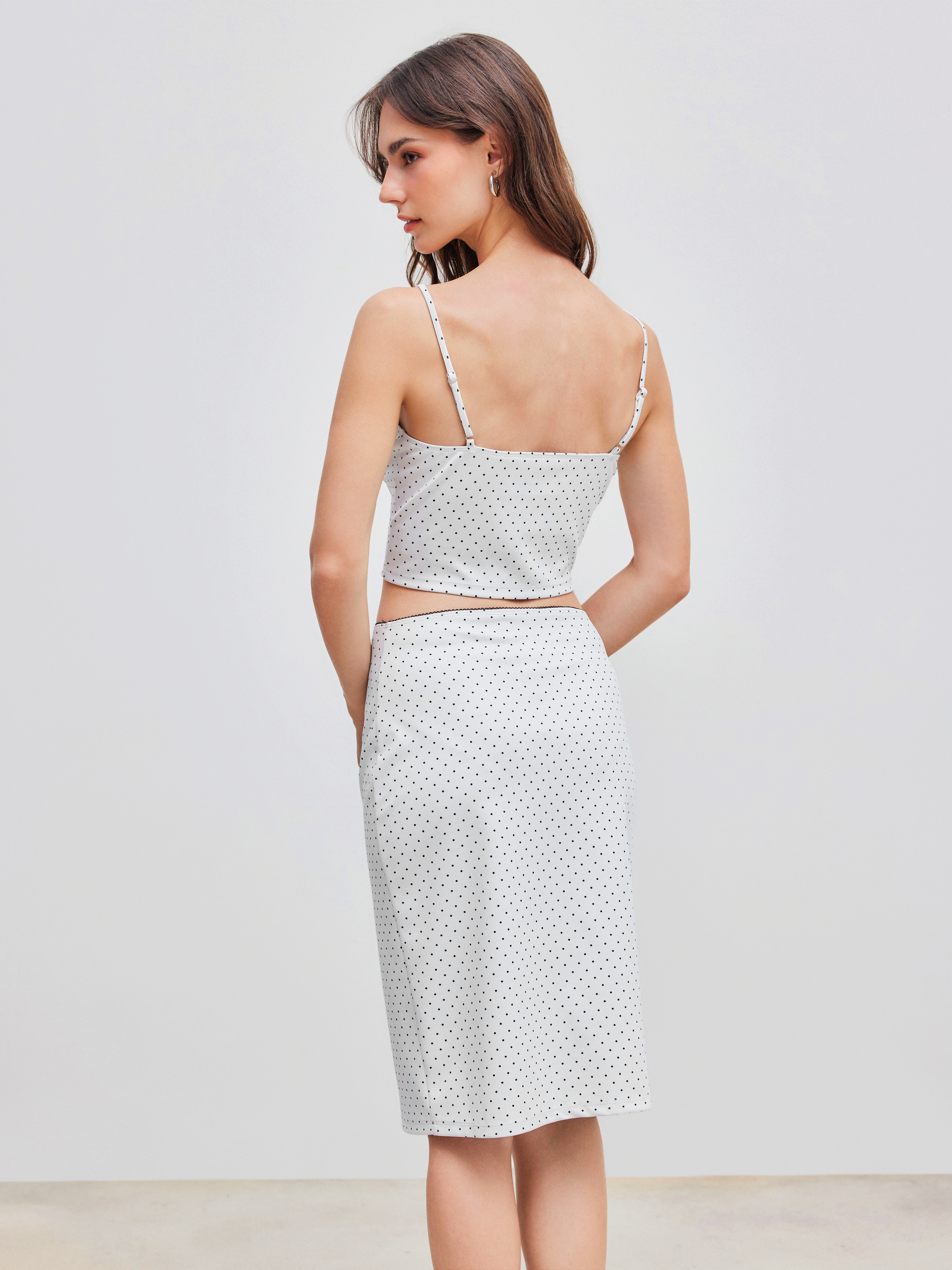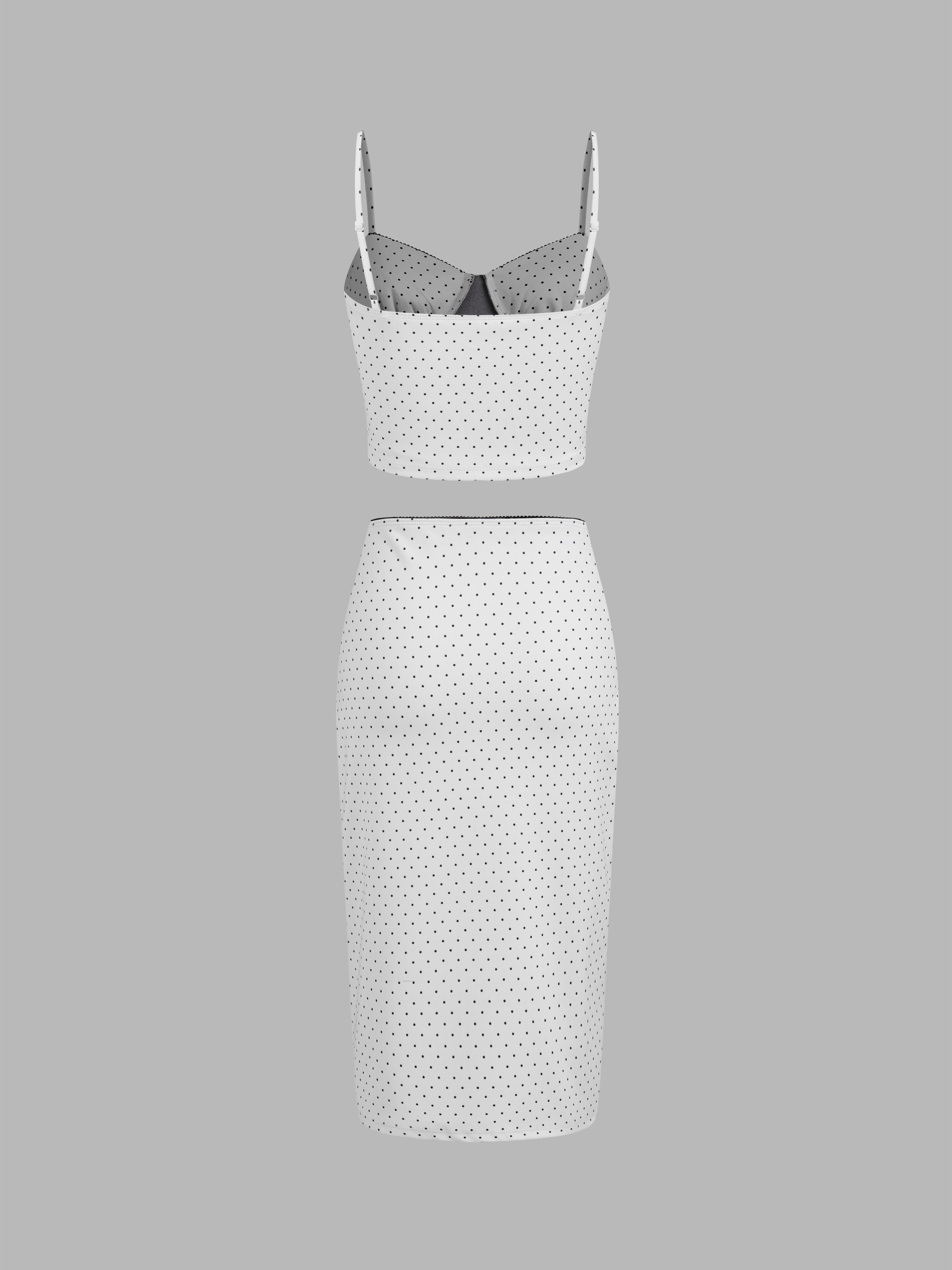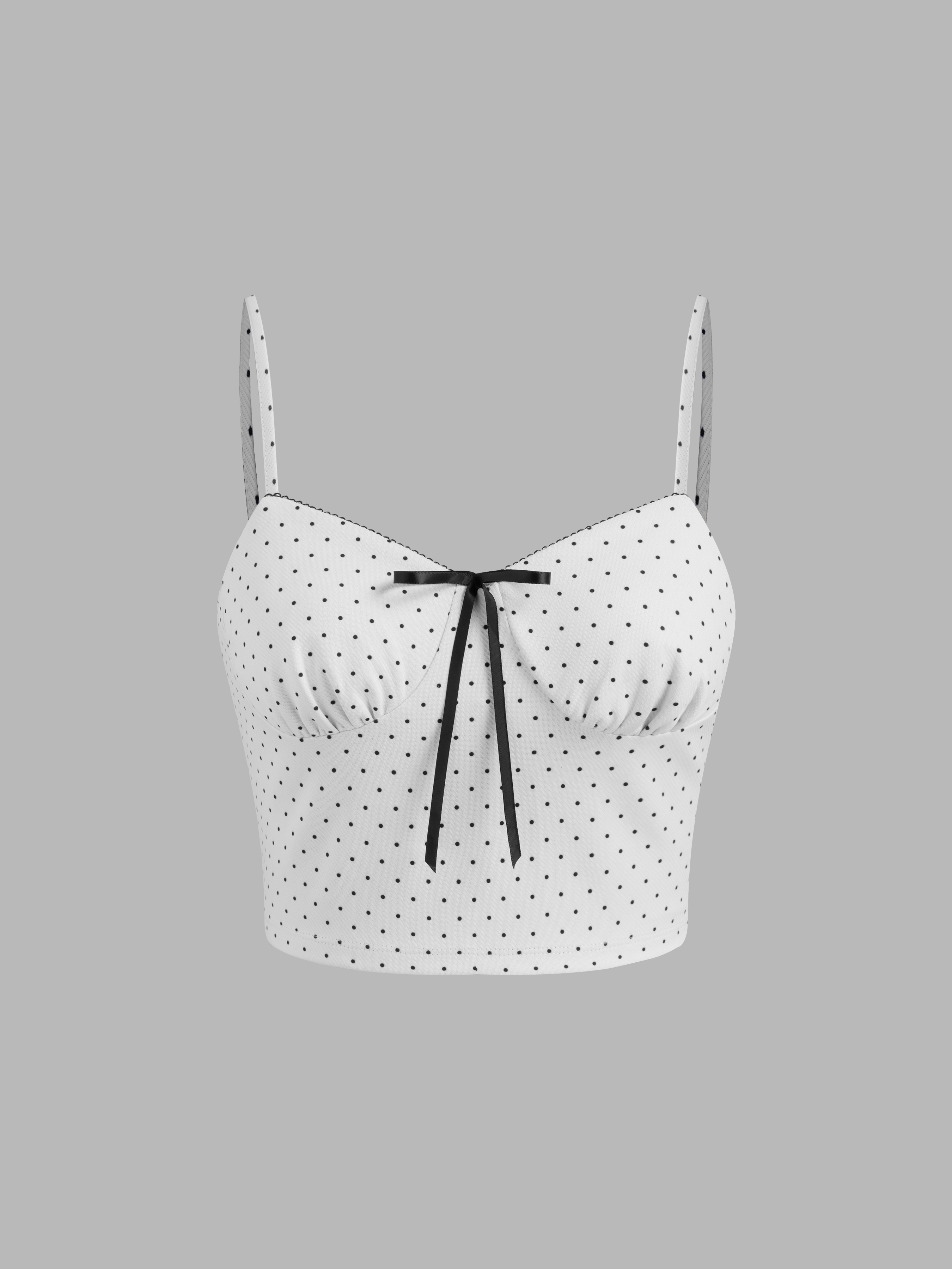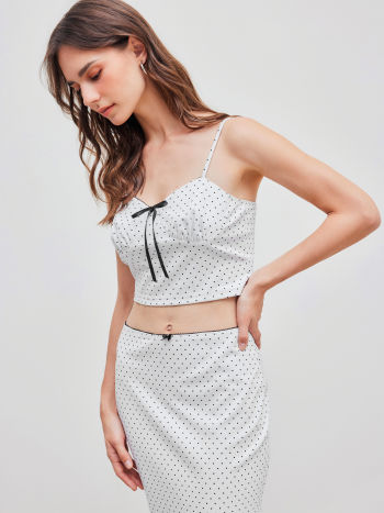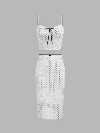 V-neck Polka Dot Crop Cami Top & Mid Rise Bowknot Midi Skirt